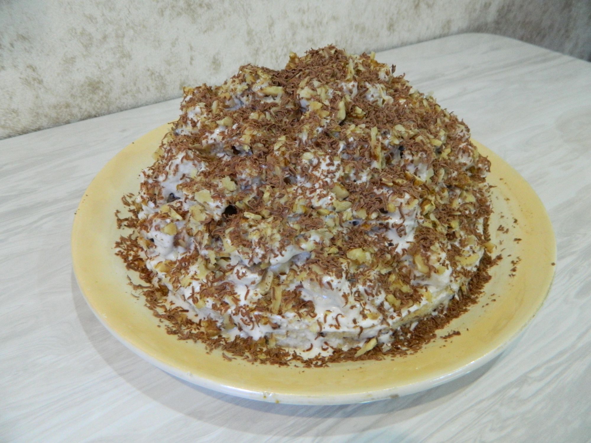 23 февраля 2018 Всем приветик! У всех выходной, а значит есть минутка для нашего любимого дела ( только я сегодня весь день на кухне провела и ни одного крестика ни сделала.) Ну ничего ещё нагоним пропуск! За не полную недельку, а точнее за три вечера удалось продвинуть лишь своих бабочек от Ланарт. Мечтала закончить лист, но не осилила. Было. Стало, фото при разном освящении. На этом вышивальных новостей больше нет, но есть кулинарные. Чаще всего мы торты покупаем, но сегодня для своих мужчин сделала исключение, испекла сама. Крем знакомый( точно такой же идёт для черепашки) , но вкус торта всё ровно интересный. Сам по себе очень нежный, легкий, не сильно сладкий, домашние были в восторге. Даже моя свекровь хоть у нее и сахарный диабет, но маленький кусочек всё же попробовала. Вот весь состав. Готовим тесто, чернослив нарезаем, обсыпаем мукой. Выливаем ровным слоем на противень, предварительно застелив бумагой для выпечки. Бумагу смазать маслом. Выпекать при температуре 200 градусов примерно 15 минут, готовность проверить деревянной шпажкой. Далее остужаем, по середине вырезаем круг диаметром примерно 20-22 см, кладем на тарелку( делаем небольшие надрезы ножом, чтоб крем лучше пропитал корж), хорошо смазываем кремом. Остатки теста режим на квадратные кусочки и перемешиваем с кремом. Выкладываем на смазанный корж в виде горки, при этом каждый слой обсыпаем грецкими орехами. Украшаем тертым шоколадом. Готовится очень быстро, без особых трудностей, единственное что я бы крема рекомендовала сделать побольше( у меня ушло две пачки по 500гр). Ещё сегодня запекала куриную грудку. Рецепт показался интересным. Боялась что суховато получится, но нет всё супер. Грудку надрезаем, солим, начиняем болгарским перцем. Сверху смазываем смесью: сметана, майонез, кетчуп, соль, перец. Запекаем в духовке до готовности, в конце запекала на функции гриль. Что самое интересное, после жарки перца вы там можно сказать не найдете, он полностью тает и пропитывает мясо, остается лишь его лёгкий вкус. Попробуйте очень вкусно! Ну вот и всё на сегодня, ещё раз всех с праздником! Tatiana Vladimirovna, FEDORMaзиус, linden и 23 других сказали спасибо Поделиться сообщением Ссылка на сообщение