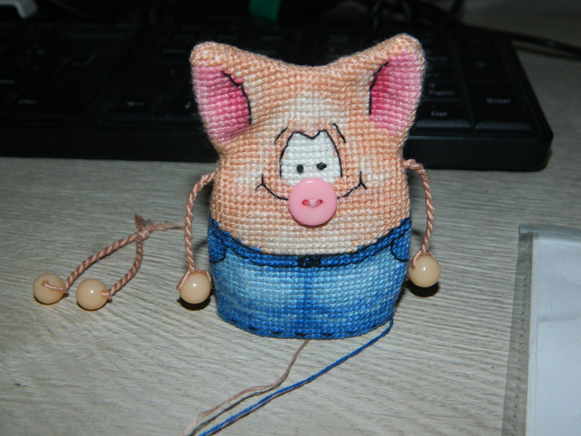 6 февраля 2019 Всем здрасьте! Пришла пора отчитаться! Принесла продолжение маячка и не только. До финиша сталось совсем чуток, но я тяну удовольствие! Парим в облаках! И так было. Стало. Открываем гаечку на порося малявочку! Гирлянда от Ирины Наниашвили! С чего всё начиналось: Будете наверно смеяться, но сперва у меня возникли проблемы оплаты, да да вот так банально. Схемка ко мне пришла неожиданно, мне её подарила наша форумчанка, не буду озвучивать кто, но я ей очень благодарна за это, читая эти строки она поймет, что речь о ней. Далее буду наверно писать страсти и последует много букв, но хочется поделиться, пока всё не забылось. И так в срочном порядке прикупила все ниточки, пуговки, бусинки приступила к работе. Отшив почти половину штанишек обнаружила смещение в один крестик. Проще было начать заново, но нет мы же легких путей то не ищем, да когда ещё такое удовольствие будет 18 канву то попороть. Далее умудрилась напортачить в ушках задней половины! Наконец вышив обе стороны вздохнула как бы, но с опаской, впереди то сборка! Забегу наперед: девочки кто шил всех троих поросят вы для меня герои, да, да именно так!!!!! С закруткой хвоста у меня тоже ничего не вышло, представленных фото в схеме мне не хватило, я так и не поняла как это правильно делать. Хотела его бесхвостым оставить, но под конец всё же чего там изобразила. С руками и ногами проблем не было, это мы такое могем, ну думаю хоть тут не оплошала, но опять есть НО, о нём чуть позже! Сборка для меня была адом, толщина, мелкота, всё вкривь да вкось, кругом не совпадения рядков, порола и еще раз порола. Уже сто раз хотела бросить и простится, всё думала лучше 15 шляпников вышить и собрать, чем одного порося, но упорство победило! А теперь то самое но! Увлекшись сшиванием, я благополучно забыла про подвесную веревочку( а она ведь перед глазами лежала) , ну что вновь порка и исправления! А сколько нецензурной брани я про себя сказала, ну думаю балда и есть балда! Короче говоря косяков море, пальцы до сих пор болят, но прошло пол дня и все эти ощущения куда то по тихоньку улетучиваются. Всем домашним мой поросёнок понравился, висит пока возле компьютера, вот смотришь на него и хочется улыбнуться. Обращаясь к нему поймала себя на мысли: А ты все таки милах!!!! Что касается остальных его друзей, буду ли я их шить спросите вы? Скорее да, чем нет! Вот такой неожиданный финал! И так процесс!Выпрыгивающая мордочка мартышки! Те самые страсти сборки, решила запечатлить для истории. То самое НО! Без подвесной веревочки! Игрушки Ирины Наниашвили мне нравятся, но порой из-за трудоёмкой сборки они меня отпугивают. Но как говорят глаза боятся, а руки делают. Влюбилась я в эту троицу поэтому и взялась, чему очень рада! Не так давно все баранов её ваяли, у меня тоже он есть, очень очень его люблю, каждый год на ёлочке висит. В очередной раз вешая на елочку думаю: неужели это моих рук дело, он ведь тоже не простой со своей изюминкой. А теперь фото для вдохновения и аппетита! Увидела этих вязаных красавцев на прилавке рукодельного магазина и час ими любовалась! Вот умеют же люди! Картошечка с секретом! Мне дала рецепт одна наша форумчанка, очень очень вкусно! Попробуйте и по др рецепту больше не захотите делать. Чистим картофель, режем на 4 части, но если крупный. Далее кидаем в кипящую подсоленную воду, как закипит варим 5-7 минут. После сл