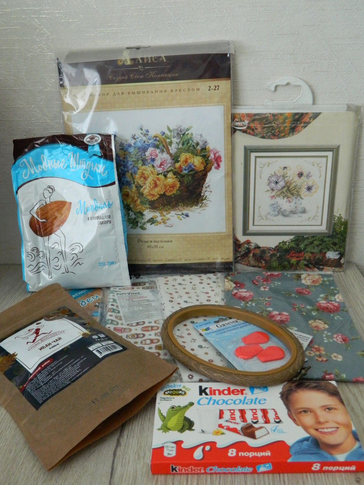 5 июля 2019 О хо хо! Давно я тут не была! Всем привет! Ну что сказать, шью практически не шью, лето у меня мёртвый сезон. Удалось закончить сложную часть у моего Пражского моста. Было. Стало. Теперь осталась скучнота два листа чистого неба. Мои цветочки. А это фиалка сорта Егорка молодец. В прошлом году мне его листики Наташа 2013 присылала, вот удалось вырастить, часть бутонов ещё не раскрыты. А ещё у меня сегодня радостная новость приключилась. Мне пришла посылочка от Галочки Galagenka. А в ней столько красоты!!! Вот смотрите сами! Красивые цветочные наборчики,прям летние летние! Оригинального наборчика от ланарт у меня никогда не было, шила этого производителя, но только подбором, а тут что называется с самой настоящей живой палитрой. Очень очень нежные оттенки, обязательно вышью. Тканюшечки прелестные, сразу ручки зачесались, Захотелось всё начать и сразу. Конфетки сразу открыли попробовали, очень вкусные! А с чаем у меня конфуз вышел, вы только не смейтесь. Я тут в последнее время лечу по орхидеям, сайты всякие просматриваю со всякой корой для них, да грунты разные изучаю. День и ночь всякие видео смотрела про их пересадку и уход, ну короче заморочилась что называется. Так вот открываю значит посылку, а там лежит вот такой пакетик. Первая мысль: О думаю, Галочка мне грунт специальный для орхидей прислала, думаю орхиата что ли или кора какая специальная? Переворачиваю пачку, а это чай! Ой домашние надо мной смеялись! Ну мама ты говорит со своими орхидеями уже с ума сошла! Ну думаю точно, это уже диагноз. Чаёк очень полезный обязательно попробуем! Галочка дорогая, спасибо тебе огромное за доставленную нам радость, за такие щедрые дары, очень всё понравилось! Ну и на последок примите угощение! махно, Графиня, Фро-J и 19 других сказали спасибо Поделиться сообщением Ссылка на сообщение