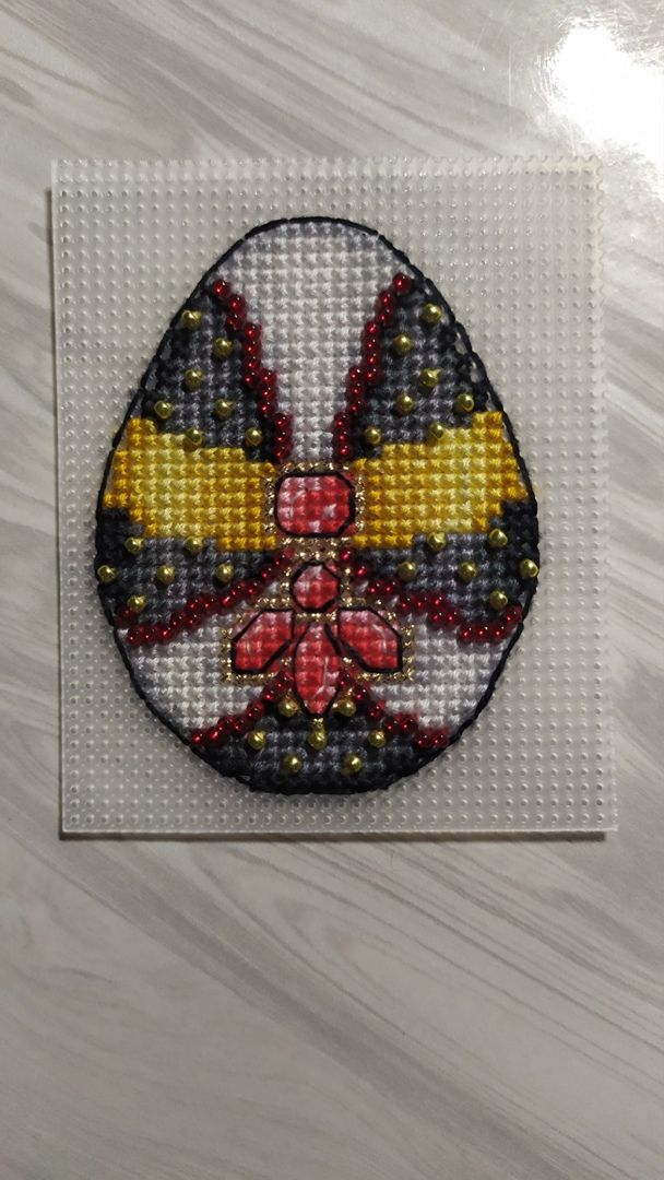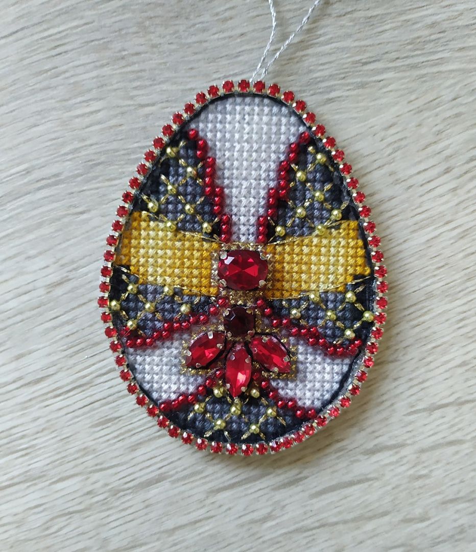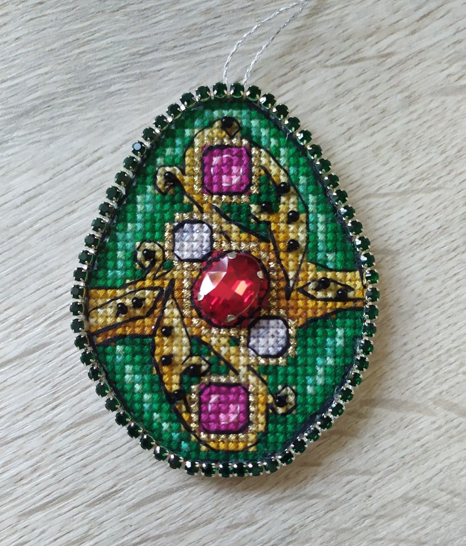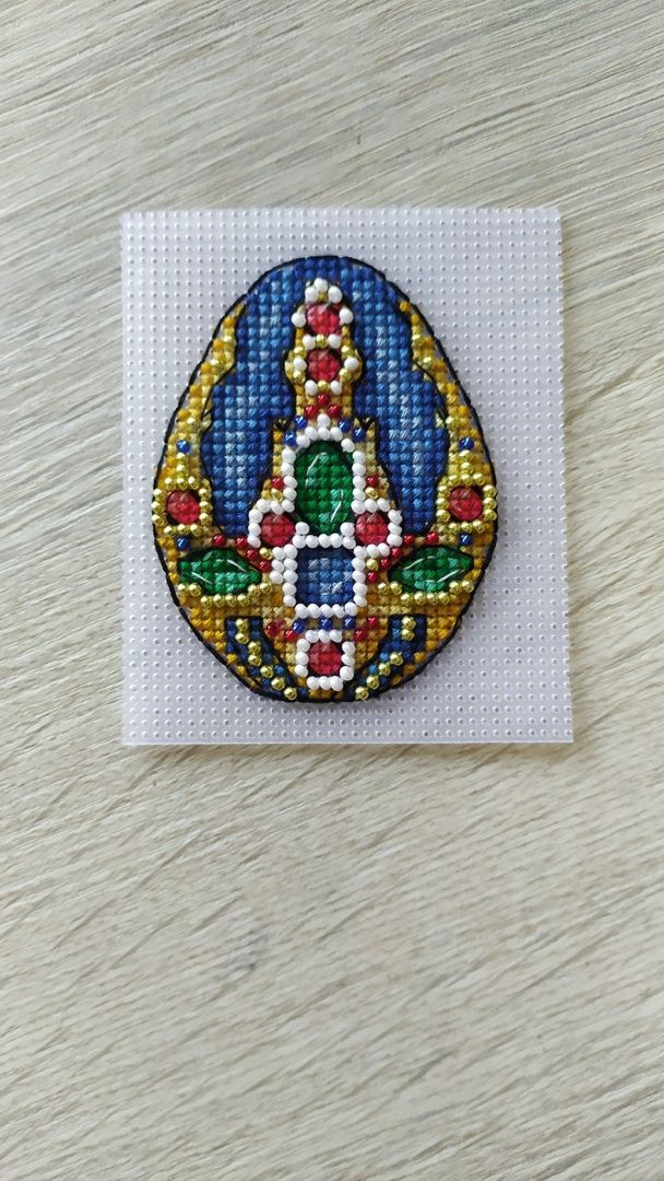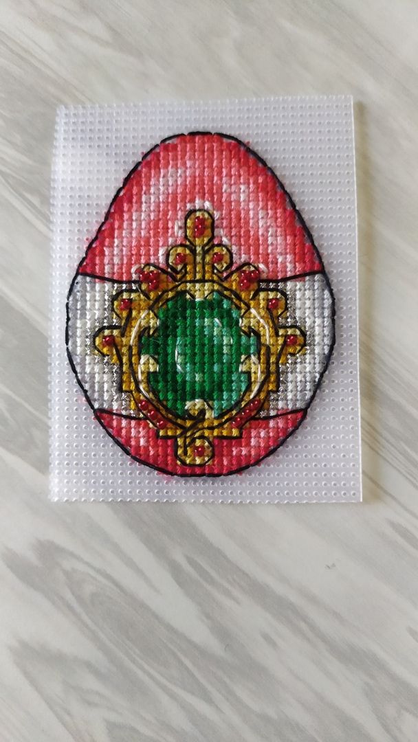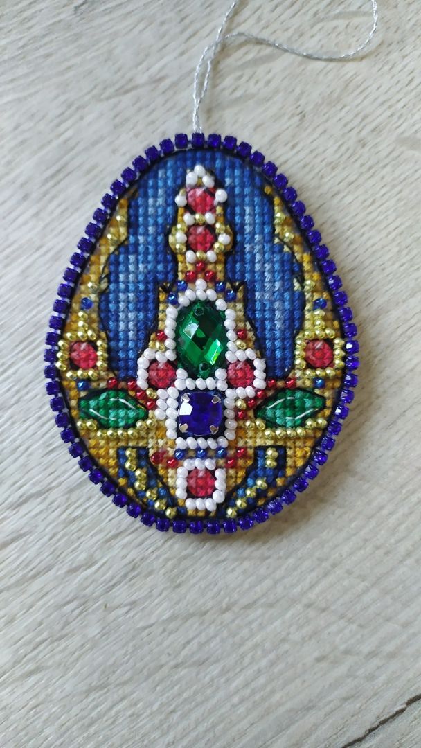 30 марта 2021 Всем приветик! Мы с сыном до сих пор на больничном. 23 Числа сняли гипс, но на ногу полноценно наступать ещё не мог, была опухоль, больничный продлили. Завтра нам на приём, нога ещё болит, но уже получше, наверно выпишут. Как правило после таких травм долго восстанавливаешься, по себе знаю. Ну не будем о болячках, покажу что смогла навышивать за март месяц. Очень хорошо удалось продвинуть пиончик. Было. Стало. Процесс самый настоящий весенний, буйство радужных красок, даже бэк был в радость. Бэкстич выполняется в одну и в две нити. Темный оттенок 938 отлично ложился, а вот с белым пришлось повозиться, как то не совсем ровно ложился и от этого обведенный участок смотрелся как то небрежно и неопрятно. Хотела его завершить, осталась самая малость, но не осилила. Благополучным образом вернулся с выставки Формула рукоделия мой мишка. Приятным бонусом от автора Насти Кравцовой мне был подарен сертификат на покупку её схем, чему я была очень рада. Многие схемы мне нравятся и поэтому не решила ещё что прикупить. Далее была готова новая игрушка от дименшенс. Мой кардинальчик. Было. Стало Сюжет сам по себе очень красивый, вышился на одном дыхании. Фр.уз как нельзя лучше получились, самой даже понравились, но вот выкладная нить кординг дал мне прикурить, переделывала три раза и всё ровно им осталась недовольна. Следующий процесс который мне хотелось в этом году вышить- это Авторская схема ( бесплатная) Аллы Ероховой " Держи яичко" Давно мне эта девчушка нравилась, схемка лежала и ждала своего часа. Вот моя прелестница! Вышивала на 14 аиде, ниточки дмс, размер в крестиках 48x89, 18 цветов, 5 блэндов, виды стежков: крест и бэкстич. Есть идея как её оформить, надеюсь к пасхе успею. Ну а теперь мои фавориты Марта!!! Пасхальные яички "Императорские сокровища" по схемам Натальи Лужанской . Признаюсь честно, что не сразу они мне приглянулись, даже после первых отшивов я ещё сомневалась. Но после того как Света Letka их все оформила я поняла, что тоже их хочу видеть на своём пасхальном столе. Яички очень кропотливые, используется много цветов (ниточки дмс), два вида металлика, несколько видов бисера, много бэка, но поверьте они этого стоят. Первое моё яичко: Тут используется даже бленд. По ключу бисер шёл красного оттенка, но я намеренно изменила цвет бисера на ярко гранатовый. Второе яичко: Здесь всё по ключу. Третье яичко мое самое любимое! Четвертое не менее красивое! Пятое яичко! Шестое яичко! Здесь прозрачный бисер заменила на красный. И последнее! Покажу все отшитые вместе ещё до окончательного оформления! Мне очень понравилась идея Светы Letki обрамлять их в стразовую ленту, так что идея была позаимствована у нее. Но я её крепила по другому. Ход работы: обрезала каждое яичко по контуру бэка, оставляя при этом примерно три миллиметра. Далее с помощью зубочистки на саму ленту очень дозированно наносила клей Титан-100 и прижимала к пластику, держится намертво и при этом не плавит саму основу. Лента очень податливая и ложится отлично. На каждое яичко ушло 23см ленты. При этом она суперски скрывает все погрешности неровного среза заготовки- идея такого оформления пластика просто Бомба! На обратную сторону впервые попробовала фаомиран, так же был приклеен на этот клей. Возможно так же клеить ленту ребром на грань пластика и фоамирана, как сделала Света, так образуется некий з