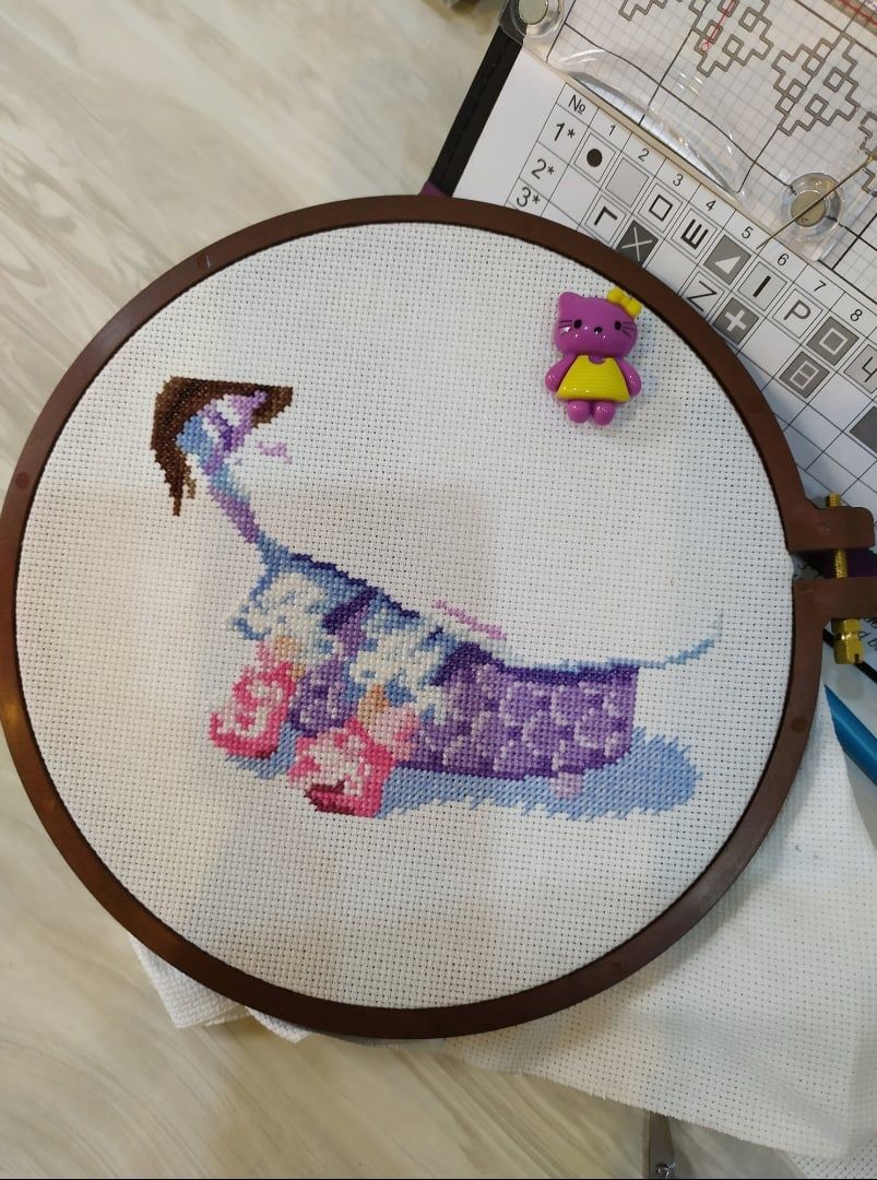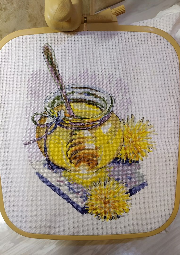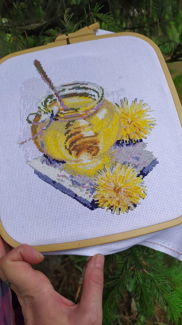 4 мая 2021 Всем привет. На дворе весна, все зимние процессы пока отложила и решила стартануть с новыми! Но прежде всего покажу продвижения в Весеннем мёде. Процесс очень приятен, манит каждым крестиком и даже бэк в радость. Вот мои пушистики! Было. Стало. Ловлю себя на мысли, что совершенно не хочу его быстро отшивать, хочется продлить удовольствие этих солнечных оттенков. Бэк местами идёт в два сложения и сперва мне казалось, что смотрится как то грубоватенько, но после глаза привыкли и решила всё же оставить. К набору никаких претензий, всё супер, единственное что меня смущает это то, что в сюжете два цветочка. Просто я планирую его подарить маме и что то стала заморачиваться на этот счет. Девочки, мне хотелось бы ваше мнение послушать. Лично я когда вышивала цветочные букеты, как то не было привычки считать сколько там веток и цветов,( или кто то считает?), а тут что то заморочилась. Просто эти два пушистика такие яркие, то и дело цепляют взглядом- может быть поэтому . В принципе здесь так скажем главное действующее лицо это баночка меда, а сами одуванчики это уже как бы украшательства интерьера. Я люблю птиц в вышивке, ну конечно не всех подряд, но без них я не могу. Вот только не так давно закончила кардинальчика и меня вновь тянет в птичью тему. Парадокс- из трех птичек этой серии эта мне нравилась меньше всего, но всё изменилось и теперь она у меня первая в планах на отшив! Солнечная облепиха от МП Студии. О наборе: канва рыхловатая, но менять не стала и в процессе даже этому обрадовалась, потому что иголочка ныряет как в равномерку. Ниточки ПНК кирова ведут себя отлично( не одного катышка и узелка- тьфу, тьфу, тьфу). И ещё такой момент для себя отметила: боялась, что из- за рыхлости канвы волокна в уголках при протыкании иголки будут расслаиваться, нет всё замечательно, опасения были зря. Нарезка конечно коротковатая, но организовала процесс так, что даже этого не замечаю. Схемы конечно у них 50 оттенков серого и значки некоторые перекрыты бэком. Сам бэк тоже не всегда сразу понятен, каким цветом надо шить, приходится заглядывать на обложку, но меня пока всё устраивает. да и ещё большой плюс - в наборе есть игла. 23 чистых оттенка и 7 блэндов. Стежки: крест, полукрест, бэкстич в 1 и в 2 нити. Еще два старта! Милые интерьерные куколки милашки от Овен. Кукла Ариша! Вышито всего ничего, но это результат одного вечера, уж очень не терпелось начать. Канва 16 аида, ниточки ПНК Кирова- 24 цвета, из них три цвета это полукрест и 5 блэндов. Сам бэк будет выполняться 9 цветами. Кукла Даша! Даше повезло чуть меньше, тут совсем маленько вышито, но главное начало положено. Нужно будет шить их параллельно, так как будут подарены двум девочкам сестренкам двойняшкам. Рост Даши 20X 24см, канва 16 аида, ниточки ПНК Кирова -28 цв, из них 3 цвета это полукрест и 8 блэндов. Бэк будет отшиваться 12 оттенками ниток. Сперва когда раскрыла наборчики немного разочаровалась, цвета у куколок практически одни и те же и побоялась, что заскучаю. Но после всё же отвела эту мысль, так как у меня всегда есть, чем можно разбавить скуку. Да и ещё поговорив с мамой девочек выяснила, что они в детскую заказали новую мебель и эти куколки должны отлично вписаться в интерьер. Причем девочки чем то даже похожи на них. Даша темненькая- как куколка с обложки. А Саша- по светлее и она обожает всякие сумочки, рюкзачки и коше