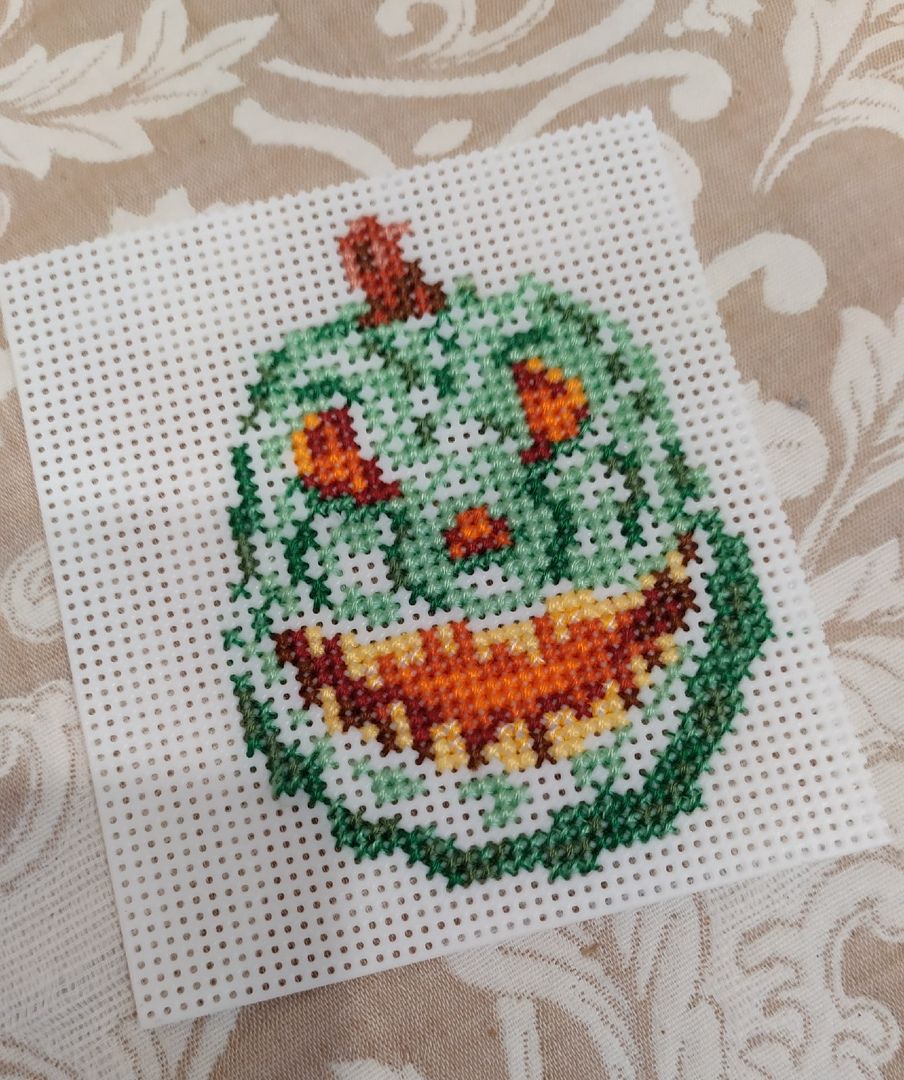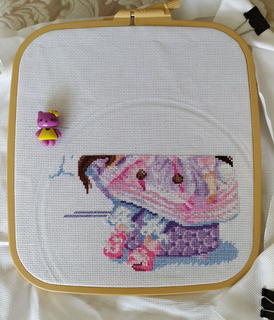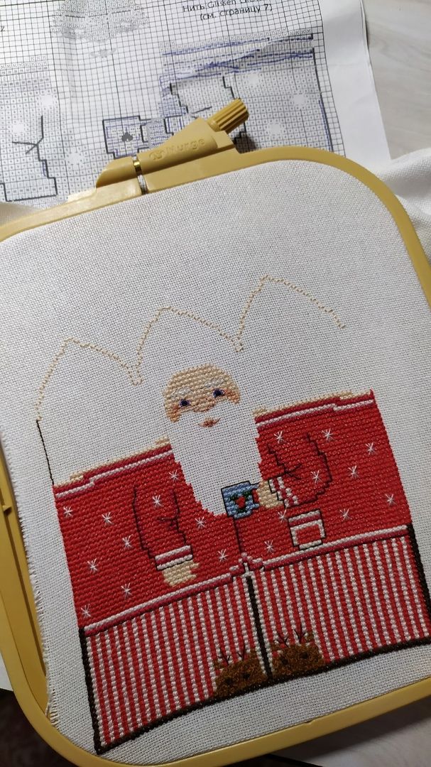 3 октября 2021 Всем приветик! И так тема осени продолжается! Новый маленький процесс по бесплатной авторской схеме Антонины Лебедевой- Дерзкая тыква. Как увидела её сразу решила вышить. Такая прикольная мордашка, так смачно жующая чесночок меня подкупила. Размер работы в крестиках: 46x47, размер в см ( на 14 каунте) : 10x10 см Ниточки: дмс 15 чистых цветов и один блэнд. Стежки: крестик и бэкстич в 1 и в 2 сложения. В осенний период будет служить магнитом. И ещё один новый процесс, но уже новогодний! Санта клаус по авторской схеме Елены( живущая на радуге). Игрушка вышита на равномерке ниточками дмс. Нужных ниточек для бороды и волос у меня не оказалось, пришлось использовать пряжу, вроде смотрится не плохо. Сборка конечно далеко не из простых, но я справилась, чему очень рада. Особенно трудным для меня оказалось это вышить контурный шов для формирования и сшивая головы. Я конечно как путная сперва раз 5 маялась и пыталась проложить его белой ниткой, но после всё же до меня дошло, что я скорее ослепну, чем ровно его вышью, да и под колпаком видно то ничего не будет. Сделала нитью телесного цвета, да и то не так ровно и симетрично как нужно было по схеме. Слава богу на сборке головы это никак не отразилось, ничего не перекосило и не перетянулось, но удовольствие это ещё то. Сразу скажу, что сборку делала не по инструкции, а по своему, на мой взгляд у меня она намного проще, а результат тот же. Колпак сшила из тонкого флиса. Сперва он мне показало очень большим для такой малютки, но искать др ткань и перешивать всё же не стала. Сантик конечно милейшее создание! Мелкие детальки, такие как печенька в виде пряничного человечка, пуговки, очки, кружечка чая или может быть глинтвейна, мохнатые тапочки, полосатая пижамка, придают игрушке особого шарма, милоты, домашнего тепла и уюта. Подвесик делать умышленно не стала, будет стоять на полочке в композиции с др игрушками. Ну вот пожалуй и всё на сегодня! maui, svetlana62, Аленка-2 и 21 других сказали спасибо Поделиться сообщением Ссылка на сообщение