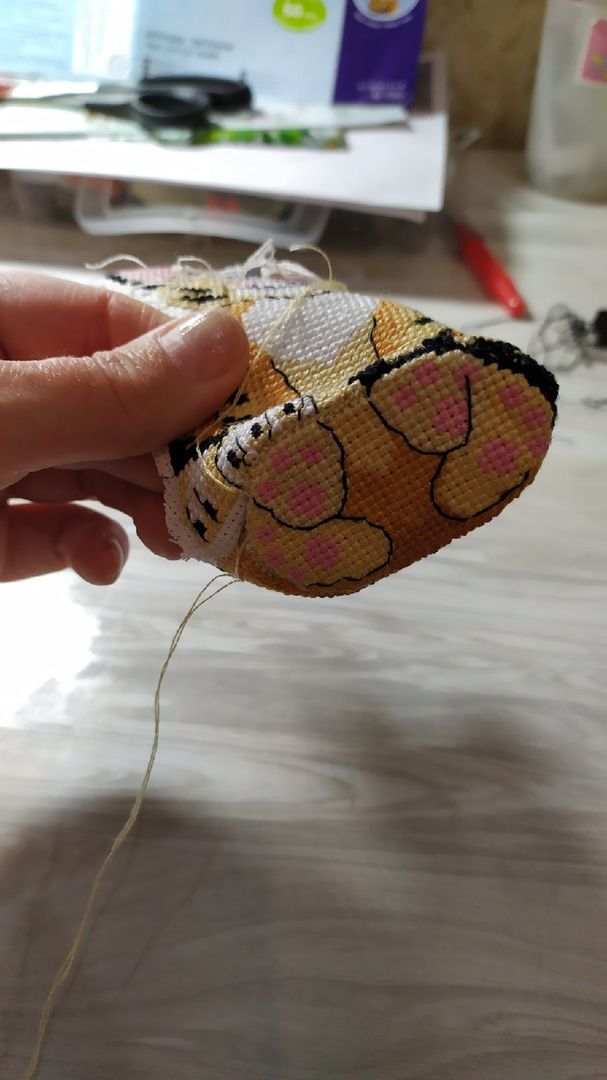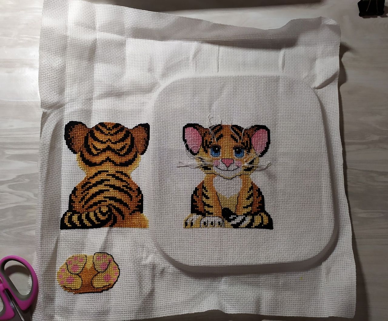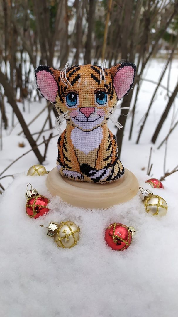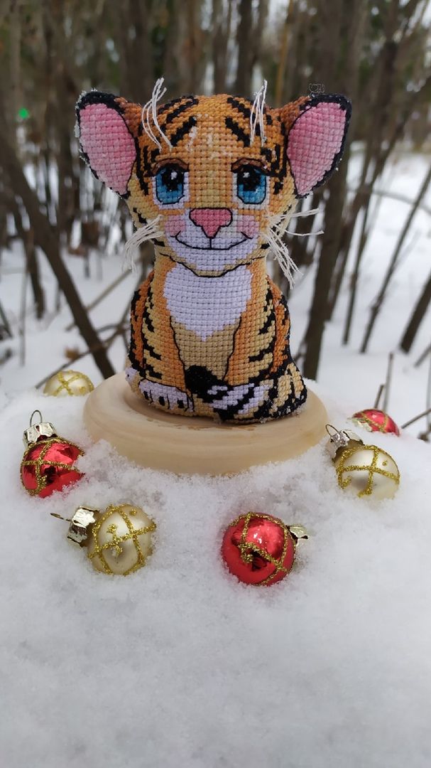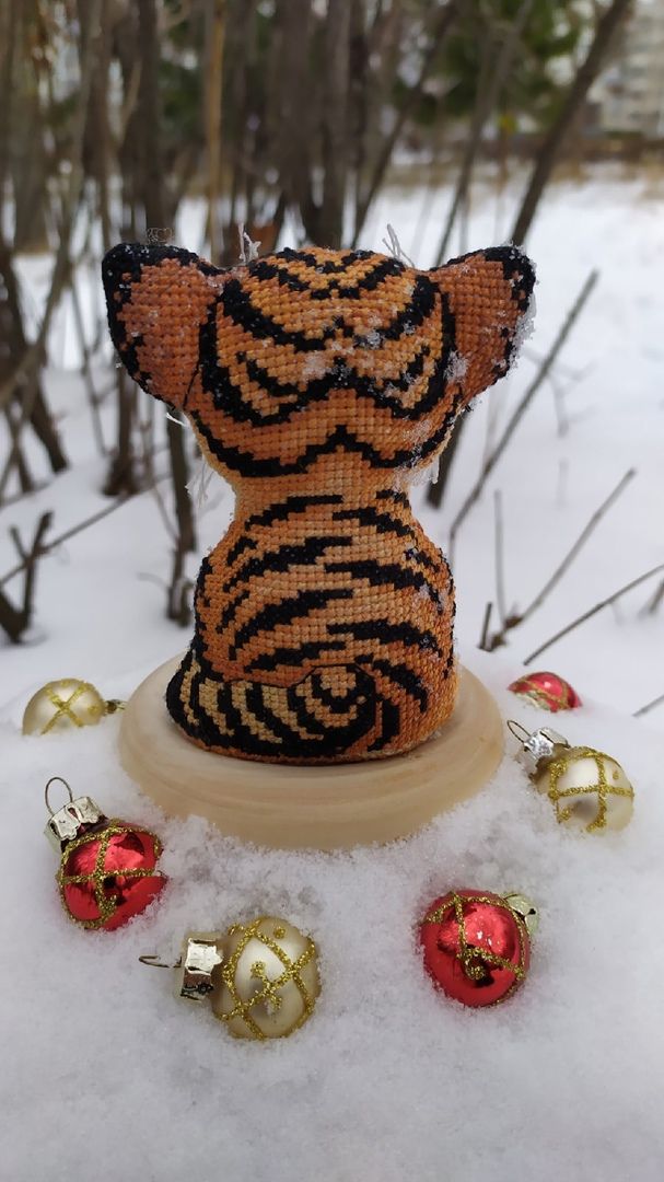 19 ноября 2021 Ну снова здравствуйте! Как и обещала принесла тигрика! Было. Стало. Сборка Вот он мой милах милах!!! Сегодня у нас поршивая погода, очень пасмурно, порывистый ветер, холодно и в добавок кругом грязный снег. На веточках ели фоткать было вообще не возможно, его ветром тут же сдувало, и на снегу тоже никак, как сказала уже кругом грязно. Выручил, всё тот же пенёк на котором не так давно фоткала тыковок, да и то игрушку то и дело сдувало, всего его обваляла, усы слиплись, ну как есть уж. Подведу итог: процес очень приятный, шьется очень быстро. Обработку дна делала по другому. Его надо было стягивать ниткой, а я загнула края канвы и приклеяла на основание картона и всё классно держится и не смещается. Принцип сборки всё тот же (как бискарню). Но тут это ещё то удовольствие, особенно в местах всех изгибов и стыковки дна. Ни на одном участке не расслабишься, стоит ошибиться в одной клеточке и нижние лапы не состыкуются с верхними. Но как говорится при желание всё можно победить, трудности быстро забываются, а по итогу классная игрушка остается. На счёт комплектующих: наполнителя хватило, кусочек канвы был хороших размеров, если все грамотно расположить, то на две игрушки точно бы хватило. Ниточки остались, точно конечно утверждать не буду, но ещё на один отшив может и хватит. Ну вот как то так! оленек, махно, Путешественница и 22 других сказали спасибо Поделиться сообщением Ссылка на сообщение