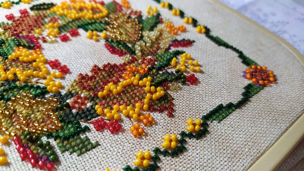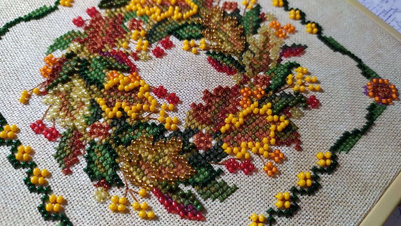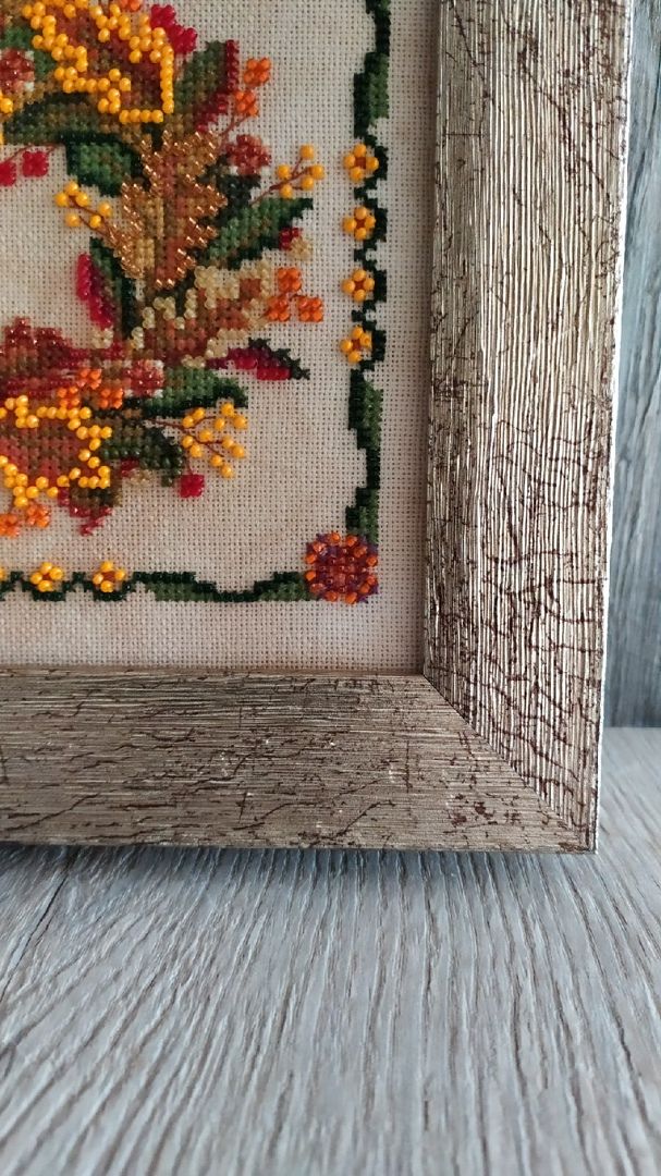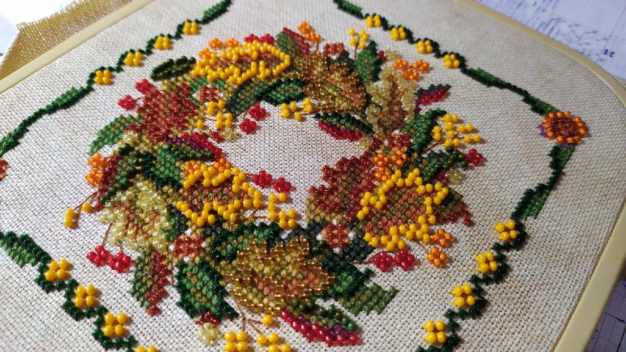 15 ноября 2021 Только что, вишенка аллая сказал(а): Девочки, всем добрый вечер! Который день собиралась написать отчёт, но всё то одно то другое, а показать вроде как есть что. Первым делом конечно главный персонаж будущего года! Было. Стало. Тигрик идёт на завершение, надеюсь в ближайшее время дошью и соберу его. Вчера немного отшила ушки и обратила внимание, что в одной пасме под номером 4 всего 3 ниточки. Я еще подумала что больно тонкая пасма, глянула и точно трех нитей не хватает. А в целом процесс приятный. Приехал из багетки мой приодетый Весенний мёд от Овен. Вот так я его решила нарядить. Оформление старалась подбирать не только под отшитый сюжет, но и под интерьер квартиры где будет висеть. Рамка очень интересная, из более темного оттенка уходит в мягкий лимонный. Есть бежевые вставки во внутренней и внешней стороне багета, но на фото плохо видно. Оформлением я осталась довольна: картина выглядит свежо и солнечно. Картина была вышита для мамочки и будет подарена ей на День матери. У меня случился новый старт и тут же финиш! Давно мне нравился Осенний венок от милл хилл и вот наконец то свершилось. Сам набор не покупала, так шить на перфорированной бумаге не хотела, ниточки по ключу все были, схемка тоже была припасена, ну а какой бисер пришивать думала решу по ходу. Ткань выбрала линду, предварительно покрасила её чаем и вот что в итоге получилось. Мне не удастся передать словами приятность всего процесса, крестили просто сами укладывались, одно сплошное удовольствие. На счет бисера: образцов из набора у меня не было и я все цвета подбирала на свой вкус. В оригинале тут должны быть сиреневые и фиолетовые оттенки, но в моё понимание осени они почему не укладывались. Поэтому мой венок это: облепиха, рябина и калина и соответственно цвета бисера им подобные. Не скажу что подбор удался с первого раза, пробовала и перешивала сто раз, но получившимся результатом довольна. Вот моё осеннее великолепие. В прошлом году Света ( Letka) дарила мне готовую шкатулочку для оформления милл хилл и вот так раз этот сюжет я решила оформить именно в неё. Шкатулочка очень красивая, добротная, у неё даже задняя внешняя сторона отделано бархатом. Вот мой конечный результат. Трудно передать весь блеск бисера и самой рамы, но как смогла. Пришивного элемента в виде листочка у меня не было, поэтому все углы вышиты одинаковы. Цвет чёрного бэка заменила на коричневый, так вроде как органичнее смотрится. Да и забыла написать: работа вышита тремя видами петита( милл хилл+ тохо) и остальной обычный бисер Presiosa. Один цвет я подобрала достаточно странный. У него конечно же есть номер, но я его не записала, а сам оттенок назвала вулканический. Он неоднородного прокраса, с едва малахитовыми вкраплениями, сперва конечно сомневалась на счёт него, но потом оказалось, что в целом он смотрелся хорошо. Ещё покажу один спонтанный и совсем не запланированный старт. Как только увидела анонс, сразу поняла что мне их надо! Вы только посмотрите какие Клаусы!!!! Это бабусяка просто мисс очарование и на мой взгляд своим шармом и обаянием переплюнула даже Фрекен бок. Как уже написано на обложке это игрушки от Ирины Наниашвили, они у меня всегда в приоритете. Начало положено и как вы понимаете начала я именно с бабуси. И ещё в нашем вышивальном ряду кажется скоро будет пополнение( шучу конечно). Раньше 