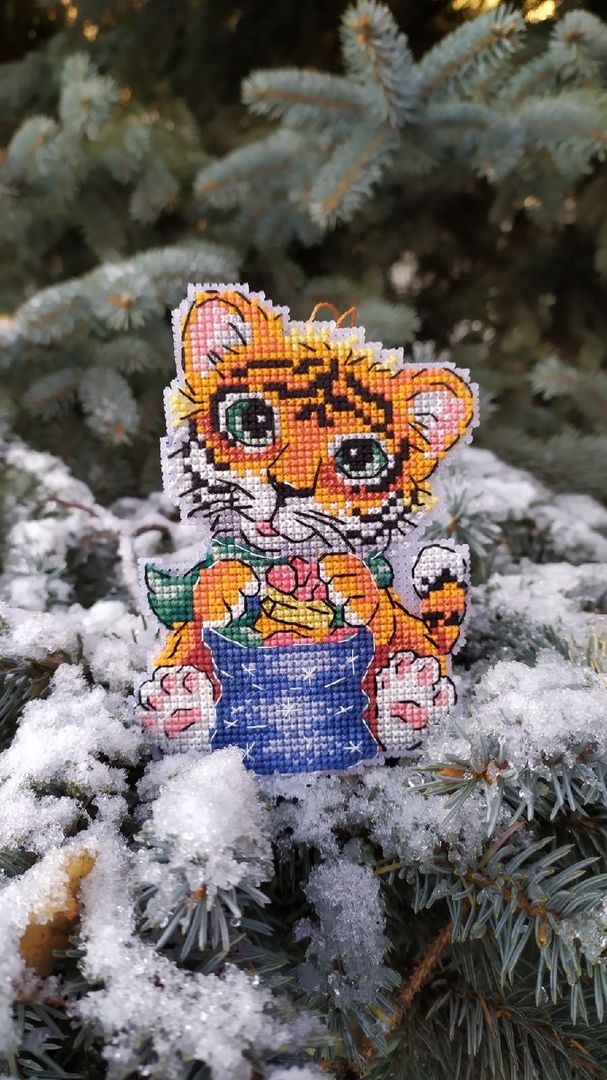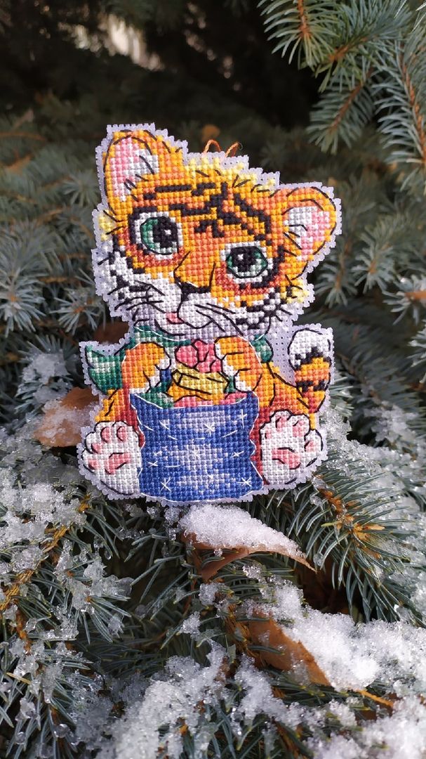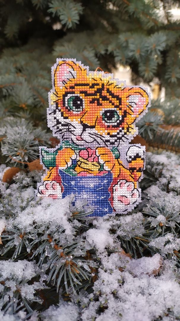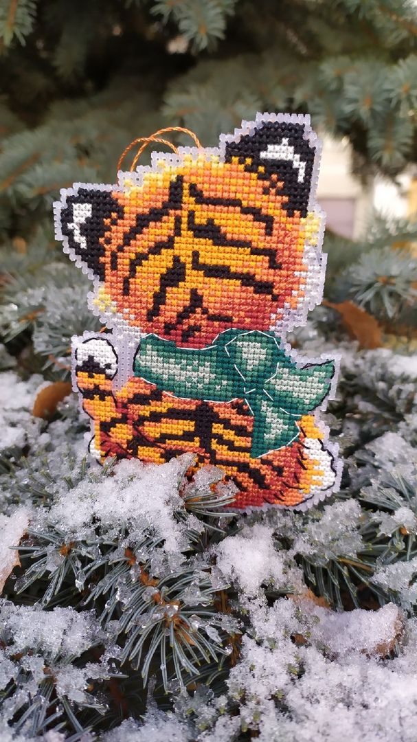19 ноября 2021 Только что, вишенка аллая сказал(а): Ну снова здравствуйте! Как и обещала принесла тигрика! Было. Стало. Сборка Вот он мой милах милах!!! Сегодня у нас поршивая погода, очень пасмурно, порывистый ветер, холодно и в добавок кругом грязный снег. На веточках ели фоткать было вообще не возможно, его ветром тут же сдувало, и на снегу тоже никак, как сказала уже кругом грязно. Выручил, всё тот же пенёк на котором не так давно фоткала тыковок, да и то игрушку то и дело сдувало, всего его обваляла, усы слиплись, ну как есть уж. Подведу итог: процес очень приятный, шьется очень быстро. Обработку дна делала по другому. Его надо было стягивать ниткой, а я загнула края канвы и приклеяла на основание картона и всё классно держится и не смещается. Принцип сборки всё тот же (как бискарню). Но тут это ещё то удовольствие, особенно в местах всех изгибов и стыковки дна. Ни на одном участке не расслабишься, стоит ошибиться в одной клеточке и нижние лапы не состыкуются с верхними. Но как говорится при желание всё можно победить, трудности быстро забываются, а по итогу классная игрушка остается. На счёт комплектующих: наполнителя хватило, кусочек канвы был хороших размеров, если все грамотно расположить, то на две игрушки точно бы хватило. Ниточки остались, точно конечно утверждать не буду, но ещё на один отшив может и хватит. Ну вот как то так! Света,какой же симпатяга получился...зря я не рассмотрела этот вариант для нг...и сшит очень аккуратно. И да уж,сшивать сложновато,я это проходила при сборке пасхальных зайцев. Зато теперь у тебя есть этот символ года с милой улыбкой... Raduga777, вишенка аллая, махно и 1 другой сказали спасибо Поделиться сообщением Ссылка на сообщение