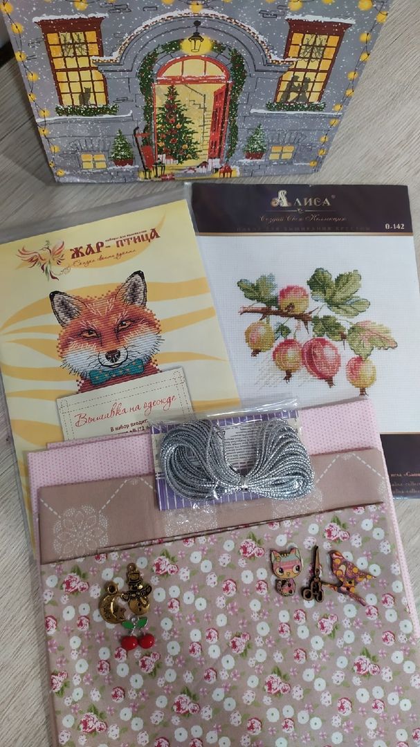 2 декабря 2021 Всем привет! Несу отчёт!!! Извиняюсь, за задержку, но только сегодня сделала последние штрихи у моей Миссис Клаус. Два дня не переставая у нас лил дождь, градусы то плюс то минус, дома и на улице пасмурно и темень, голова просто раскалывалась и ничего делать не хотелось, а только спать. Томить не буду, начну сразу с моей Мисс очарование и еще я её мисс Марпл прозвала. На третьем фото она вроде как немного на неё похожа или это мои фантазии. Бабулечка. Было. Стало. Вышила я её быстро, бэк вроде тоже особового труда не составил, но я как всегда запнулась на самом легком. С трудом мне дался этот наипростейший шов чепчика и воротничка, провозилась с ним не один часок и в итоге всё ровно не так идеально получился как бы мне хотелось. Посмотрела, что у санты его не будет, я с легкостью выдохнула. Делала я его после ночной смены, уже поздно вечером, да в придачу ещё самочувствие было не важное, может это и сказалось на моей работе. В общем сегодня уже на свежую голову доделала. Хочу внедрить так сказать в мои работы рубрику: Тайный процесс. То есть по мимо своих основных процессов, буду заводить ещё один секретный, но показывать сразу не буду, а только после логического отшива первого участка. Какие конкретно это будут процессы ещё толком не решила, может что то крупное начну, а может и малявочное. Пока так хочу попрактиковать во время зимы, а там посмотрим, вдруг приживётся. И так мой первооткрыватель тайного процесса конечно будет символ следующего года. Тигрик от МП Студии. Сразу скажу вышивала не по набору, а остатками ниточек от др наборов. Давно лежал мертвым грузом этот пакетик, вот и решила таким образом его слегка утилизировать.( благо что ниточек хватило, последняя ниточка оранжевого закончилась на последних крестиках спинки). Ну вот что в итоге получилось. Сперва конечно было страшненько. Мешок перешивала дважды, так как не нравились цвета( как то они сливались между собой), взяла ниточки с другого органайзера и вроде всё сложилось. Бэк у мешочка делала не в 2 ниточки, а в одну, так вроде аккуратнее смотрится. Как уже сказала у нас была ужасная погода, как то красиво сфотографировать не было возможности, кругом грязь, слякоть, к ёлкам вообще не подойдешь все в лужах стояли, но вот сегодня чуток подмерзло и сфоткала. Не смогла выбрать покажу все. Немного похвастушек. Мне пришла посылочка от Наташи 2013. Новый год ещё не начался, а я уже с подарками, это было очень неожиданно и очень приятно! Всё нужное, полезное и вкусное! Тканюшки, шармики, пуговки, тесьма, всегда пригодятся при оформлении чего то прикладного. Из всех миниатюрных наборчиков с водорастворимой канвой больше всех нравился этот лисёнок, он такой милаха. А крыжовник мне видится в оформлении мешочка для хранения ароматной травки или чая. Пастилу ещё не ели, а вот яблочный хлеб попробовали. Очень интересная штука я вам скажу. На вид как бисквитный рулетик, кусаешь, он тает во рту и имеет такой вкус вымоченных яблочек и есть такая деликатная кислинка черной смородины. В общем с зеленым чаем и с кофе самое оно! Наташа, спасибо тебе огромное за подарочки, всё очень понравилось!!! На днях ходили в органный зал на концерт Игоря Лермана. Вот уж не думала, что классическая музыка меня так то заинтересует. Пошли с подругой ради интереса, думали если что сбежим, но не ту то было... Концерт был совр