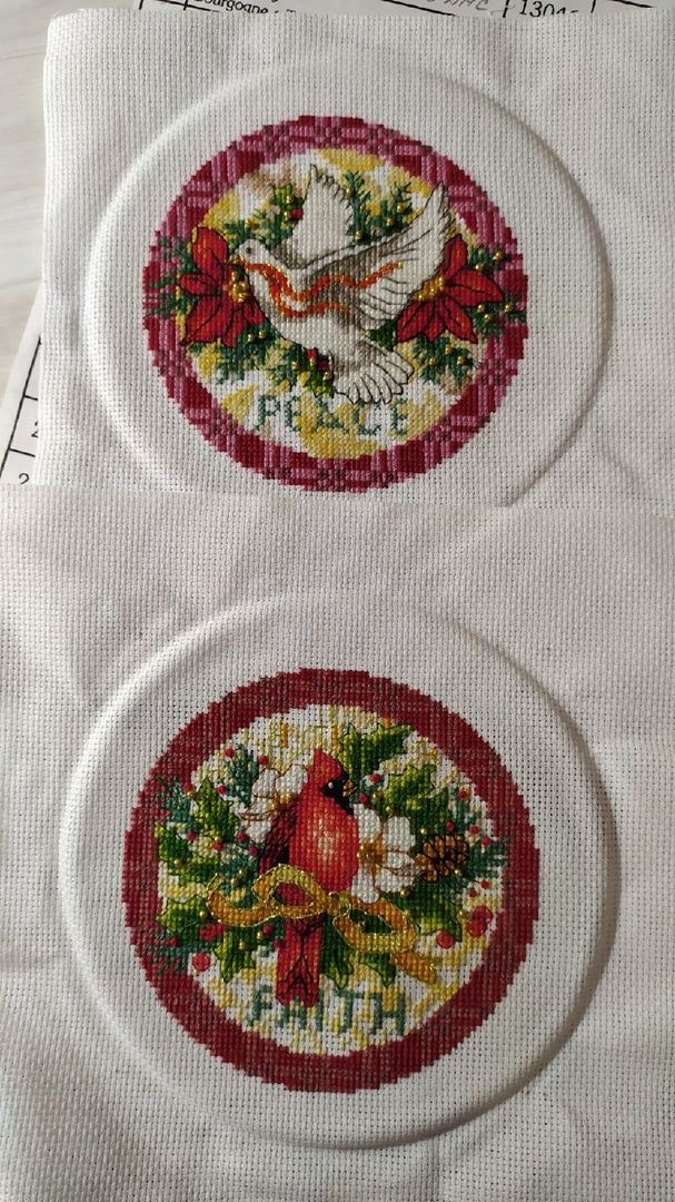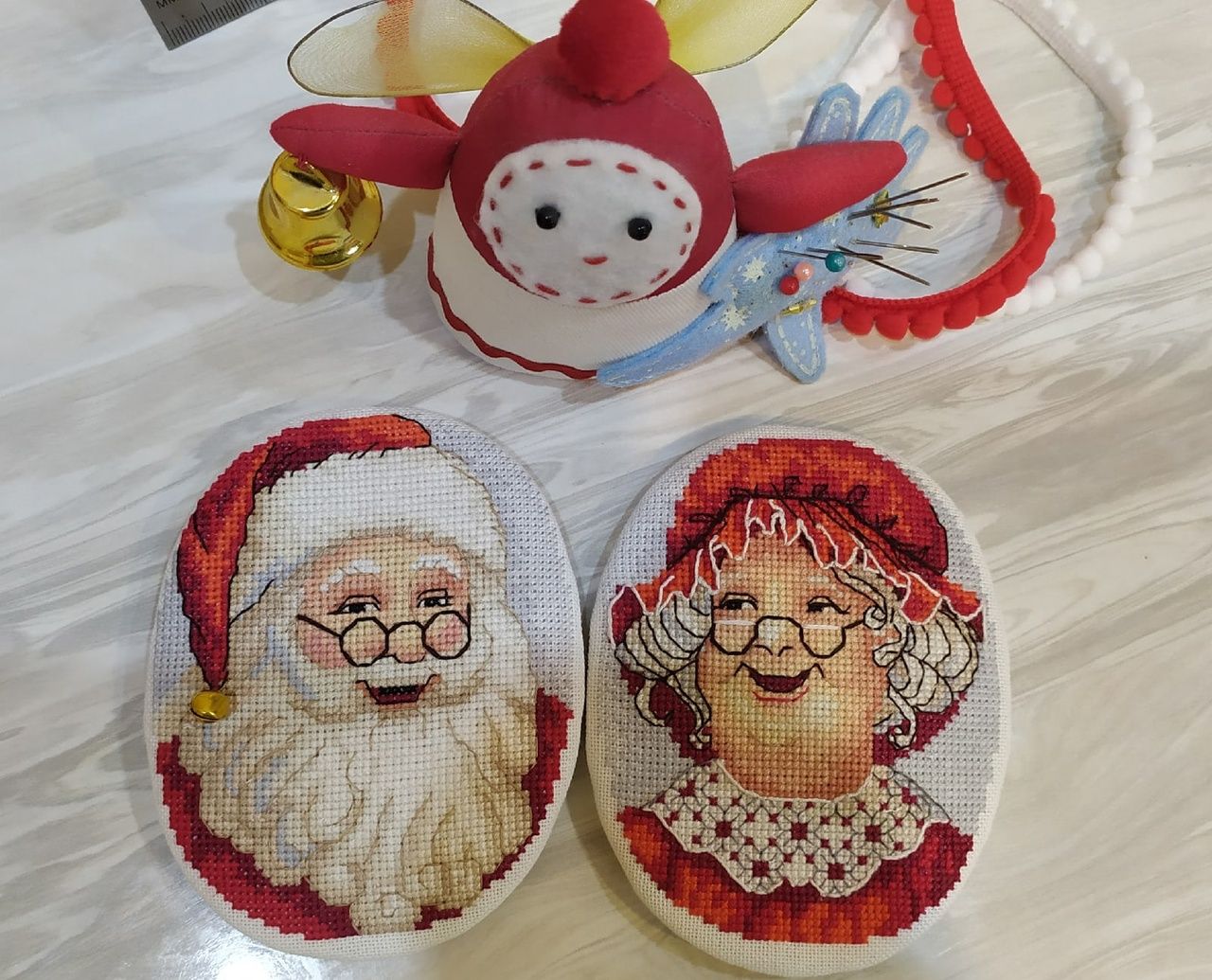 8 января 2022 Всем огромный Привет в 2022 году!!! Я опять выпала с форума, все виной тому конечно новогодняя суета и домашние хлопоты! Много есть чего показать и рассказать, даже не знаю с чего начать, но постараюсь восстановить хронологию событий. Ну во-первых я на годик стала старше, от этого чуток грустно, но никуда от этого не денешься! Начну пожалуй с прошлогодних долгов, работа уже красуется в галерее, а до конца процесс так и не показала. В прошлый раз была готова миссис Клаус, настал черед дедульки. Эти фото не для гаечки, просто примерка. Пыталась найти в продаже нужную по диаметру тесьму с маленьким шагом, но так и не нашла. В запасах был небольшой кусочек, пробовала с ней оформить, но расстояние между шариками очень большое и смотрится не красиво. В итоге не стала заморачиваться и оформила в тесьму с маленькими шариками. На задник решила взять шотландскую клетку. Подвес для елочки делать не стала, приклеяла магнитную ленту и повесила их на холодильник, смотрится очень празднично! Продолжение: А вот так необычно был украшен вход в нашу ветеринарную клинику. Продолжаю вышивать куклу Дашу от фирмы Овен. Хотела закончить, чтоб не переносить на следующий год, но так и не смогла, а всё виной мое масштабное размножение, но об этом чуть позже. Было. Стало. Ведь можно уже сказать с ней я на финишной прямой, осталось два цвета в банте и бэк, но вот отложила и всё чувствую что еще долго до неё руки не дойдут. Далее хотела закончить бэк у игрушки с птичками от дим Старинное рождество, но тут меня ждал казус!!! Как оказалось я ещё с первой игрушкой с голубем так жестко ошиблась, рамку вышила не тем цветом. Вот смотрите какая разница: Ну что пришлось всё выпарывать, 18 аида чтоб вы понимали, да ещё и по зашитому и уже с бэком, но ничего не поделаешь. Заняло у меня это один вечер, но результат на лицо. Ну как вы понимаете до бэка последней отшитой игрушки настроение уже по растерялось и браться за неё не хотелось. Перед самым днем рождением мне пришла чудеснейшая посылочка из Казани от нашей Ирочки Zaia. Замечательные текстильные мешочки со сладостями( куда уж без них), кофеек, магнитик с тигриком, ароматное мыльцо ручной работы в виде мандаринки и просто потрясающие новогодние яички. К стати цветущая орхидейка на заднем плане тоже когда то подаренная Ирочкой. Маня тут как тут, куда уж без неё то. Конфетки в подарках очень оригинальные, некоторые пробовали впервые, мягкий кофеек, но яички просто сплошной восторг!!! Два из низ весят на елочке, а снегурка на полочке стоит и радует глаз. Ещё одна посылочка от Светочки Letki пришла в самый день рождения, как вы понимаете радости не было придела. Не успели принести коробку, наша любопытная Маня тут как тут, скребла лапой по коробке помогала открывать. Вот сколько богатств, вкусноты и изобилие наборов. Фетровый наборчик с левиком была моя Мечта- Мечта и Светочка купила мне его на формуле рукоделия. Уже посмотрела по нему мастер класс, на первый взгляд вроде не так сложно шьется, а составляющие набора просто чудесные. Дети его сразу заценили, сказали такой милаха Обязательно сошью его для сынишки. А вот этот наборчик мне был подарен Настей из Овечкиных забав в благодарность за участие в ее прошлогодней выставке. Попросила Светочку забрать этот наборчик с выставки и она любезно согласилась, за что ей огромное спасибо. Мягоньки