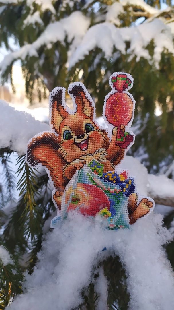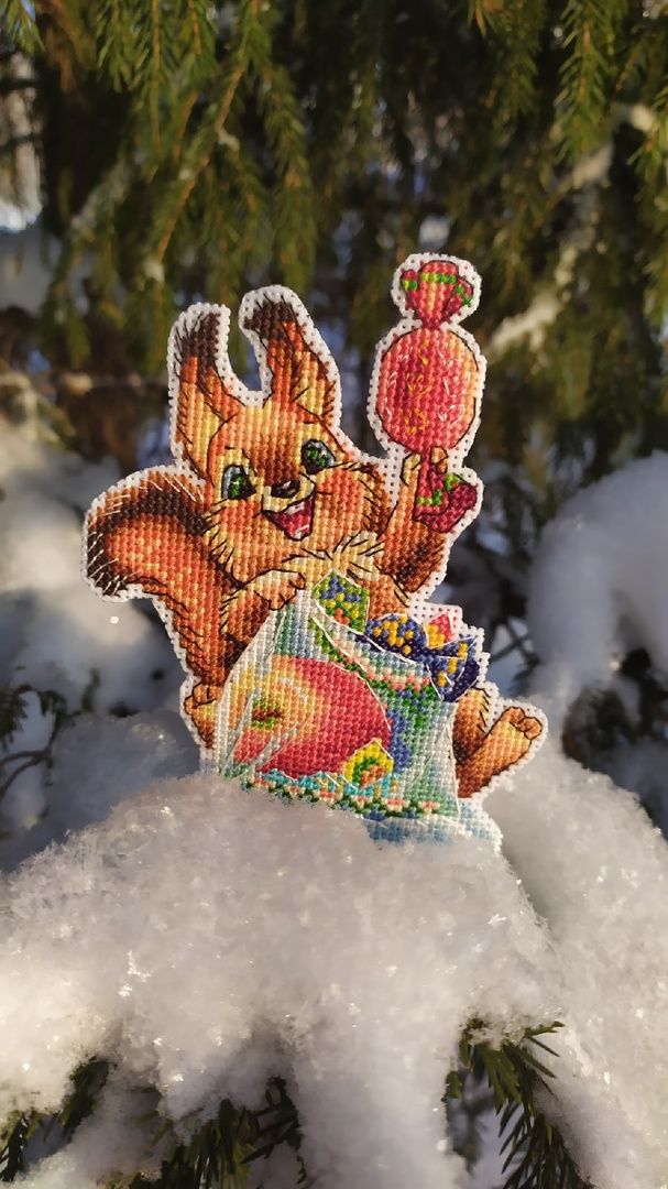 27 января 2022 Всем добрый вечерок. Пришла поделиться хорошим настроением и конечно продолжением своих процессов. Начнём с приятного финиша! Было. Стало. Отличный сюжетик, белочка просто милейшее создание. Процесс был приятным и быстрым. Единственное, что я обычно всегда начинаю шить с задней стороны, а тут начала с парадной части и поэтому хвост достаточно нудненько было вышивать. На елочке я её не очень вижу, а вот на подставочке она смотрится очень хорошо, но это уже дело вкуса и кому как хочется и видится. Удалось выкроить время и для куколки Даши. Было. Стало. Дошила ей бант и сделала бэк на лице и в волосах. Осталось совсем чуток- фоновый бэк и работа будет готова. Решила её сперва постирать, а после уже делать, так как бэк выполняется в две ниточки и есть опасения, что он может провиснуть. Между делом решила отвлечься от крестиков и собрала вот такую игрушечку. Этот наборчик был мне подарен на новый год Светочкой ( Letka). Я конечно не сильна в подобных поделках и у шарика не всё так идеально получилось, но всё ровно шарик очень нарядный и красивый получился. Ну и конечно новый старт!!! Это моя Марфуша Сметановна. Наборчик МП Студии Веселая масленица. Дизайнер Анна Белова, художник Анна Демченко. Размер готовой работы 17 на 17 см. Канва аида 16, схема цвето- символьная, ниточки гамма 35 цветов, 5 блэндов, техника : крест, полукрест, бэкстич. Уделила ей совсем мало времени, но процесс настолько приятный, что четверть работы уже готово. В сюжете преобладают очень красивые мятные оттенки и больше половины работы вышивается полукрестом, поэтому процесс летит и с ним совсем не хочется расставаться. Ниточки отлично вели себя, канва тоже хорошая, схемка понятная, в общем все слагаемые хорошего времяпровождения с моей Марфушей. Вместе с наборчиком была вложена открыточка, она просто потрясающая, но вы сами понимаете почему. Вот такой хороводик у меня образовался. Ну вот вроде и всё на сегодня. Ещё был один старт, но о нём чуть позже( хотелось вышить до логичного участка и после уже показать). махно, Molly21, Egelia и 22 других сказали спасибо Поделиться сообщением Ссылка на сообщение