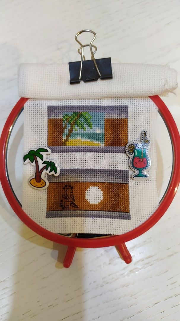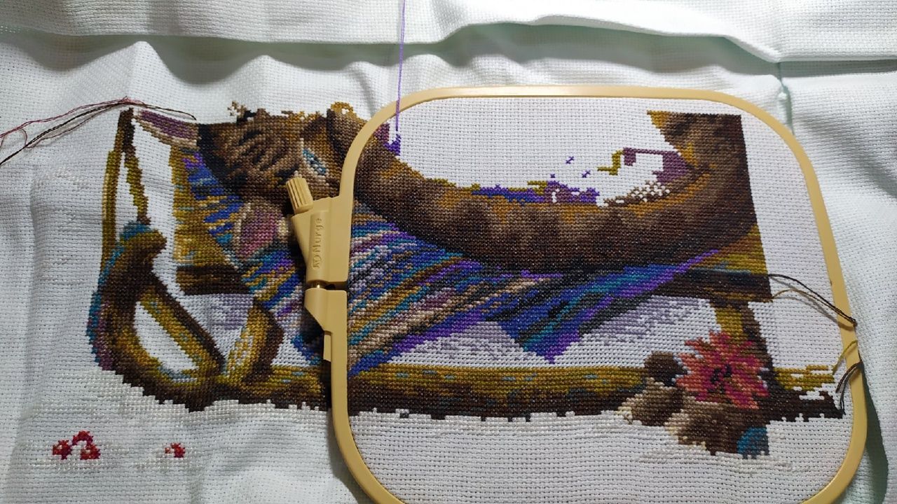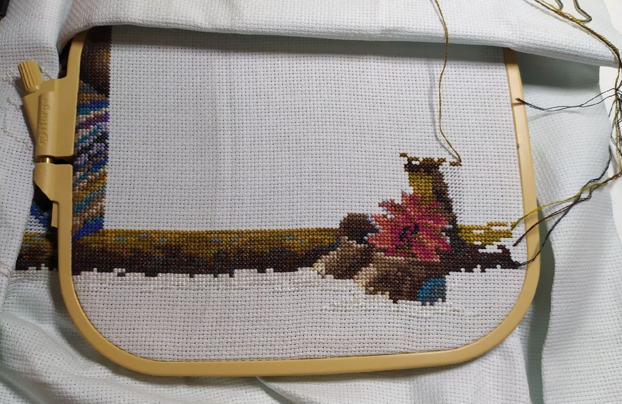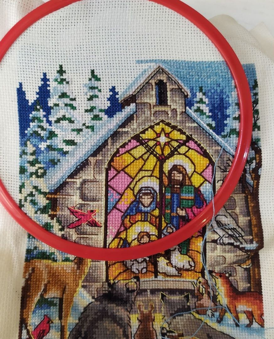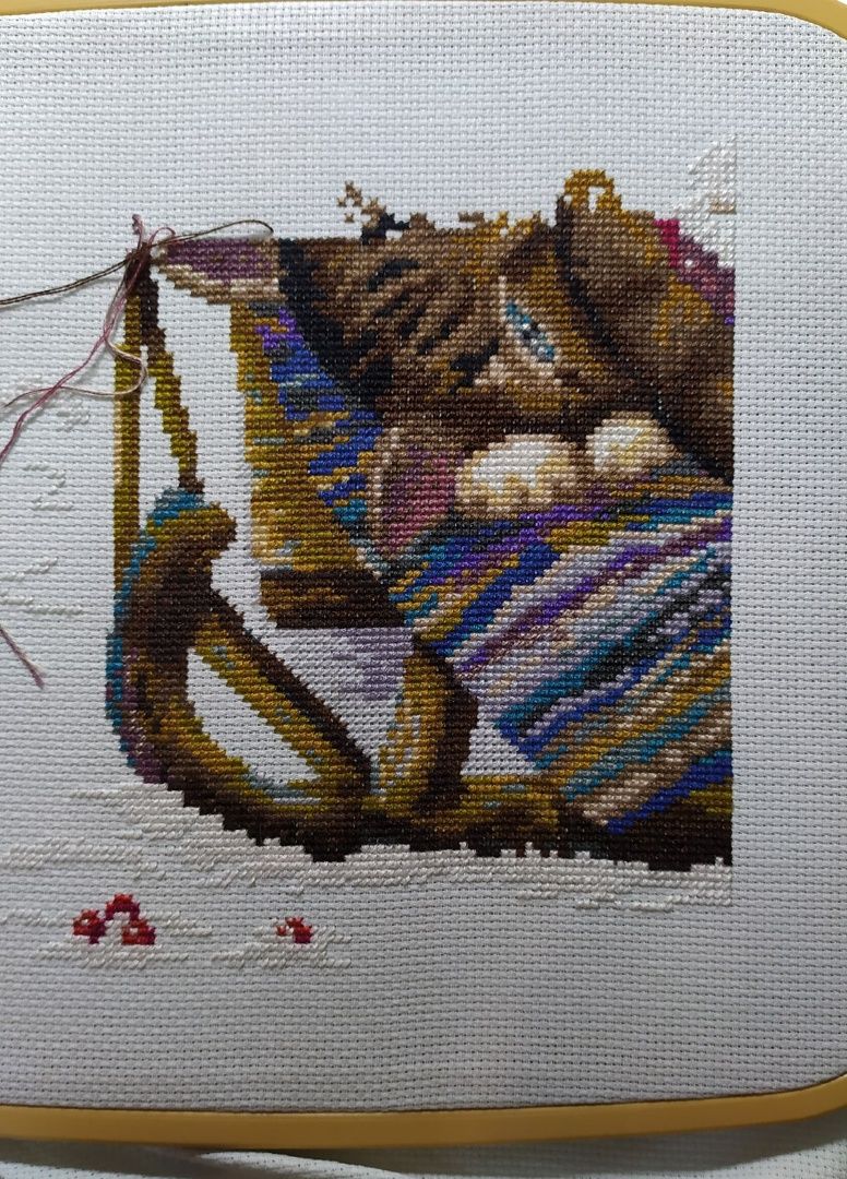 1 июля 2022 Всем привеееет!!! Ну наконец то я нашла время для отчета и поверьте показать есть что. Тянуть не будем начнем! Текущие процессы изрядно подросли: Букет гортензии Было. Стало. Процесс и сам результат один сплошной восторг, ну вы и сами всё видите. Отшито три листа( всего их 9). Бегло пробежалась по трем следующим листам и вроде как вышиваться должно легко, много участков листвы зашивается одним цветом. Смотря на уже отшитый фон поняла, что идея шить его крестом в 1 нить была отличной. На фоне него вазон фактурно выделяется и смотрится здорово. Уютная зима от мережки. Шикарный процесс, просто балдею от него. тоже отшито 3 листа. Было. Стало. Не поверите, но даже уделила время зимнему процессу. Вышила ещё одну игрушку от дим, правда она ещё без бэка и всяких украшательств, но всё же. Было. Стало. А теперь финиш!!! Рождество от дим! Было. Стало. Была у меня идея икс закончить его в июне и вот так таская то на природу, то на работу, шаг за шагом был завершен. Сын у меня уже третий год ходит в секцию дзюдо и в этом году практический весь летний период тренировочный процесс проходит в лесу, но а я соответственно зря времени не теряла и параллельно наслаждалась то природой, то пением птиц, то кваканьем лягушек и конечно любимым хобби. С нового года по рекомендации тренера сын переходит уже в профессиональную группу, чему мы конечно очень рады, но а пока идёт серьезная подготовка на выносливость, на преодоление страхов и по моему он удачно с этим справляется. В этом же лесу есть веревочный парк и вот из всей группы он только один согласился идти по самому сложному маршруту. Забегая вперед надо отметить, что это достаточная приличная высота, все конструкции при ветре сильно качаются, да и особого инструктажа никто не поводил, но он справился. Здесь же в лесу два больших озера и заключительным этапом было перелёт нам озёрами так называемый зиплайн- спуск по стальному канату с отрывом от земли, по воздуху. Не обошлось и без нового процесса! Как только увидела анонс, тут же побежала за схемкой и вышила за два вечера. Как то был опыт в вышивке замечательного чемоданчика от Ольги Петренко и мне давно хотелось и мечталось вышить что то подобное и вот оно!!!! Обратите внимание даже цветовая гамма совпадает. И да, у меня же есть вышитый лисёнок - путешественник, отличный будет тандем - подумала я! Камера- фотоаппарат путешественника по схеме Ольги Петренко. Вот что должно было получиться. А теперь мой вариант. Эти два фото не в гаечку, просто примерка всех возможных пуговиц. Вот вроде мелочь, но в моём случае играло роль всё и сочетания пуговиц по цвету вышивки и нужному размеру, как пуговицу лучше пришить крест накрест или по прямой и даже тактильно ли приятно на эти самые кнопочки нажимать, вот так заморочилась и черные гладенькие пуговки победили. Ну и сборка. О процессе: вышивается на аиде 16, верхняя и нижняя часть дополнительно проклеивается дублерином для поддержания нужной формы. 16 цветов дмс, один из них блэнд. Нужен небольшой кусочек коричневого фетра и 8 пуговиц. Вышивается и собирается очень легко, самым сложным для меня конечно был выбор нужной фурнитуры. Перемерила все виды пуговок какие только были, но по итогу вот что получилось. Сама камера состоит из двух пуговиц с бортиками вставленные одна в другую, за счёт этого есть нужный объем и с боку кажется, ч