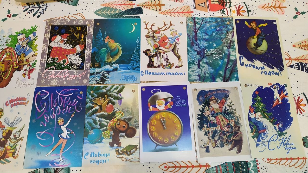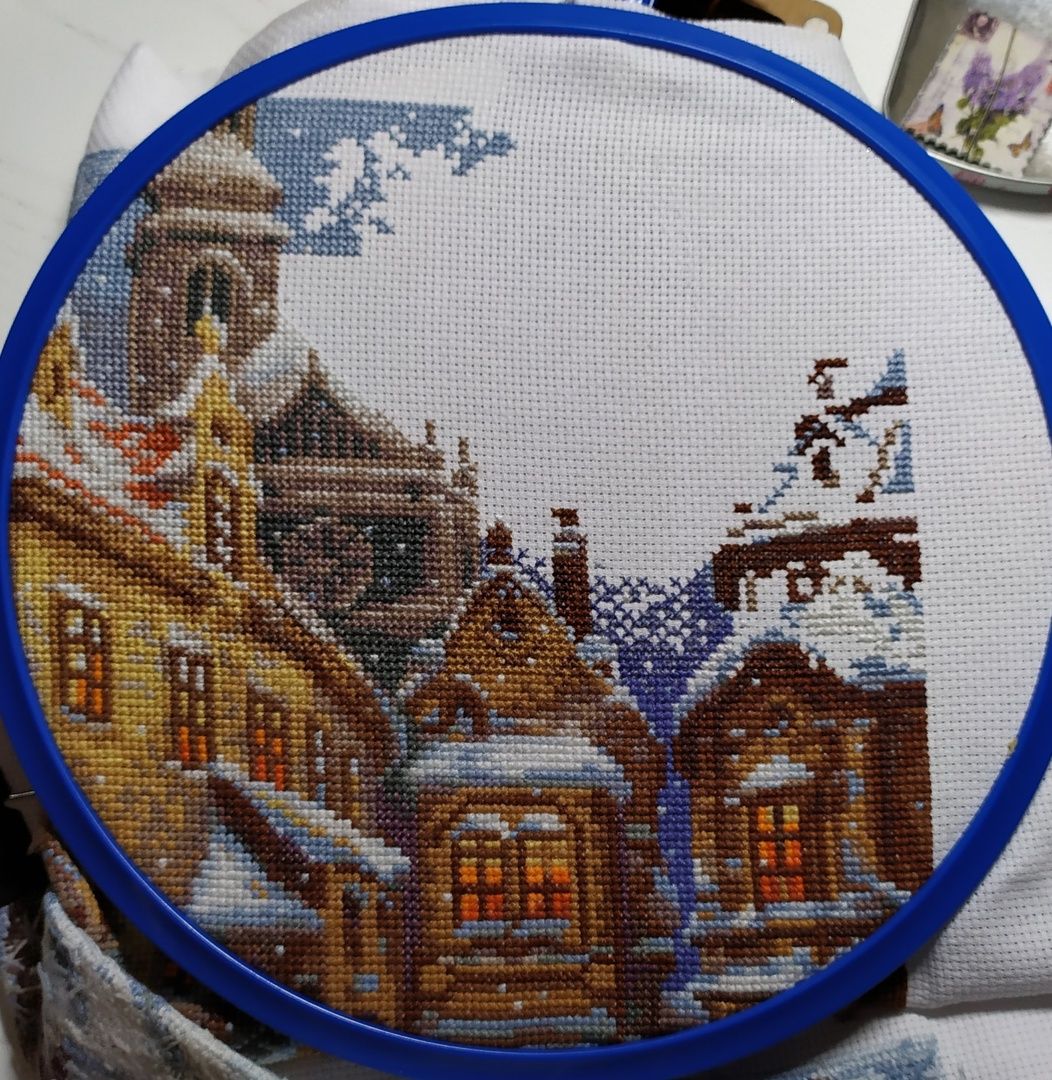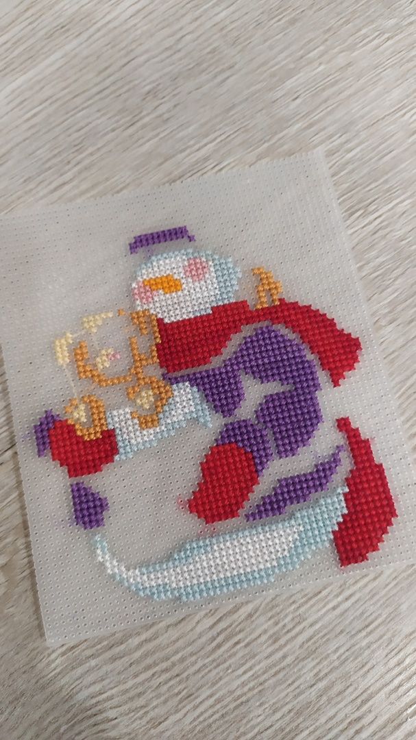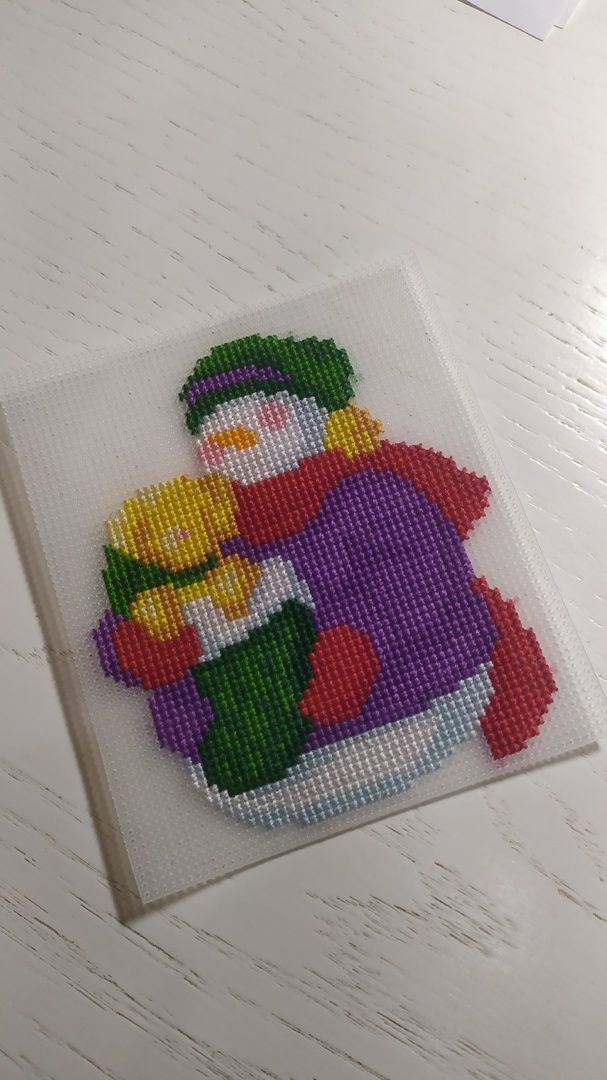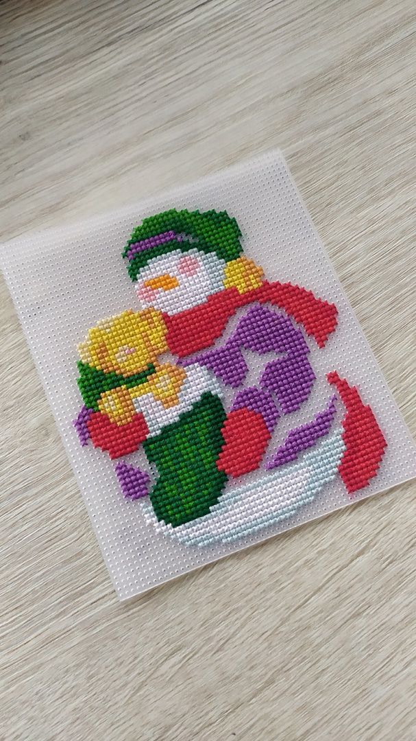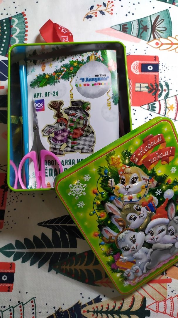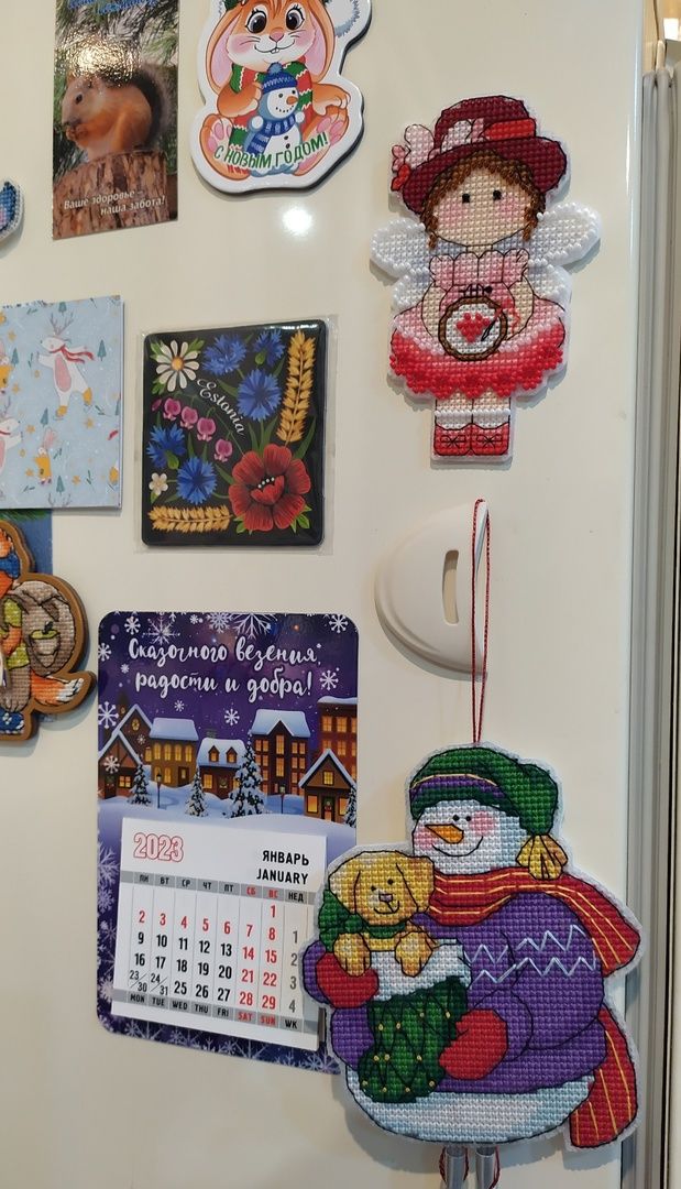 23 января 2023 18.01.2023 в 19:51, вишенка аллая сказал(а): Всем доброго вечера! Небольшой отчётик. Продвижения: "А снег идёт" Было. Стало. Как то в один из вечеров засиделась я за этим процессом до 4 утра, вышила 1500 крестиков и поняла, что напортачила. В который раз зарекаюсь далеко не отдаляться от предполагаемого участка вышивки. Ведь обозначила себе участок и казалось бы вышивай да вышивай, нет дёрнул меня чёрт поползти на верх. Отшив всю башню, обнаружила, что сместила её в право на 1 крестик причём в самом начале. Ну ее и перекосило малость. А так как шила в основном вертикальные фрагменты, то на бока и низ не обратила внимания. И только в конце поняла что по бокам что то не сходится. Ну что порола и порола всё, да ещё очень аккуратно выдергивая ниточки, чтоб ими можно было повторно вышить, так как боялась, что ниточек не хватит. Хотя надо отдать должное комплектации( ниточек с запасом положили), я просто решила подстраховаться и вот такой поркой конечно усложнила себе жизнь, ну а что делать, сама разиня. Перешила и горда собой! Просто если бы не эта ошибка, то вполне реально было уже пол листа вышить. Как то наткнулась на обложку этого снеговичка от дим и не смогла спать, пока не нашла схемку. Помог великий интернет. Вышивала на пластике, ниточки какие то оригинал( остатки от прошлых наборов), часть подбор. Ножки позаимствовала у др санты( заказывала на али). Остальных его друзей( сант и снеговиков тоже планирую вышить). Далее захотелось быстрого старта и финиша и выбор пал на подаренный мне наборчик от Аннушки. Название: Тёплая встреча. Первый мной вышитый наборчик от Аннушки приятно удивил. Отличный во всем отношении. Мулине гамму положили с огромным запасом при этом в схеме указаны все номера ниточек, при вышивке не мараются даже во влажном состоянии, проверяла ради интереса. Перфорация крупная, иголочка сама ныряет, пальчики не болят, красотень! Имея наборчик можно воспользоваться сагой, тоже огромный плюс. Фетр для задника плотный, вырезан по форме, всё как положено. Единственное, что я позволила себе заменить, это цвет металлика, взяла по ярче из своих запасов и шила им в 4 сложения без каких либо проблем.Бэк местами тоже шила др цветами: рот у снеговика вышила красным, а не чёрным как предлагалось и часть глаз и шляпку сделала серыми. Ну в общем знаменателе я кайфанула от этой малютки, пару вечеров и игрушка готова. Вот моя парочка в окружении всем известных друзей! На старый новый год пришли очередные подарочки, от рукодельной подружки Маши. Вот такой суперский наборчик прищепок. Но в самое несгладимое чувство восторга привел меня вот такой набор открыточек. Их 100 штук. Масштаб моей радости просто не передать словами. Вот эти все у меня были и они самые самые что не наесть любимые и дорогие моему сердцу. В детстве в 70-80 годы очень было популярное занятие и все любили получать, перебирать, коллекционировать эти открыточки. У дедушки с бабушкой 1 января были дни рождения и зачастую на новогодних открытках с изображением незамысловатых еловых веточках и самой цифры 1 и писали эти поздравления. У нас их было огромное количество, слали из всего Советского союза и даже ближнего зарубежья. Много было открыток с Украины. Это прежде всего вкус детства, ощущения что все близкие ещё живы и они рядом, некоторые открытки я даже увидеть не мечтала, не то чтобы ими обл