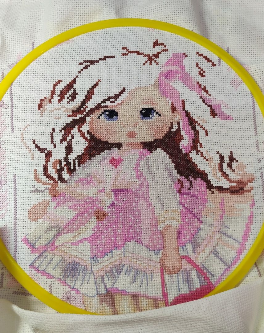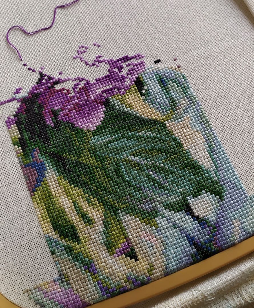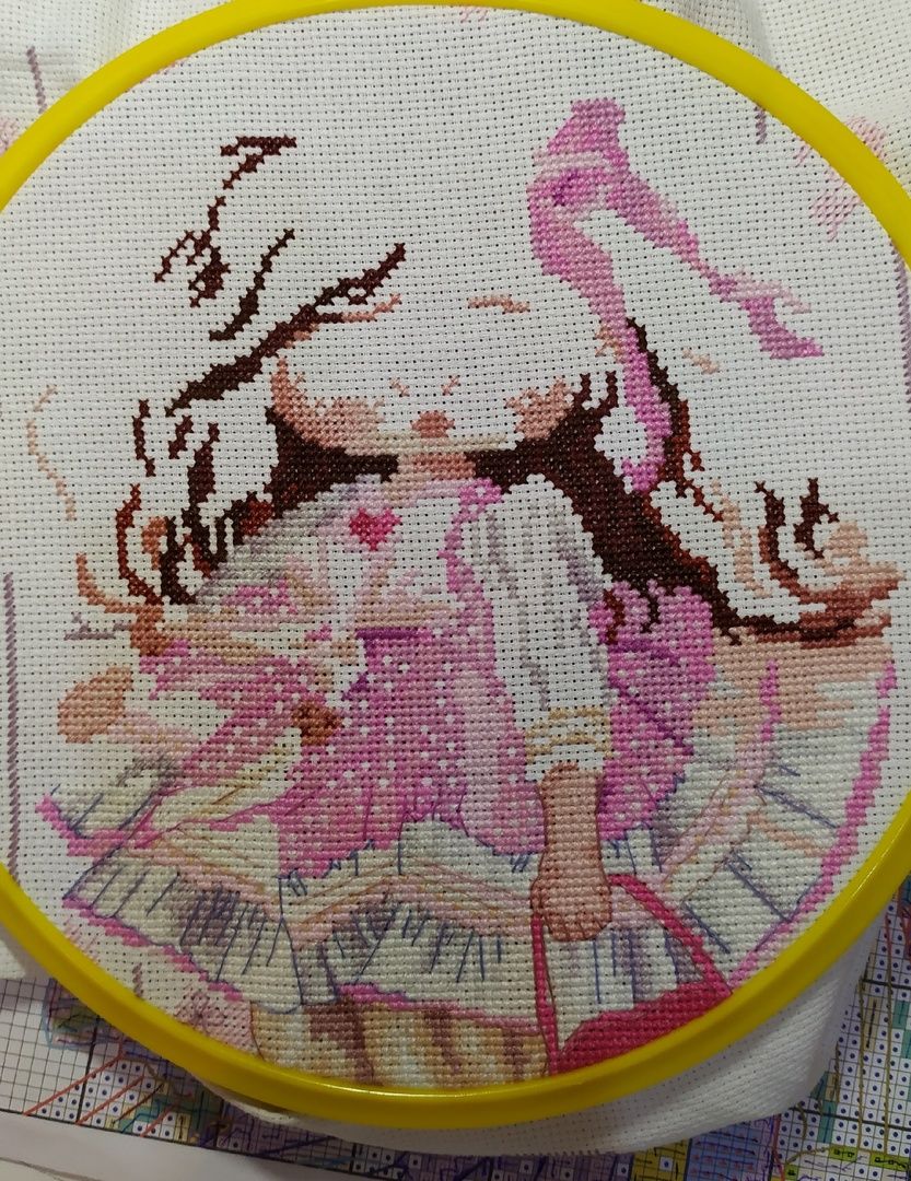 19 апреля 2023 Девочки всем доброй ночи! Пришла с обещанным отчетом, если конечно это еще кому то интересно. И так начнём с финишей. Куклы от фирмы Овен. Ариша. Было. Стало. Даша. Было. Стало. Ну в общем куколки оформлены и уже подарены двум девочкам двойняшкам ( детки двоюродной сестренки). Куколки удивительно на них похожи. Оформление подбирала по желанию хозяйки. О наборах только положительные эмоции, ниток осталось очень много. Бэк в две нити фона у куклы Даши не сказала бы что был приятным, но долго не могла на него настроиться. Рада, что наконец то их довела до ума. Ангел Терезы когут. Было. Стало. Очень старалась отшить его к пасхе, но не смогла, ровно недельки не хватило и здоровье чуток подводило. Когда его начинала, сомневалась, раздумывала, смущала пятнистость и резкие переходы лица, сама по себе разработка не из легких, Одиночка, одиночку погоняет, некоторые цвета между собой по тону почти не различимы, в общем чем то напоминает Тэю, даже значки те же. Но когда из непонятных крестиков начинает вырисовываться отшитый участок, то понимаешь, что тут каждый крестик на своём месте и эти на первый взгляд грубые переходы чем то напоминают мозайку. Шить конечно надо сосредоточенно и внимательно, но это того стоит. Я еще пришла к выводу, что тут нужна грамотная организация, цветов вроде не много думала буду шить с бобинок, но нет!!! Это очень тормозило процесс. Сперва в ключе ищешь значок, и смотришь номер нитки, потом ищешь эту бобику их вроде не много, 36 всего, но есть похожие значки, спутать легко и все это отнимает кучу времени. Перевесила ниточки, сделала цифровой поиск и дело пошло, жаль что сразу так не сделала, а всё почему?- Банально Лень!!! А когда, что называется приспичило сделала это за 20 минут! Теперь буду умнее, ценить своё время в конце концов и удобная грамотная организация ещё никому не вредила. Для себя любимой! Тюльпанчик- отдыхалочка от Волшебной страны. Заготовка от Волшебного края, бисер Preciosa, оборотная сторона прикрыта фетром. Сразу говорю шила не по ключу. В оригинале он жёлтый. В дальнейшем такой вариант ( открыточка+ цветочек) хорошо подойдет для мини подарочка- призентика коллеге или подруге к примеру, да в принципе кому угодно. Как считаете? Вдохновилась цветочками на клумбе и продолжила наращивать букет. Только сегодня из под иголочки- процесс одного дня Нарцисс от Волшебной страны. Бисер Preciosa, заготовка от Волшебного края. Да и забыла написать, что оба цветочка обработаны морилкой фирмы TURY цвет орех. Что то подсела я так знатно на бисер, как бы совсем на Баттерфляй не перейти. Милейший цып по оригинальному набору от Волшебной страны. А как отлично он вписался под мою новую скатерть. Ну и гвоздь программы моя помощница хома, хранительница моих рукодельных запасов и мисс позитивность!!! Хома вышита по схеме фирмы VERENA, бисер Preciosa, кое что заменила на свой вкус, цвет очков к примеру. Заготовку покупала у волшебного края. В оригинале должно отшиваться обе стороны, но я решила что на заднюю часть мало кто обращает внимание, хотя попка у неё клевая. Просто стало жалко бисера и лень было заморачиваться, может как нибудь ещё попробую но на маленькой игрушечке. Отличное соседство с тюльпанчиком. Ну и в завершении просто финальное фото пасхального - топпера на домашнем куличе, так сказать для истории. Ну вот теперь вроде всё!!! Bogdan, Полли, ол