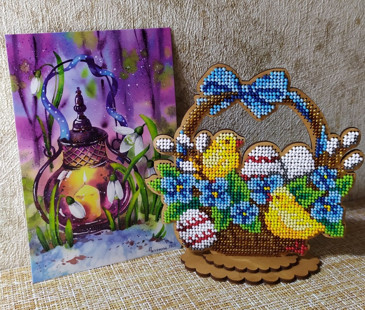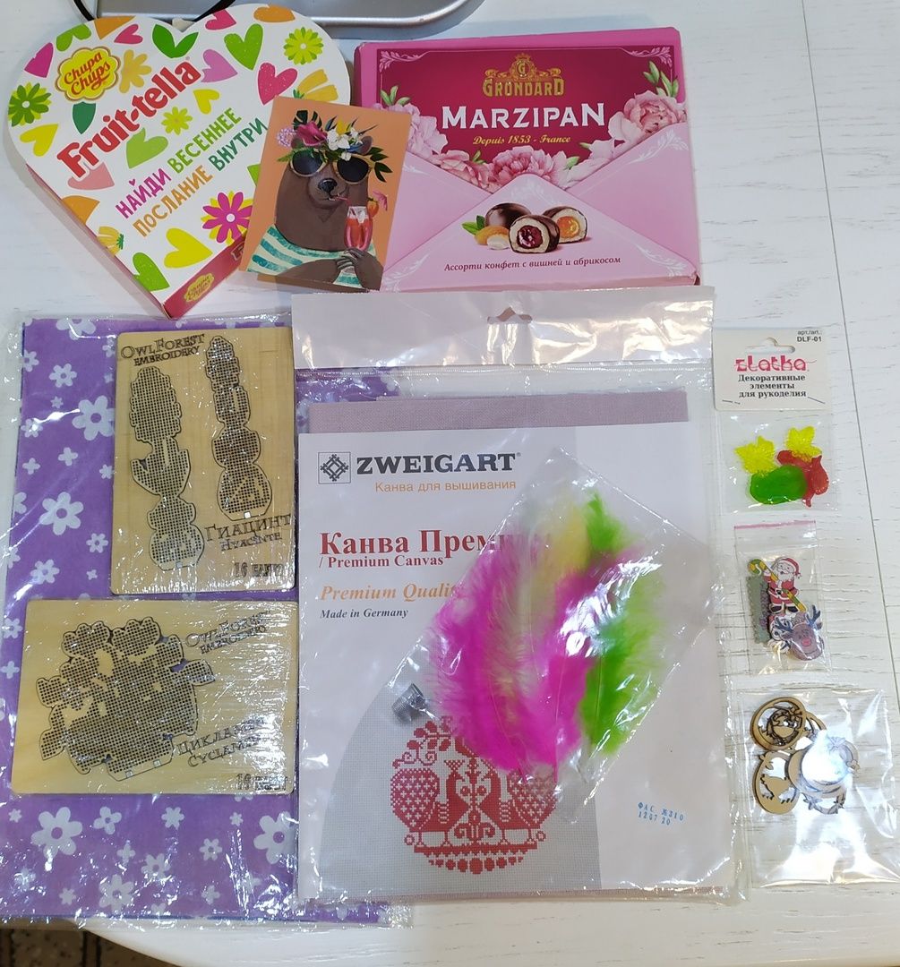 15 марта 2023 И так девочки я пришла с отчётом! 8 Марта меня выписали и я благополучно и радостно пошагала на работу. Во время болезни первые две недели совсем не вышивала, так как была совсем без сил и не могла даже руку в кулак сжать, а иголка казалась бревном, но вот перед выздоровлением кое что всё таки удалось пошить. И так ура! У меня первый финиш марта! Благо что там оставался только фон одним цветом и схемка совсем была не нужна, вот его дошивала лежа в кровати. А что очень даже отлично он мне зашел, как оказалось такие монотонные и простые участки тоже иногда нужны и отлично шьются. Было. Стало. Прекраснейший сюжет, безумно нравится. Остатки ниточек особенно фона очень даже приличные. Правда после стирки канва так сильно сжалась, что при утюжке мне показалось что крестики мои стали толкаться, ну ничего при натяжке всё надеюсь вытянут. Оформлять пока планирую только ближе к зиме. Далее продвижения в моей великолепной гортензии. Её правда ещё плохо видно, но сам процесс просто бомбический, цветовая гамма восторг. Было. Стало. Продвижения моей куклы Аришы. Ну наконец то и до неё дошла очередь, а ведь давно пора было ее отшить, на подарок хотела. Что было. Стало. Решила начать продвижения с фона, а то др куколка полностью завершена, а вот фон на заднем плане так и не завершён. Шьется легко, осталось вышить только волосы и бэк. Далее начала подготовку к Пасхе и меня захватил бисерок! Топпер зайка от Волшебной страны. Ну тут всё круто и основа и бисер и сам результат. Ну сами понимаете качество на высоте. Праздничное фото будет на куличе, но а пока вот такие скучные кадры. Не наевшись бисером позволила себе продолжить! Пасхальная корзинка от VERENA. Заготовка куплена у Волшебного края, перед работой обработана морилкой FARBITEX ( покупала на озоне) цвета дуб. Тут она ещё в сыром виде, как высыхает на два тона точно светлеет. Наносила аккуратно обычной губкой для посуды. Морилка оказалась очень качественной и достаточно плотно и ровно ложилась, хватило 1 слоя. Если наносить на второй слой, то уже слишком темный цвет получается. Без запаха и сохнет быстро. Бисер 17 цветов Preciosa. Весь по ключу кроме двух голубых ( взяла те что были в наличии) и темно-зелёный заменила, так как в оригинале он почти как чёрный был и меня это не устроило. Ну в общем результатом я осталась довольна, очень праздничная и нарядная корзиночка получилась. На 8 Марта мне пришли два подарочка от девочек рукодельных подружек. Подарочек от Маши. Потрясающие открыточки! И наборчик от Неокрафт, такое милое сердечко- декор с пчелкой. Как оказалось оно таких внушительных размеров и классно будет смотреться например на сумке- шоппер. Вот стыдно признаться, но ещё ни разу ничего из Неокрафта не вышивала и даже в руках не держала, поэтому для меня это что называется в новинку. Вот такая я "деревня" Вторая посылочка была совсем, совсем неожиданная и очень приятная от Светочки ( Letka). За посылочкой со всех ног бежала с работы прям в 8 Марта и получила её на сдэке за 15 минут до закрытия! Так как вахта у меня уезжает поздно, думала что не успею и даже поспорила с коллегами. Как они сказали, езжай ты ж не вредная- успеешь!!! Вот мои прелести!!! Побывать на формуле хотя бы раз в жизни это пока моя мечта и Светик зная об этом второй год подряд мне дарит подарочки с этих выставок. Ну конечно сейчас всё доступно к покупкам и н