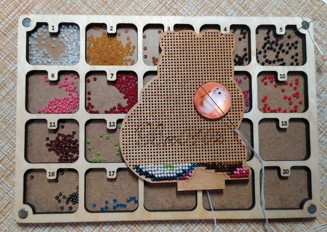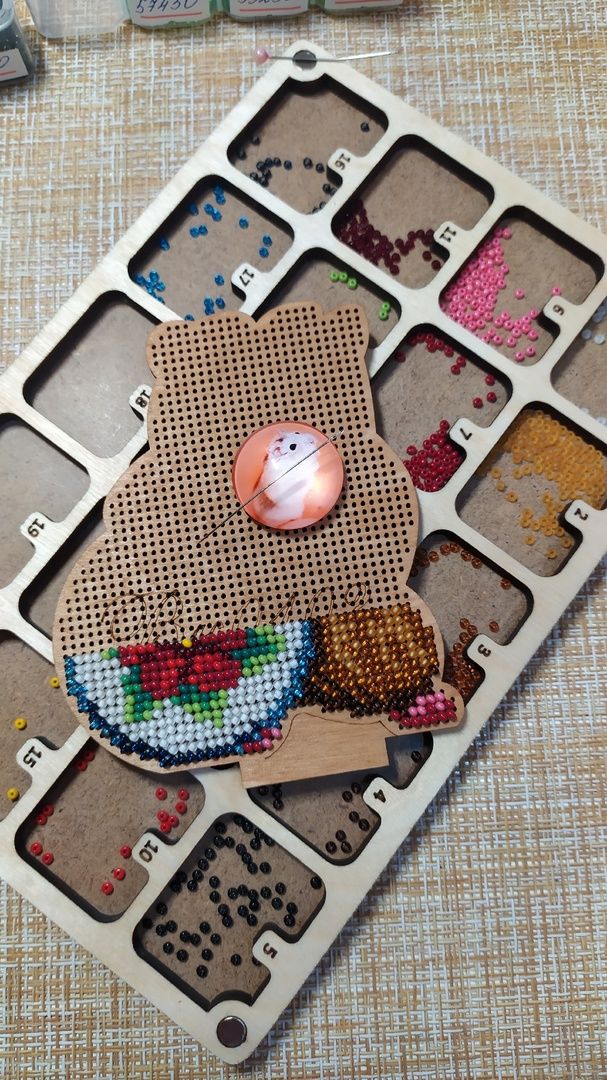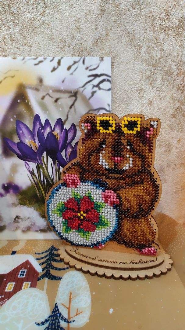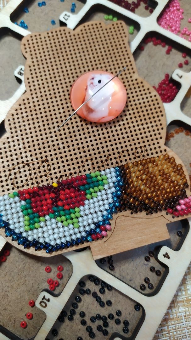 20 марта 2023 15.03.2023 в 17:30, вишенка аллая сказал(а): И так девочки я пришла с отчётом! 8 Марта меня выписали и я благополучно и радостно пошагала на работу. Во время болезни первые две недели совсем не вышивала, так как была совсем без сил и не могла даже руку в кулак сжать, а иголка казалась бревном, но вот перед выздоровлением кое что всё таки удалось пошить. И так ура! У меня первый финиш марта! Благо что там оставался только фон одним цветом и схемка совсем была не нужна, вот его дошивала лежа в кровати. А что очень даже отлично он мне зашел, как оказалось такие монотонные и простые участки тоже иногда нужны и отлично шьются. Было. Стало. Прекраснейший сюжет, безумно нравится. Остатки ниточек особенно фона очень даже приличные. Правда после стирки канва так сильно сжалась, что при утюжке мне показалось что крестики мои стали толкаться, ну ничего при натяжке всё надеюсь вытянут. Оформлять пока планирую только ближе к зиме. Далее продвижения в моей великолепной гортензии. Её правда ещё плохо видно, но сам процесс просто бомбический, цветовая гамма восторг. Было. Стало. Продвижения моей куклы Аришы. Ну наконец то и до неё дошла очередь, а ведь давно пора было ее отшить, на подарок хотела. Что было. Стало. Решила начать продвижения с фона, а то др куколка полностью завершена, а вот фон на заднем плане так и не завершён. Шьется легко, осталось вышить только волосы и бэк. Далее начала подготовку к Пасхе и меня захватил бисерок! Топпер зайка от Волшебной страны. Ну тут всё круто и основа и бисер и сам результат. Ну сами понимаете качество на высоте. Праздничное фото будет на куличе, но а пока вот такие скучные кадры. Не наевшись бисером позволила себе продолжить! Пасхальная корзинка от VERENA. Заготовка куплена у Волшебного края, перед работой обработана морилкой FARBITEX ( покупала на озоне) цвета дуб. Тут она ещё в сыром виде, как высыхает на два тона точно светлеет. Наносила аккуратно обычной губкой для посуды. Морилка оказалась очень качественной и достаточно плотно и ровно ложилась, хватило 1 слоя. Если наносить на второй слой, то уже слишком темный цвет получается. Без запаха и сохнет быстро. Бисер 17 цветов Preciosa. Весь по ключу кроме двух голубых ( взяла те что были в наличии) и темно-зелёный заменила, так как в оригинале он почти как чёрный был и меня это не устроило. Ну в общем результатом я осталась довольна, очень праздничная и нарядная корзиночка получилась. На 8 Марта мне пришли два подарочка от девочек рукодельных подружек. Подарочек от Маши. Потрясающие открыточки! И наборчик от Неокрафт, такое милое сердечко- декор с пчелкой. Как оказалось оно таких внушительных размеров и классно будет смотреться например на сумке- шоппер. Вот стыдно признаться, но ещё ни разу ничего из Неокрафта не вышивала и даже в руках не держала, поэтому для меня это что называется в новинку. Вот такая я "деревня" Вторая посылочка была совсем, совсем неожиданная и очень приятная от Светочки ( Letka). За посылочкой со всех ног бежала с работы прям в 8 Марта и получила её на сдэке за 15 минут до закрытия! Так как вахта у меня уезжает поздно, думала что не успею и даже поспорила с коллегами. Как они сказали, езжай ты ж не вредная- успеешь!!! Вот мои прелести!!! Побывать на формуле хотя бы раз в жизни это пока моя мечта и Светик зная об этом второй год подряд мне дарит подарочки с этих выставок. Ну конечн