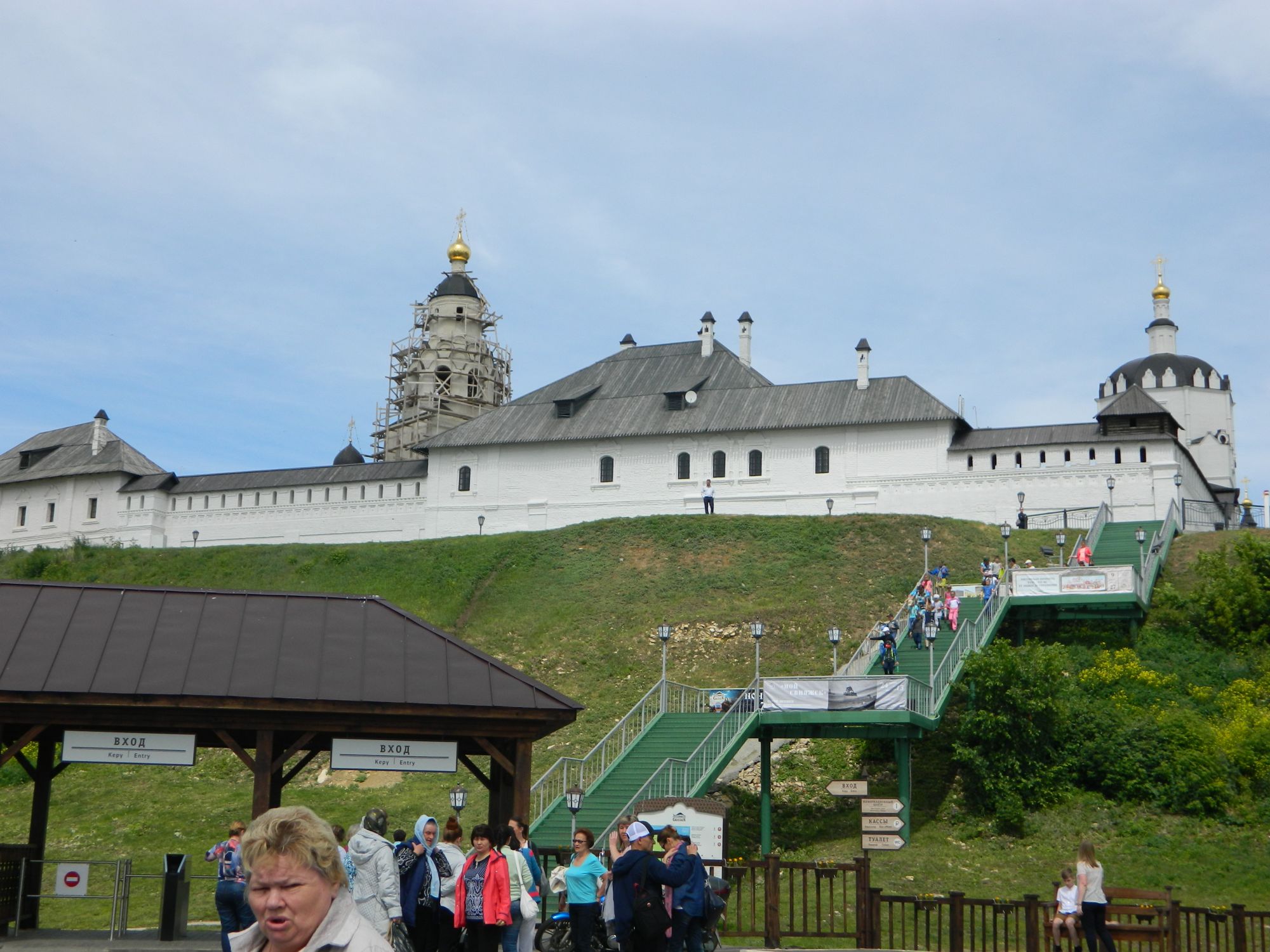 25 июня 2017 Всем воскресный привет! Пришла рассказать о своих новостях! Подросла моя кудрявая сирень от" Чудесной иглы" Было Стало Покажу процесс одной небольшой работы. Было у меня как то пару лет назад кофейное настроение( хотела пристроить остаток канвы, вот и вышила). Сюжет взят из журнала Вышиваю крестиком. нитки гамма, канва аида 14. Оформила в старые ненужные пяльца и получилось вот такое панно. Вязать крючком я не умею, на все что меня хватило, так это обтянуть их основу. Завершить работу помогла знакомая. С вышивкой у нее как раз дружбы нет, за то крючком управляется на раз два. Так что у нас своего рода образовался маленький тандем: я вышиваю, она оформляет. Субботний день провела в поездке. Удалось побывать как сейчас принято говорить в туре одного дня по святым местам. Ездила в государственный историко- архитектурный и художественный музей- заповедник" Остров- град Свияжск". Уникальный остров- град с многочисленными памятниками древнерусской архитектуры, православной культуры и истории. На государственной охране состоит 37 объектов культурного наследия, из них 19- федерального значения, 18- регионального( республиканского). Этот город славен своей историей, духом православной культуры, красотой природного и градостроительного ландшафта. В сопровождении профессионального экскурсовода посетили музей истории Свияжска, множество храмов и соборов хранящих на своих стенах древние фрески, окунулись в чарующую атмосферу уездного городка с удивительной историей, легендами, персонажами и красивейшими пейзажами. Фотографий очень много покажу лишь малую часть. Это фото из интернета, чтоб показать сам остров. Выехали мы рано утром, шел дождь, я даже расстроилась, думала придется по лужам ходить, но всё очень удачно сложилось. Ни капли дождя, небо голубое без единой тучки, в общем с погодой очень повезло. Пока ехали любовалась облаками, такие воздушные и так низко были, казалось вот рукой можно достать. По приезду нас встречала лестница возведенная только в 2009 году ( говорят ее построили буквально за сутки до приезда Путина). Храмов очень много: Успенский мужской монастырь, Никольская трапезная церковь с колокольней, Троицкая церковь, Сергиевская церковь и т.д Писать про каждый не буду, просто полюбуйтесь красотой. Это Собор " Богоматери Всех скорбящих Радость" Это церковь Константина и Елены с колокольней единственная сохранившаяся церковь Свияжска. В ней крестят, венчают и отправляют в последний путь. Да, и на территории острова не хоронят, а тела усопших родственников переправляют по воде на другой берег. На территории множество разных объектов: Речной вокзал, школа, один дет сад ( детишек всего 11 человек). школа. усадьба купца Ф.Т.Каменева. здание пожарного обзора Храмы на восстановлении. В свободное время гуляли по набережной, любовались красивыми видами, посетили конный двор, желающие могли покататься на карете или мини автобусе. Всем желающим можно было попробовать пострелять из лука, изготовить монету, стать свидетелем средневековых боёв. А эта красавица нам готовила вкуснейшие оладьи с яблочным повидлом! Очень вкусные! Нам было представлено множество изделий ручной работы: предметы из кожы, куклы и обереги, фигурки из мраморной крошки, гончарное производство, очень популярный Свияжский хлеб, вкуснючий, ушел просто за считанн