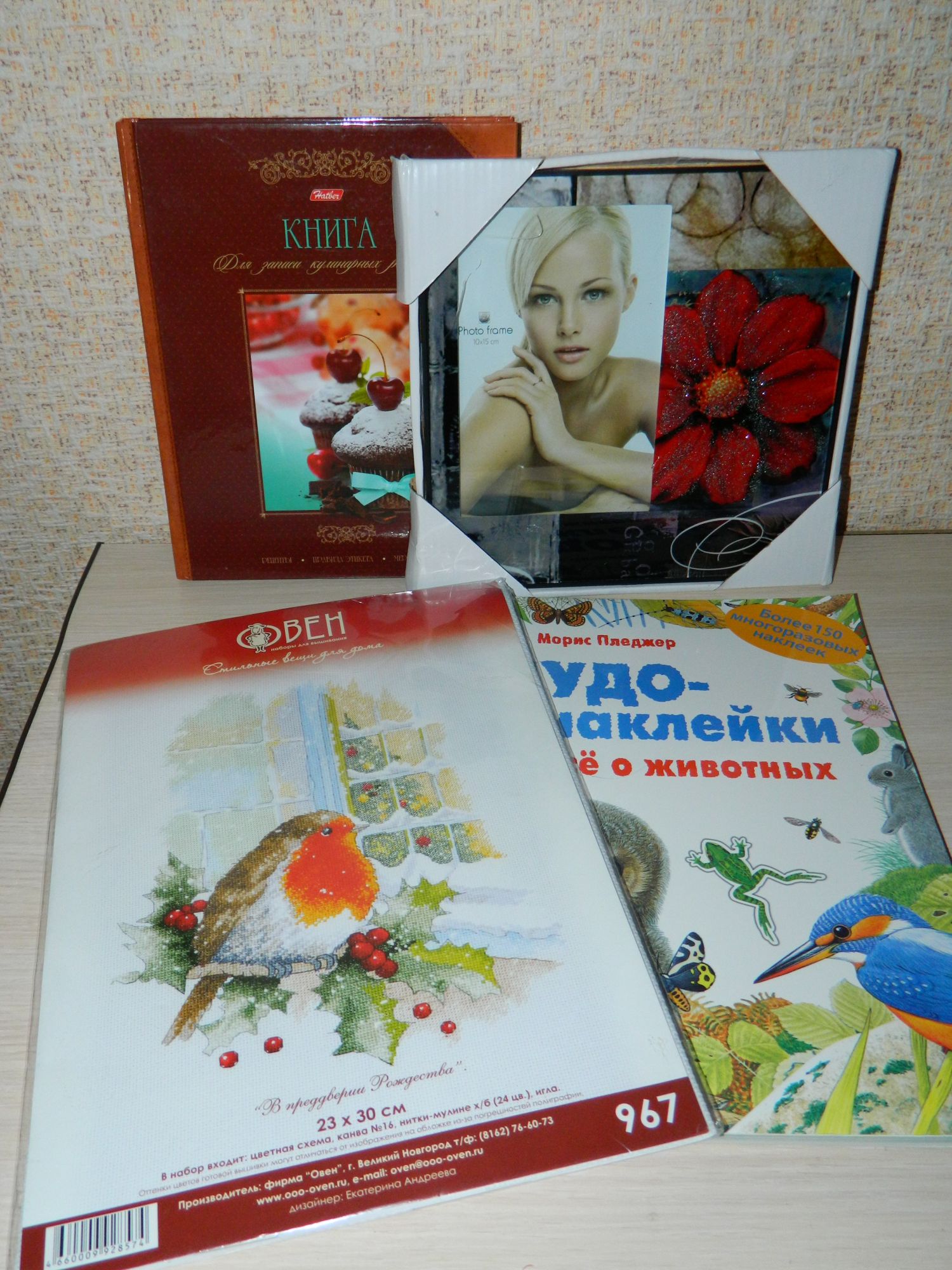 7 августа 2017 Всем приветик! Ну как обещала покажу свои вышивальные новости! В поездку с собой брала свой Карлов мост от Риолис, как уже говорила хотела пропитать его энергией путешествия! Я конечно наивная думала будет время для любимого хобби, но меня хватило только на три десятка крестиков! было стало Еще покажу вам несколько миниатюр. Но они к сожалению пока не оформлены и не имеют благородного вида, виной тому катастрофическая нехватка времени на покупку и подборку материалов. Всех планирую оформить в прикладные вещи, есть интересные задумки, так что большая просьба к модераторам гаечки пожалуйста по ним пока не зеленить! И так первый процесс это простенькие маргаритки. Схема давно была скачена и припасена в закромах и вот наконец то меня осенило, что из этого можно сделать, но пока держу интригу! Канва на самом деле цвета темного кофе с молоком( но вот фото не передает истинный её оттенок), вроде аида 14, ниточки дмс. Следующий процесс это мои дамочки Леди- мороженое. Это набор китайской фирмы Coda. Вышивала по скаченным схемам из интернета, нитки дмс и гамма, канва Аида 14. Прошу не пугаться перед просмотром начальных фоток процесса, это что из разряда аватара, но в целом вроде ничего. Вообще должна сказать что как раз тут бэк творит чудеса! Из бесформенных и безликих страшилок эти" милахи" в конце концов превращаются но конечно не в леди, но хоть обретают божеский вид. А вообще их мне было очень интересно вышивать, от процесса получила удовольствие. В идеале их пять, но вышила пока тех, которые особенно приглянулись. Будут ли остальные две пока под вопросом. Вот фото самого набора. Первая дама. Размышляла над тем делать ли вокруг обводку, решила пусть будет. Вторая дама. Третья дама. Обводку специально не стала делать, хотелось разнообразия. Третьего числа ко мне пришла конфетка от Наташи ( Ладомиры). Посылка очень порадовала и тут не обошлось без совпадений. Во первых особо радостно получилось, что в этот день у сынишки был первый юбилей 5 лет и ему досталась книжка с рассказами о животных с наклейками. Дочка тут же забрала себе рамку. Но а мне прилетел мой снегирёк, люблю зимние сюжеты! Как то пару месяцев назад покупала для подруги в подарок кулинарную книгу, красочная, с рецептами, на обложке вишенки, ещё пожалела, что второй такой не было, хотела себе купить. Так вот теперь она у меня есть!!! Наташа прислала мне именно такую же! Вот такое приятное совпадение! А ещё удивило находчивость дарительницы! Была жара и вместо сладостей Наташа положила денежки! Мы решили что это будет наш начальный капитал для следующего отпуска. Наташечка, благодарим за подарочки! Ну вот вроде и все мои новости! Уже третий день на нашей почте томится конфетка от Зины (Пикусёнок). В субботу они разобрать видно не успели, а тут как назло почта наша отдыхает, так что надеемся забрать завтра. Фро-J, Tatiana Vladimirovna, ОльгаВл и 22 других сказали спасибо Поделиться сообщением Ссылка на сообщение