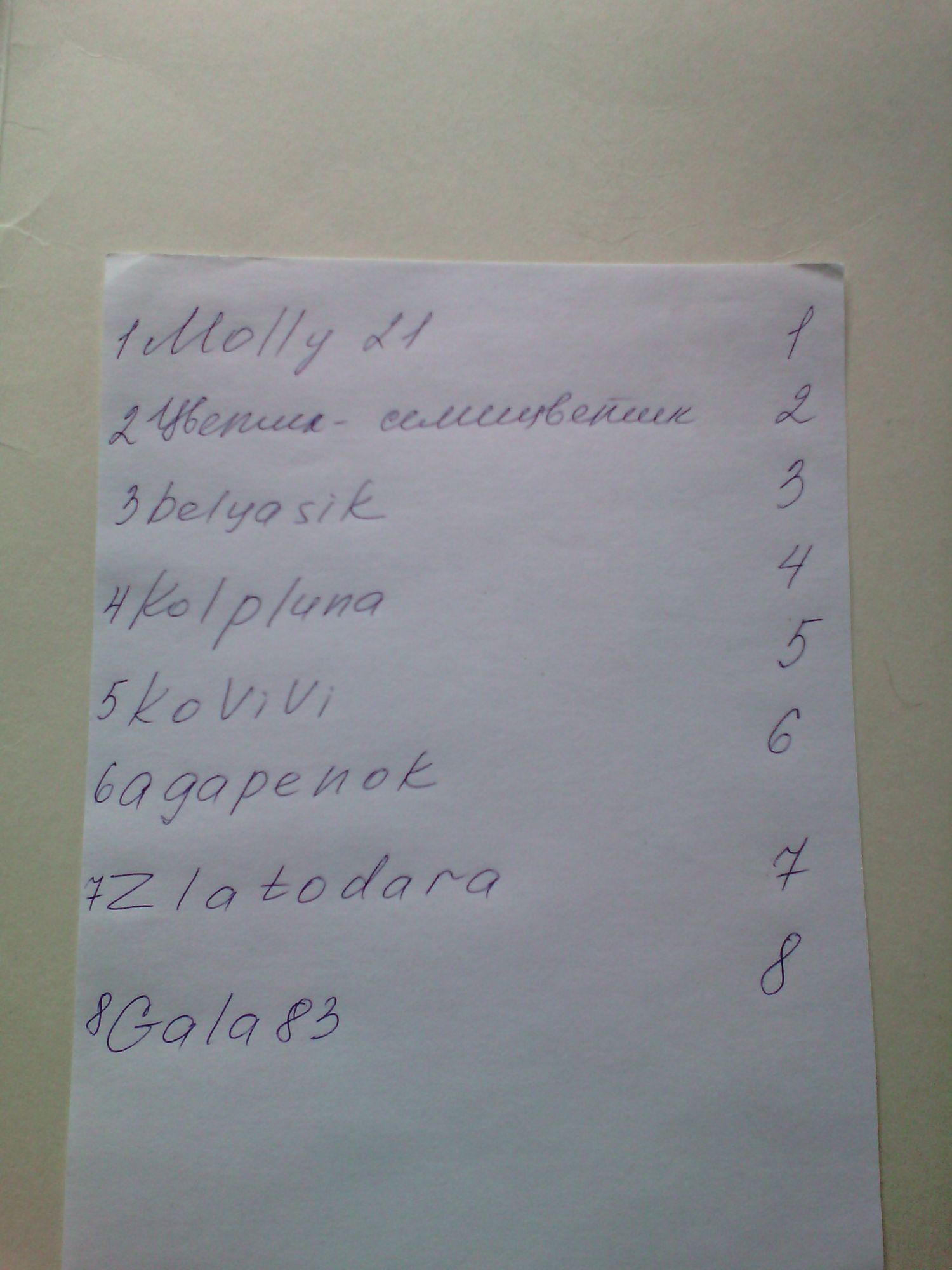 23 июля 2017 34 минуты назад, ksen40 сказал: Всем привет! Вот и наступило воскресенье! Так как я недавно выиграла конфетку, разыгранную с помощью генератора, то и свою решила разыграть так же. Та-дам!!! Ну вот и победитель! Саша, поздравляю и жду адрес! Девочки, спасибо за участие!!! Мои поздравления победительнице! спасибо за возможность попытать удачу!))) Gala83, yuss, Sky026 и 1 другой сказали спасибо Поделиться сообщением Ссылка на сообщение