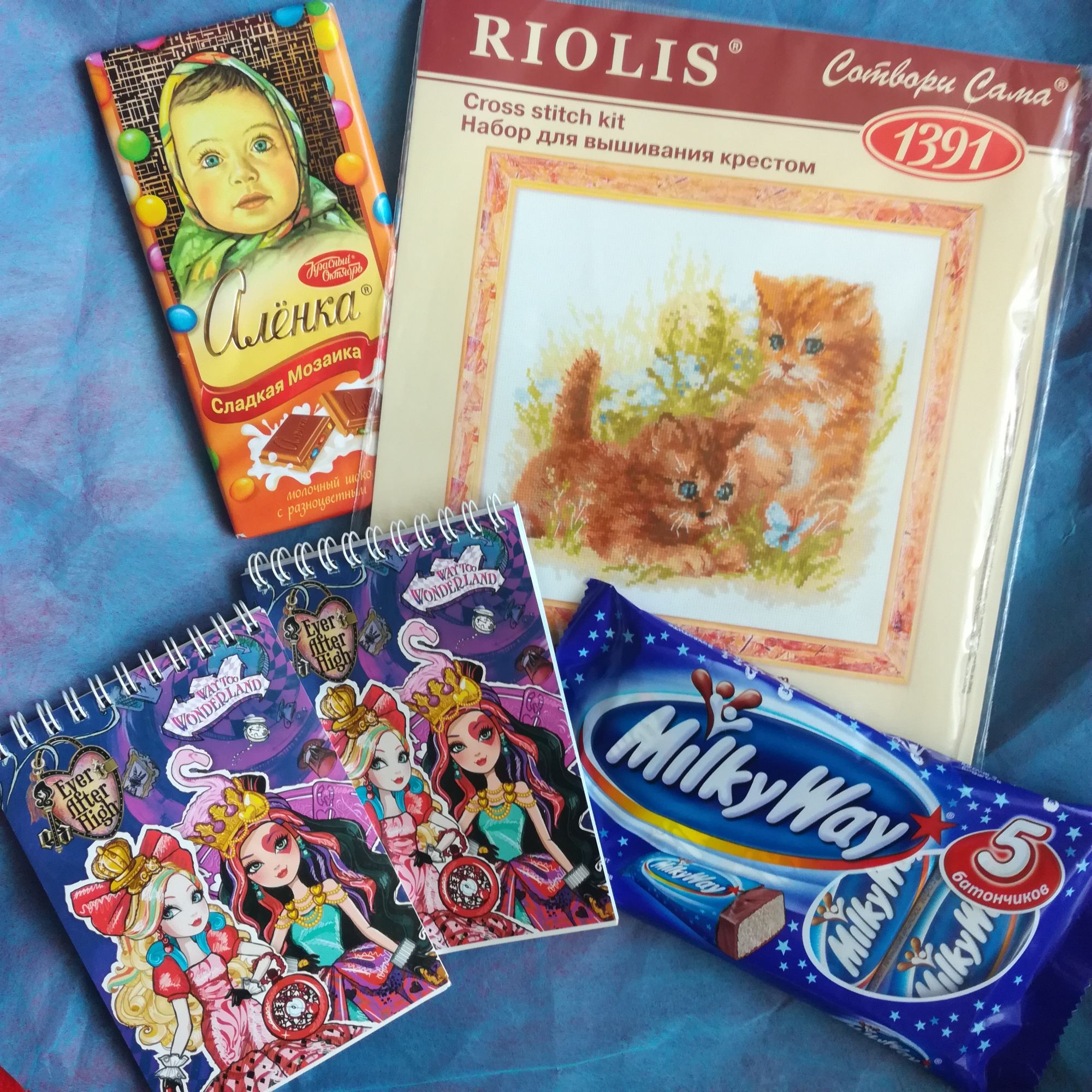 6 августа 2017 В 05.08.2017 at 12:56, KoViVi сказал: ksen40, Оксаночка,привет! а угадай,почему я тут??? праааааавильно - до меня долетела твоя конфетулька! бегом бежала до почты,не дожидаясь уведомления! В общем,переходим от слов к делу… вот какой милый запакованный сюрприз меня ожидал в почтовом пакете: это уже вызвало у меня улыбку,очень мило А распаковав - я была очень тронута!… какая ты внимательная,Оксана!)))) Мне было очень приятно,что ты уделила внимание моим доченькам,вложив для них блокнотики (каракули мы очень любис рисовать!) и их любимые вкусняшки!!!! Спасибо тебе за твою конфетку и доставленную мне и моим девчулькам радость!!!!!! это прям получилась полностью конфеточка для дочек: и котики планируются стать подушечкой в детскую, и все приятности им уже презентованы!красотаааааа Да,Вика, повезло тебе! Оксана такая молодец и тебе подарила и за деток не забыла. KoViVi, ОльгаТольна, Графиня и 1 другой сказали спасибо Поделиться сообщением Ссылка на сообщение