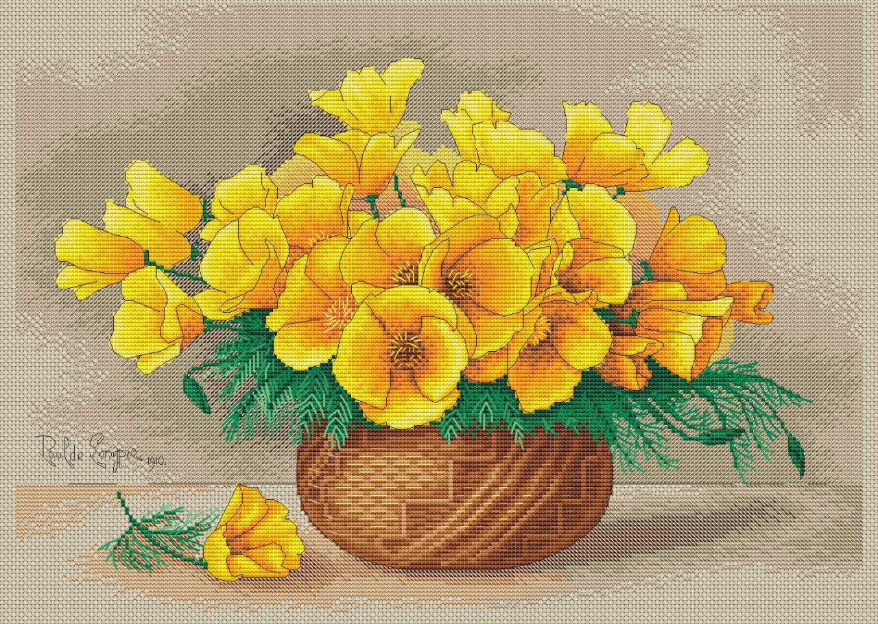 10 октября 2015 "Маки в индийской корзине" по рисунку Поля де Лонгпре. Размер 217х157 крестиков. 22 чистых цвета и бленды из них. Крест, полукрест, цветной бэк в разное сложение нитей, пара фр.узелков. Поделиться сообщением Ссылка на сообщение