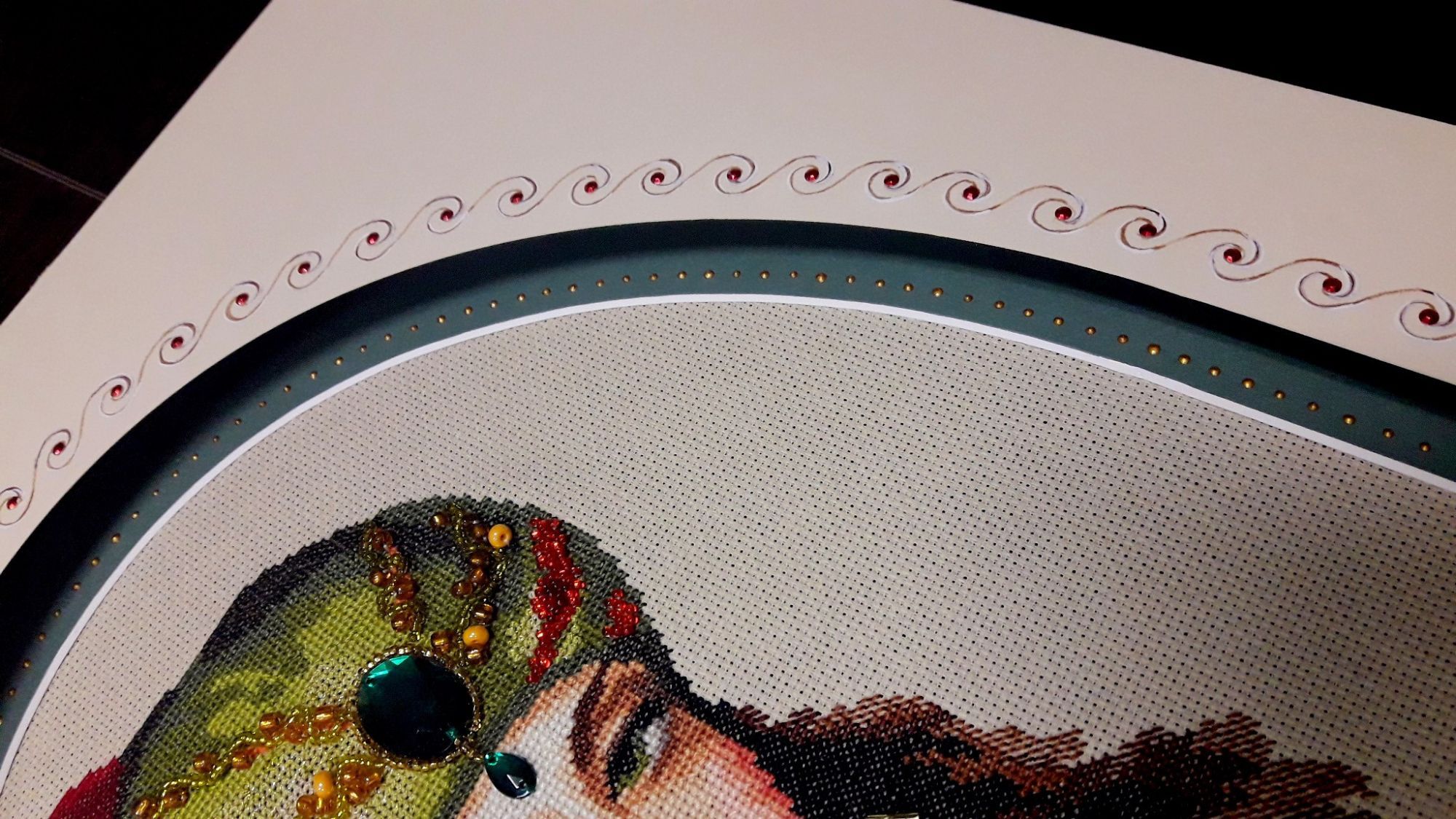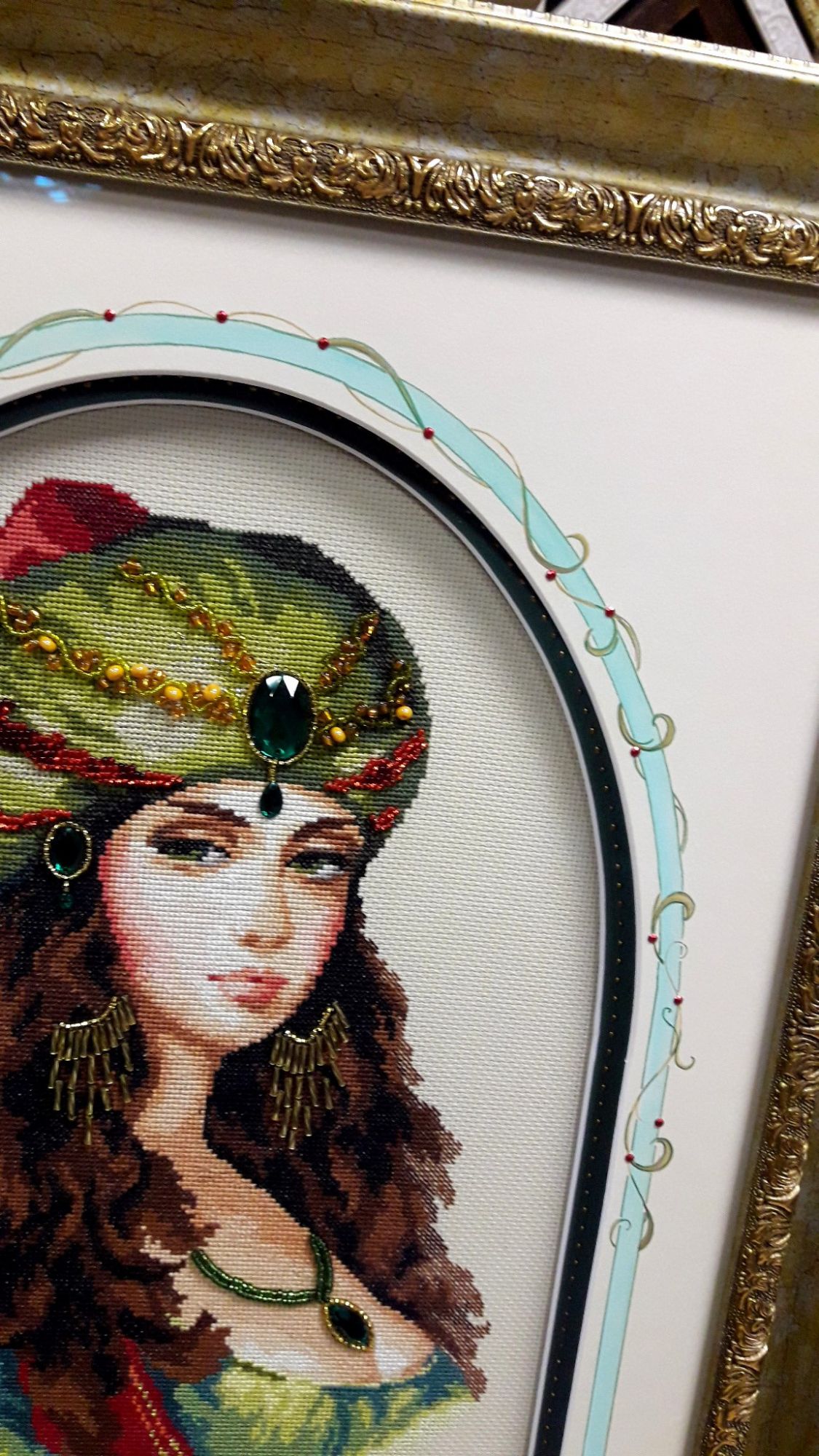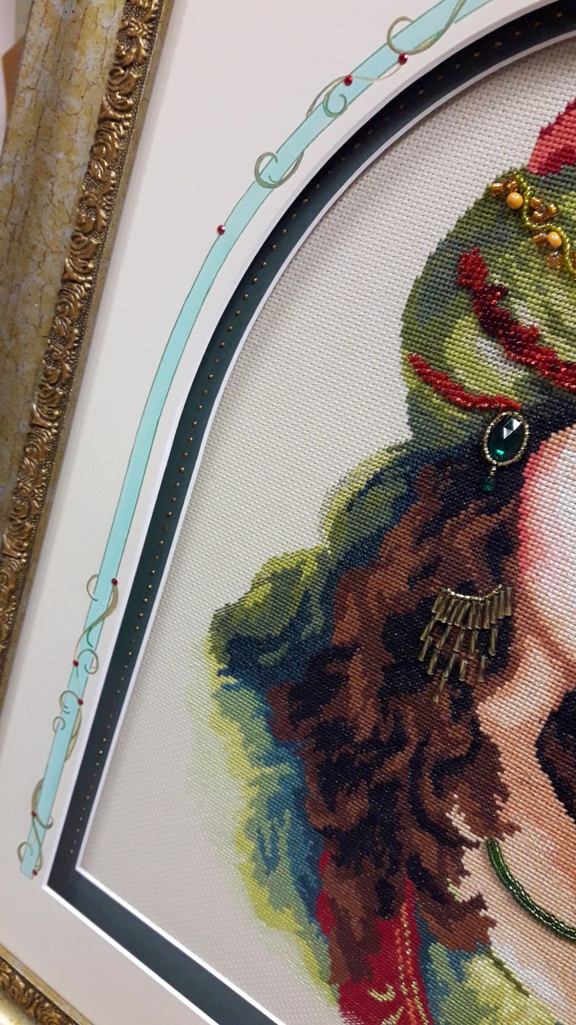 14 апреля 2017 1 час назад, FEDORMaзиус сказал: Девочки, добрый вечер! Вот прислали мне фото из багетки. Как-то я растерялась немного... В первоначальном варианте на паспарту были бардовые завитки, а теперь роспись голубого цвета, мне кажется, что не очень подходит к вышивке... Наташа, мне кажется, добавили неба, сделали нежнее эту суровую красавицу (извини, если что). А с бордовыми она конечно, была бы ещё более восточной... В общем, на мой вкус очень даже ничего. FEDORMaзиус сказал(а) спасибо Поделиться сообщением Ссылка на сообщение