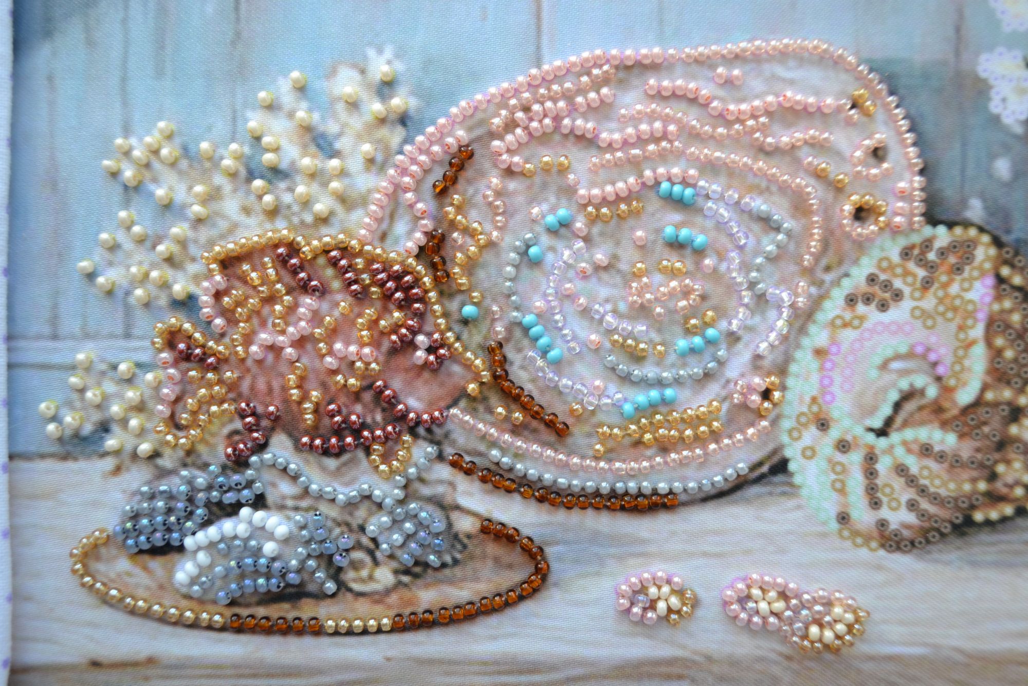 15 июня 2017 В 07.06.2017 at 16:54, Molly21 сказал: Всем привет! У меня какой-то раздрай в душе приключился... В хорошем смысле Я так рада, что снова могу чувствовать, даже не представляете! *всё очень сложно, но я рада, что это со мной происходит* И настроение не очень вышивальное почему-то. Сосредоточиться не получается Тем не менее, есть что показать. Cottage Window / Heritage На днях ехала мимо белых полей, прям как в окошке! И это были ромашки! Вышивала я ночами под «Дверь в лето». Восхитительно! В центре этого участка безумная шахматка, она очень бодрит, конечно. Welcome to our World / Lanarte Последние фрагменты вышивались так: лежит процесс на столе, даже подходить к нему ломает, но стоит сесть и начать вышивать, как через 10 крестиков затягивает, и уже не так всё плохо, несмотря даже на 30 оттенков голубого в ста клеточках. Три месяца мариновался у меня этот процесс, очень от него устала и была счастлива, что он наконец завершился. Итого: Уже отвезла в багетку. Оформляться эта метрика отказывалась напрочь. Ничего не подходило. Остановились на варианте, который бесил не так, как все остальные Морской этюд / Матрёнин Посад Тоже затягивает, но шьётся по-прежнему очень медленно. Готова большая раковина, и я никак не могу понять ярко-голубой бисер в ней… Я надеюсь, не очень сильно режет глаз? Лежебока / Овен Аж два месяца назад на пике обострения размножения я не смогла себя сдержать и начала совсем незапланированного, но совершенно очаровательного котёнка, который очень напоминает мне Ватсона. И пусть уши не такие, всё равно напоминает! Сразу хочу поделиться впечатлениями о комплектации набора: канва 16 в меру жёсткая, в меру мягкая, ниточки ПНК Кирова шелковистые, ведут себя хорошо, схема цветная символьная, матовая, значки не путаются, не сливаются, просто отлично! В дизайне используется крест в одну и две нити, полукрест в одну нить и трёхцветный бэк в одно сложение. 14 цветов и 4 бленда. Начала аж 3-го апреля, вышила крестиков 500 и отложила. Надо бы продолжить, пинки приветствуются! Настолько близкие оттенки меня утомляют, если честно, поэтому процесс и встал. А котика такого очень хочется завести У нас сезон роз в разгаре. Аромат во дворе восхитительный Всем отличного настроения и любви! Маша, сколько красоты. Ты все равно молодец. У тебя все двигается потихоньку. Розы прекрасны. С завершенной метрикой тебя Хозяйка смешных зверей, Molly21 и ОльгаТольна сказали спасибо Поделиться сообщением Ссылка на сообщение