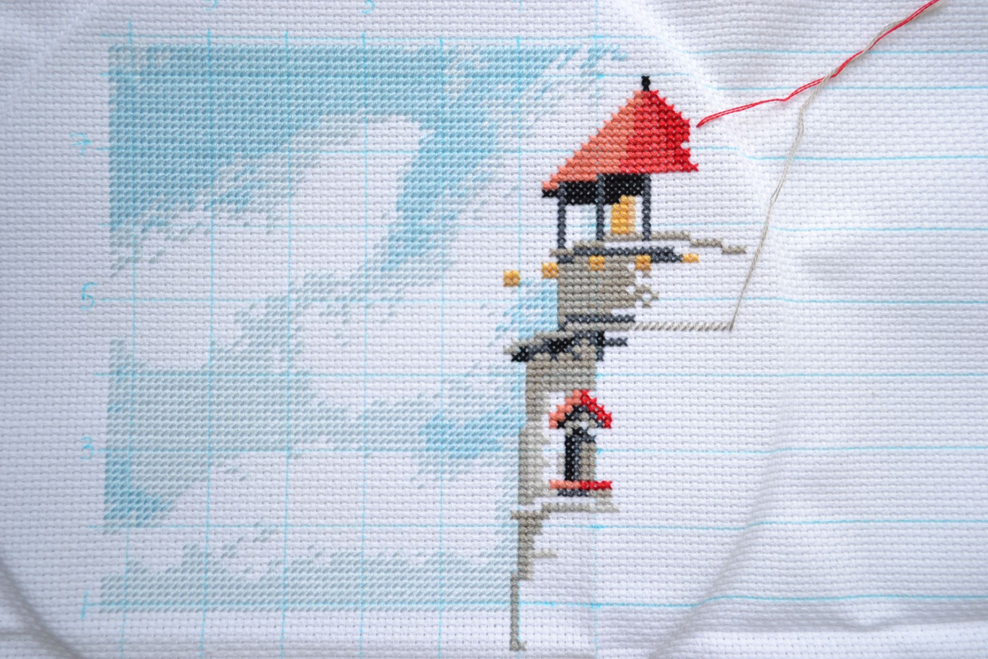 2 ноября 2017 Всем привет! Закончился любимый октябрь, жаль… Особенно учитывая то, что я половину месяца сильно проболела (и ещё продолжаю, к сожалению). Скрытый текст Как выразился мой лор - «нагуляла осложнения», хотя я вообще-то лечилась всякими способами и не виновата, что даже первый курс антибиотиков не дал эффекта. Углубляться в подробности этих двух недель ада я не буду, вспоминаю с содроганием, хотя самый пик ужаса с температурой, беготнёй по врачам, рентгенам, больницам был всего-лишь три дня назад. Сейчас пью второй курс антибиотиков, уже других, и продолжаю лечиться в общем-то тем же, чем и до этого. Жду, когда наконец полностью «отпустит»… Сделала вывод, что фронтит в сочетании с гнойным гайморитом – это те самые круги ада, не иначе. Ибо невыносимая круглосуточная головная и зубная боль, которая нафиг не снимается вообще никаким обезболивающим, - развлечение не для слабонервных. Хочется надеяться, что этим я уже откупилась за всю зиму и болеть больше не буду. В общем, девочки, берегите себя и своих близких! И о приятном… Вот вам наш котик-тыковка. Никак не могу избавиться от ощущения его схожести с Шелдоном из «Теории большого взрыва», когда тот шутит и потом ехидно улыбается… Люблю этот праздник ещё со школьных лет. Училась я в гимназии с углубленным изучением английского языка, и наши учителя очень поддерживали интерес к традициям и праздникам англоговорящих стран, так что этот день был одним из самых весёлых в учебном году. Разрешались любые сумасшедшие наряды и грим, можно было безнаказанно срываться с уроков и бежать на сбор сладостей, ещё были конкурсы, вырезанные тыквы и всё прочее. А позднее мой интерес поддерживали рассказы Брэдбери на эту тему (а их достаточно), так что ни один октябрь не обходится без хотя бы тыквы. Раньше я вырезала, сейчас некогда, поэтому я рисую И вышивальное. Тигр / Золотое Руно Продолжение Тигрика. Вышиваю и кайфую. И почему его забросила так надолго? От стола со схемой и карандашом, правда, не отойти, если морда в процессе, но синий фон даёт расслабиться. Именно он был для меня спасательным кругом в те моменты, когда было особенно плохо, надо было себя чем-то занять, а голова особо не соображала. Lighthouse Pointe / Dimensions Не устану повторять: каждый раз, возвращаясь к Димуське после перерыва, у меня возникает полное ощущение «я дома, мне хорошо и уютно». Этот процесс – не исключение. Дизайн 1998 года (№7882), мечтала я о нём как только увидела, хотя увидела я первым гобелен. До определённого времени даже не знала, что есть вариант в крестиках. Мечту осуществила моя любимая подруга (та, которая в Штатах живёт и балует меня вышивальными редкостями). Дизайн основан на работе Edie Hopkins – её картина называется Harbor Scene: Итак, мой первый «американец» в процессе. С большим удовольствием разбирала ниточки, никаких проблем не возникло: количество пасм в схожих оттенках было разным, так что голову ломать не пришлось. А там ведь по четыре зелёных, серых, три голубых… То есть можно было бы и призадуматься, но всё быстро и как по маслу. Канва приятная, не дубовая, но и не рыхлая. Я сразу постирала красные ниточки на всякий случай – они не полиняли, так что я спокойно приступила к вышивке. Левая верхняя облачная часть уже готова, немного тронула сам маяк и переставляю пяльцы ниже. Поскольку я проболела самые классные «золотые» деньки, м