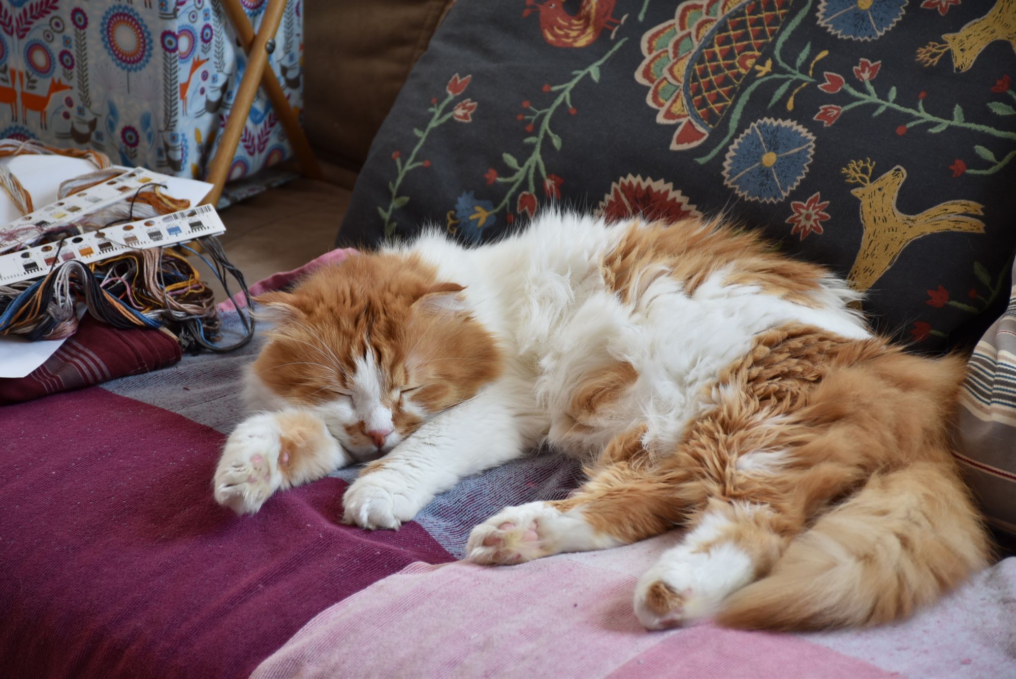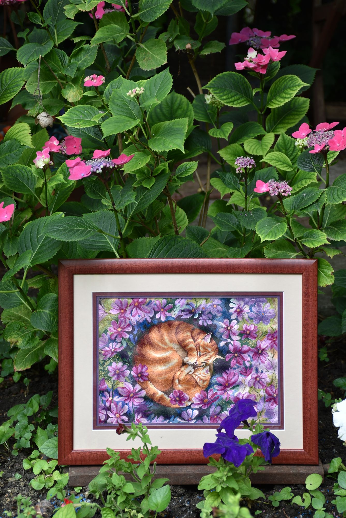 26 июня 2020 Вторая часть отчёта. Сначала хвостатые-усатые. Комнатная тусовка Коты спасаются от Миюши на стульях (выражение моськи Шерлока говорит о многом ) У Мии началась подростковая линька, и вообще она сейчас угловатая, вытягивается и уже не такая мимими-пупсик, как раньше. обожаю эту шкоду Уши никак не хотят вставать! Ватсон как обычно в стиле "попу поднял - место потерял", всё время дрыхнет там, где я сижу! Они все разом так линяют, что это просто катастрофа Пылесосить приходится почти каждый день... Часть садовая Бешеный урожай абрикосов. Мы уже раздаём их всем, варенье варится 24/7 вторую неделю. На подходе более поздний сорт: он такой вкусный, плакаю, что мне нельзя все эти фрукты Вишни много, но она очень высоко и совсем кислая, мы не собираем... Виноград тоже уродился. Цветёт вечнозелёная магнолия с совершенно невероятным ароматом А листопадная, которая розовая и цветёт в марте, решила тоже покрасоваться Гортензии и бугенвиллея Ну и теперь очень кратко вышивальное. Всего один процесс... Кот Макс / Dimensions Очень стараюсь успеть к концу квартала (последний пункт в планировании), и вроде должно получиться. Фон, конечно, классный, но полукрест в 4-5 нитей на деревянной канве... просто убиться. Получается офигенно – Дим есть Дим (в гаечку) На этом всё. Отличного настроения! Lenara, Мультифрукт, Isinka и 40 других сказали спасибо Поделиться сообщением Ссылка на сообщение