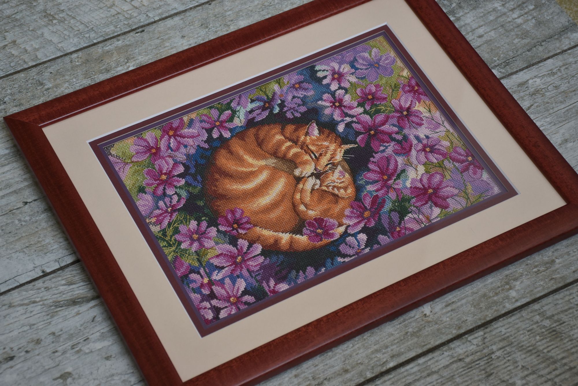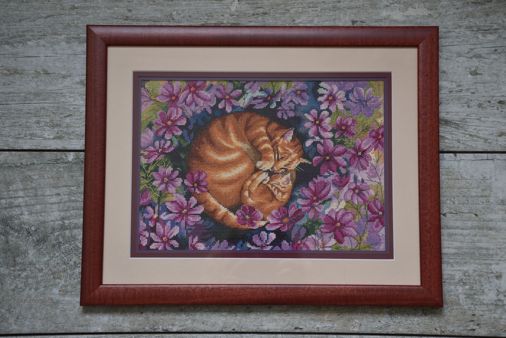 1 июля 2020 И вышивальная часть. Пополняшки. Приросла коллекция брошек. От ослика просто пищу, мимо маяка пройти не могла, а норвежский домик нравится очень давно. Оформление. Рыжие панновские котики в космеях. Наконец пофотографировала. Пока ещё места на стене им не придумала, стоят на тумбе в спальне. Изначально придумали прямой срез двух нижних паспарту, чтобы картинка имела глубину, но первый раз сделали неправильно, и белый срез в 45 градусов конкретно разбивал все части работы. Переделали - и совсем другой вид. Оформление вышло дорогим из-за деревянного итальянского багета, но оно того стоит, на мой взгляд. Мерили с отечественным, у которого чуть другая форма и рыжее цвет, но получалось не так благородно. На фото стекло бликует, к сожалению, и цвета вышивки не такие яркие, как в жизни. Процессы. Амели, кстати, вышила Алисиного милейшего енотика, но заленилась делать бэк, потому что «мама, ну там же эти «в середину клеточки», я не хочу, ааа…». Так что делать бэк буду я, наверное, когда мы уже вернёмся. Кот Макс / Dimensions Первый портрэт готов. Славный котейка получился. Теперь настраиваюсь на второй. (в гаечку) Ловец снов / Волшебная страна Ох, к бисеру тянет страшно, но как же мне нереально тяжело пришивать бисер леской. Готово самое маленькое пёрышко и немного надкусано второе, самое большое. (в гаечку) Две синицы / Марья Искусница Переставляю пяльцы, показываю, что на данный момент. Цветочки идут неплохо, если бы не столько белого. Отрываюсь на фрагментах в одну ниточку Есть надежда закончить в следующем квартале. (в гаечку) На этом сегодня всё. До встречи через неделю! Всем отличнейшего настроения! ЛАДОМИРА, Кисюня, Ксен40 и 36 других сказали спасибо Поделиться сообщением Ссылка на сообщение