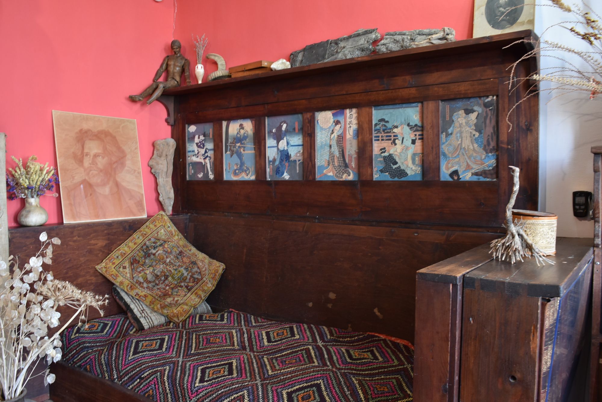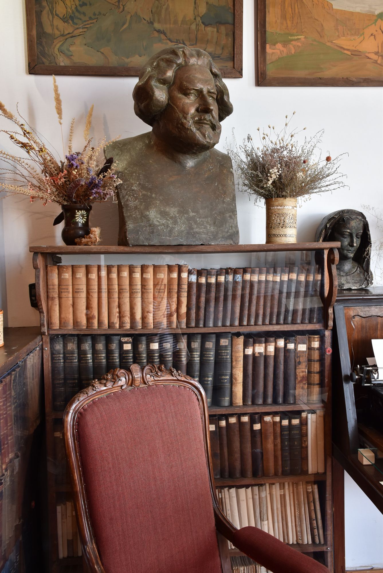 19 июня 2021 Пятница, 11 июня. Коктебель, дом-музей Максимилиана Волошина. Я уже давненько хотела побывать в Коктебеле, поэтому он изначально был запланирован к посещению в этот раз. Ну и обязательным пунктом был дом-музей Волошина. Я в целом довольно прохладно отношусь к поэзии, но именно в "Серебряном веке" есть у меня любимчики, да и сам дух литературы этого периода мне интересен. Я не буду тут пересказывать биографию Волошина, если вдруг интересно, есть неплохая статья о нём здесь http://koktebel.net/content.php?content.100 Мы взяли экскурсию, длилась она час. Было довольно интересно, мне кажется , если бы не моя дурацкая особенность - я всё время отвлекаюсь на свои мысли, и бОльшая часть информации проходит мимо меня К тому же я визуал, в одно ухо влетает, в другое вылетает... Поэтому мне легче почитать об увиденном потом. Экспозиция интересная, особенно мне понравилась художественная её часть Дальше мы поднялись на второй этаж в мастерскую Волошина. Виды оттуда совершенно чудесные! И профиль поэта в очертаниях горы особенно хорошо виден. Он действительно ооочень похож! И сама мастерская: И бонус при выходе Дикая белочка, Каори, Isinka и 31 других сказали спасибо Поделиться сообщением Ссылка на сообщение