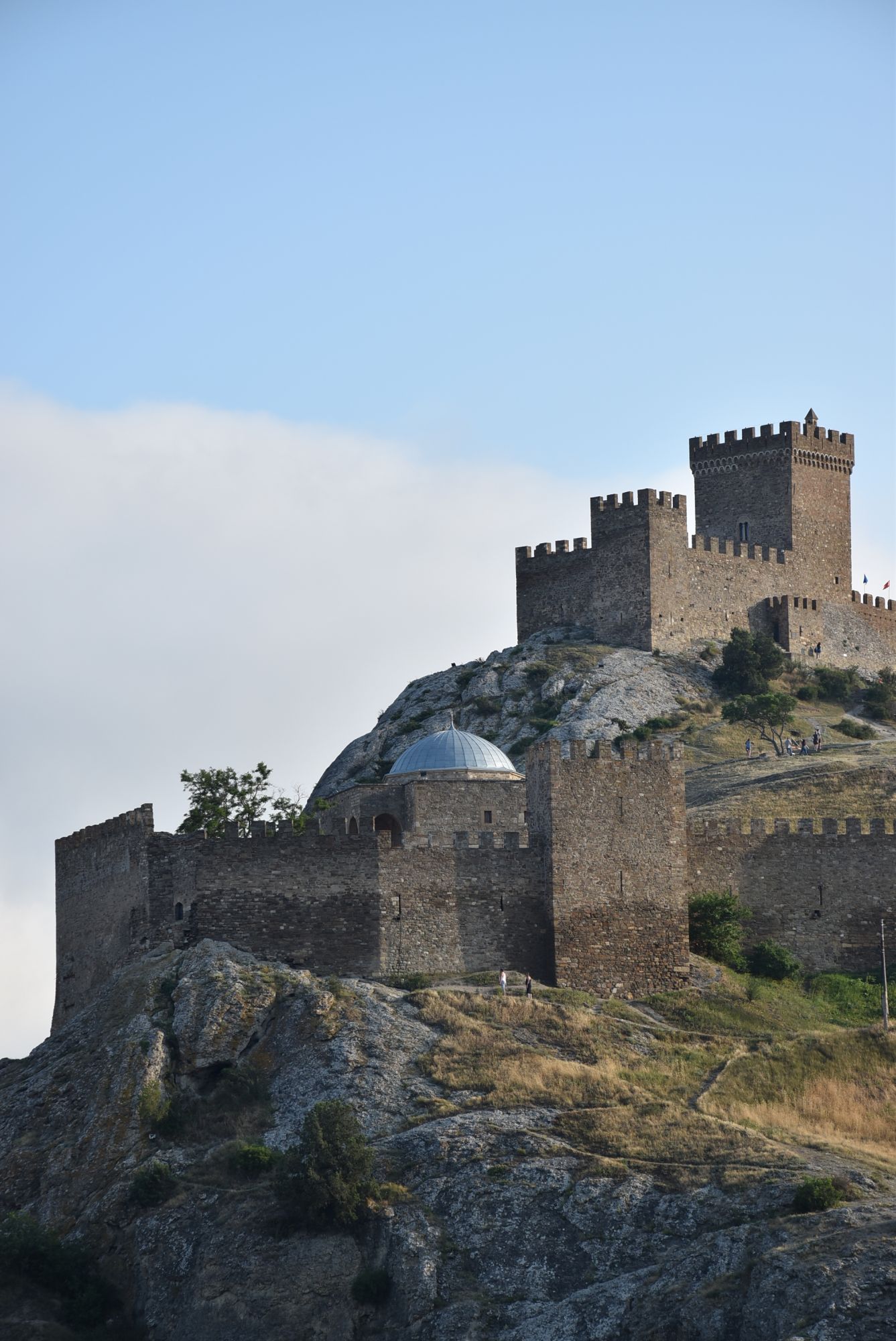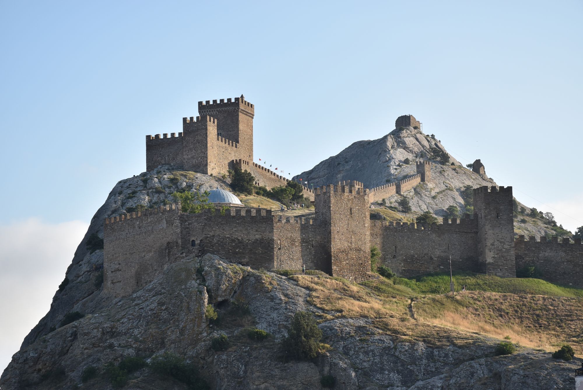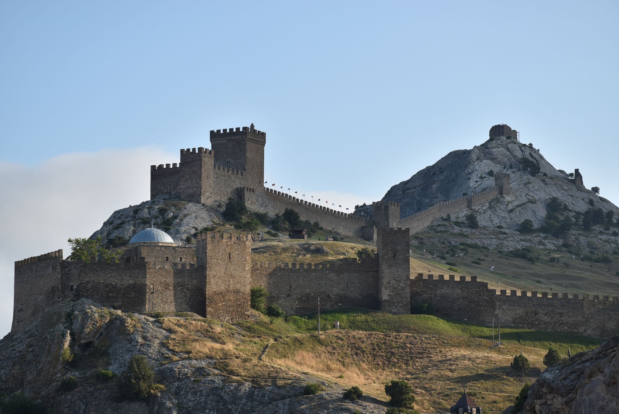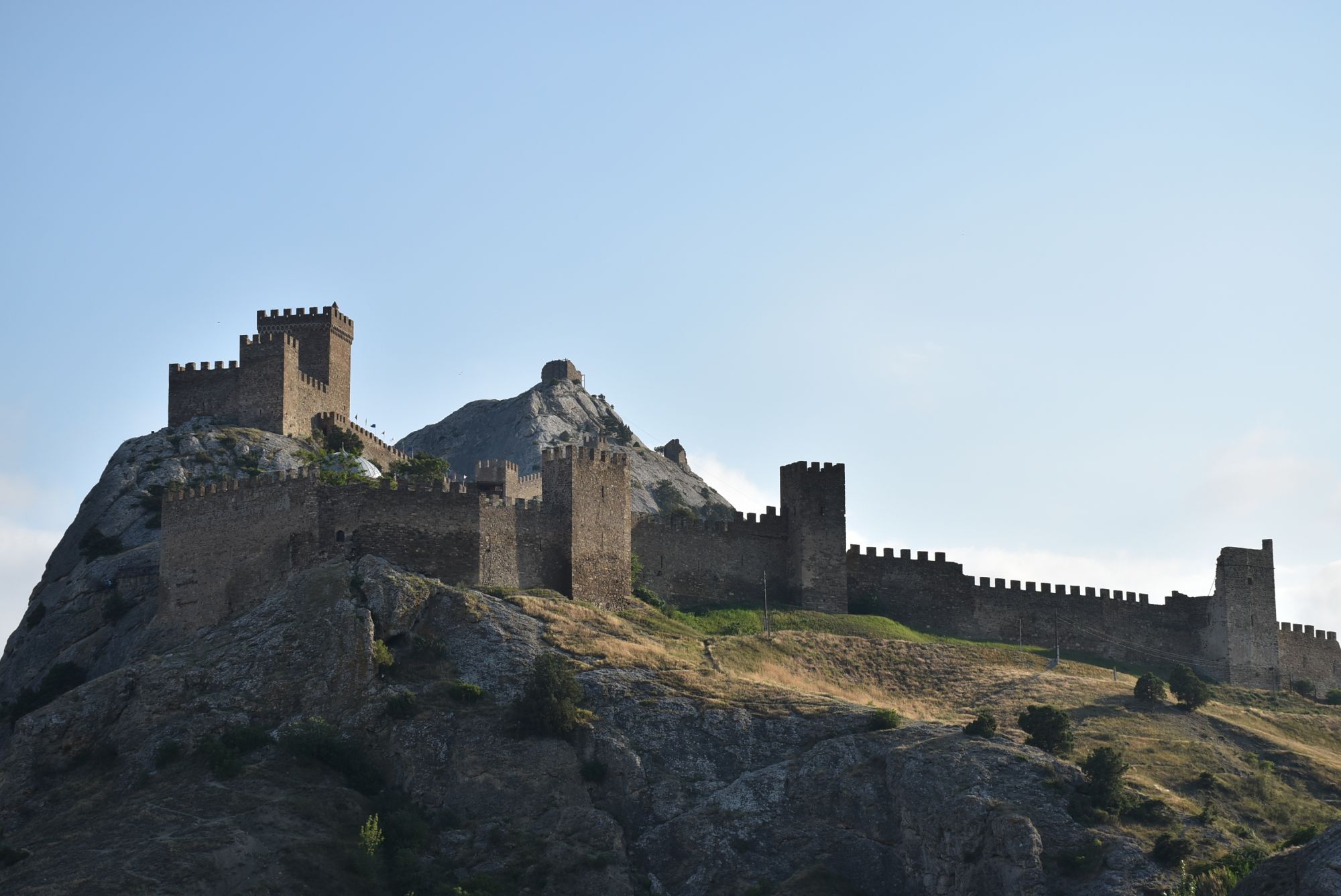 27 июня 2021 Суббота, 12 июня. Генуэзская крепость. Поехали туда с утра пораньше, и народа уже было более чем достаточно... На сегодняшний день нельзя с уверенностью ответить на вопрос о возрасте Генуэзской крепости в Судаке, так как существуют различные версии о первоначальной дате строительства оборонительных построек на этом месте. Существует легенда, что крепость построили аланы (ираноязычные кочевые племена) в 212 году. Высота крепости над уровнем моря - около 160 м. Посмотреть можно следующие постройки: Дозорная башня, Консульский замок, участки крепостных стен, хранилище для воды и еще несколько построек. Все объекты крепости сопровождаются информационными табличками. (конь метра три высотой, очень симпатишный ) Площадь заповедника «Судакская крепость» составляет около 30 гектаров. Музей, посвященный историко-архитектурному наследию крепости, открыт в храме с аркадой - недействующей мечети Падишах-Джами, а в разное время он выполнял роль католического храма, мечети, часовни и армяно-католического храма. Тут я с тихим криком "Цацки!!!" бросилась к витрине Люблю я всякое такое Основные сохранившиеся сооружения относятся ко второй половине XIV века. Это постройки выходцев из Северной Италии - генуэзцев. Почитать подробнее об истории и каждом объекте можно на официальном сайте Судакской крепости: https://sudak-museum.com/eksponaty Виды с крепости очень красивые! (и немножко сдувает ) (напомнило Китайскую стену) Фортификационный комплекс крепости состоит из внешней (14 башен, Главные ворота) и внутренней (цитадель с 4 башнями, замком и Дозорной башней) линий обороны. Очень нам понравилась эта крепость! Я бы с удовольствием ещё раз когда-нибудь побродила там... оленек, росомашка, Ксен40 и 29 других сказали спасибо Поделиться сообщением Ссылка на сообщение