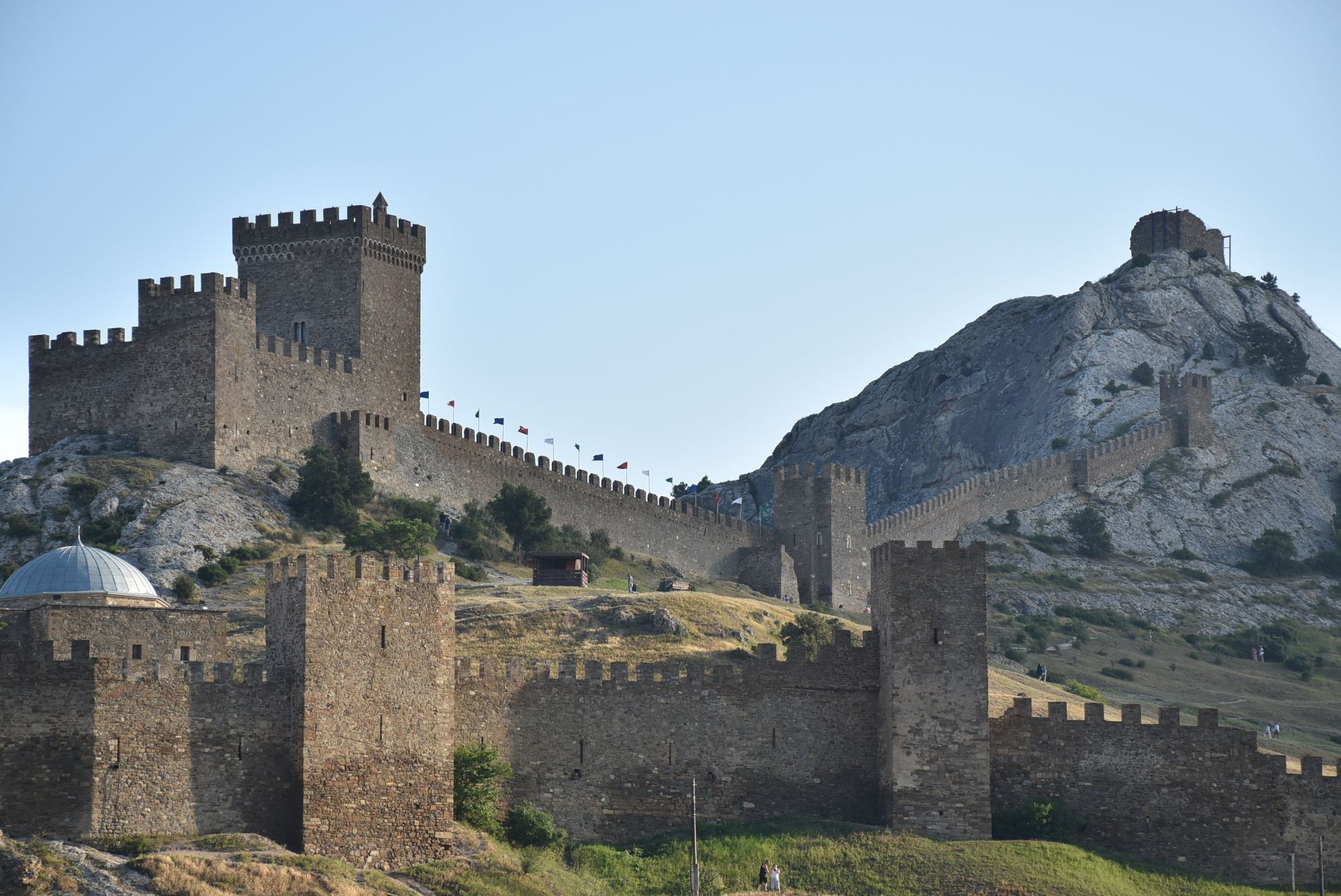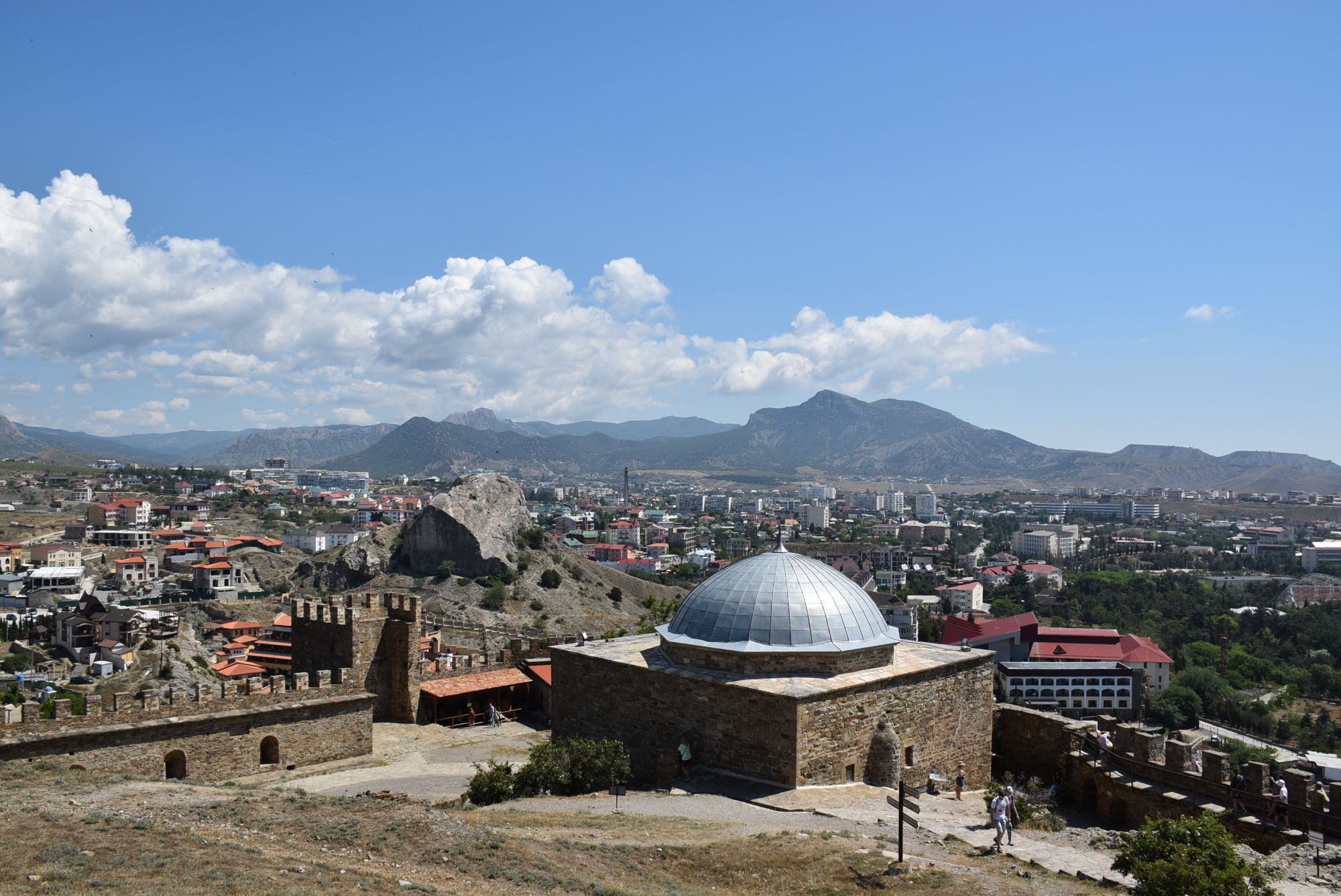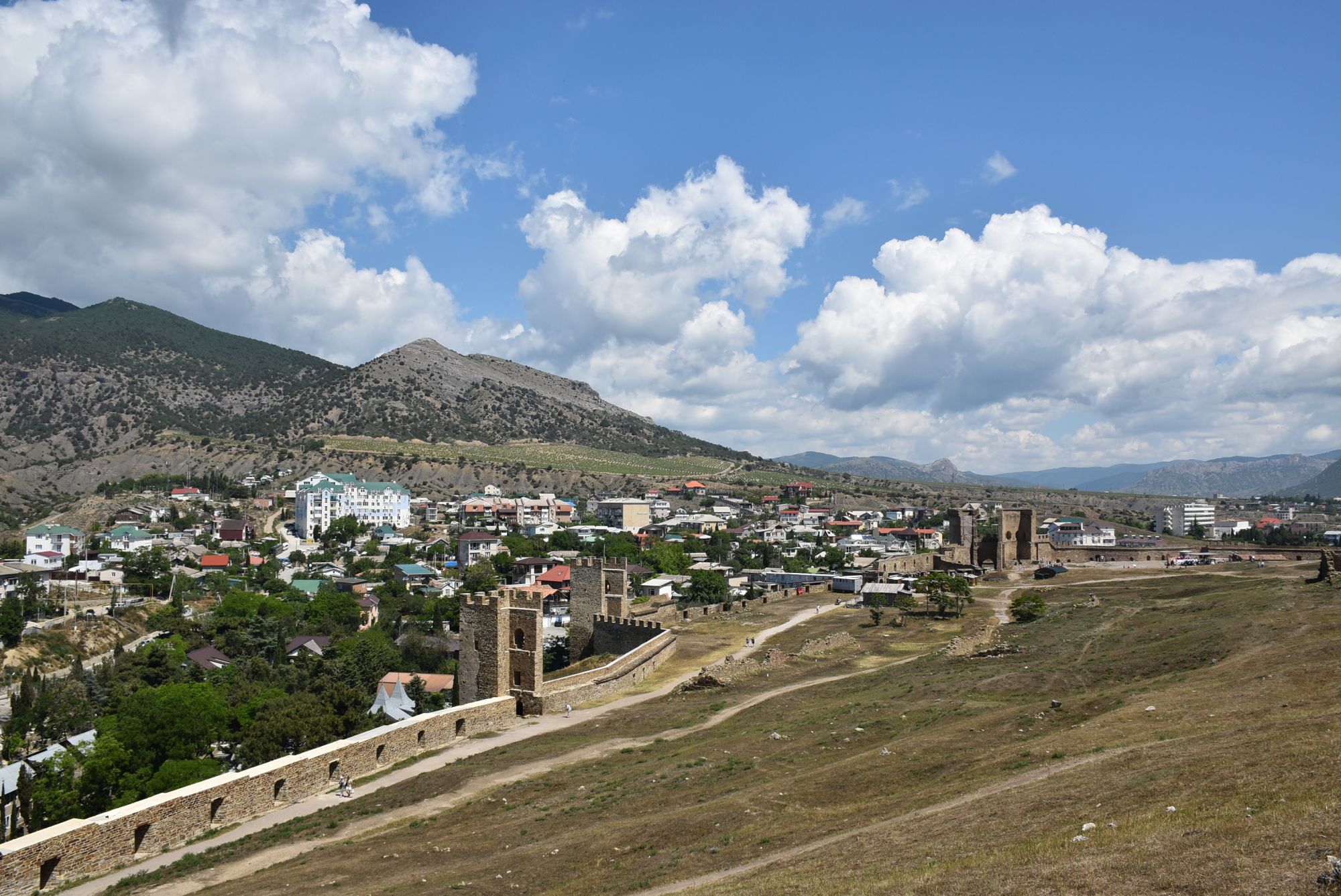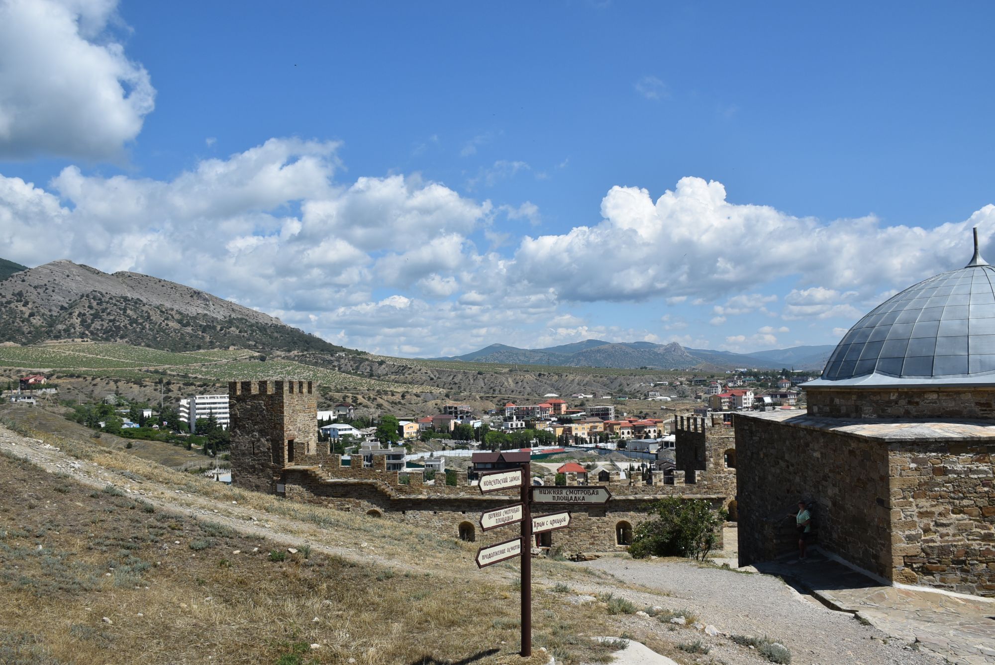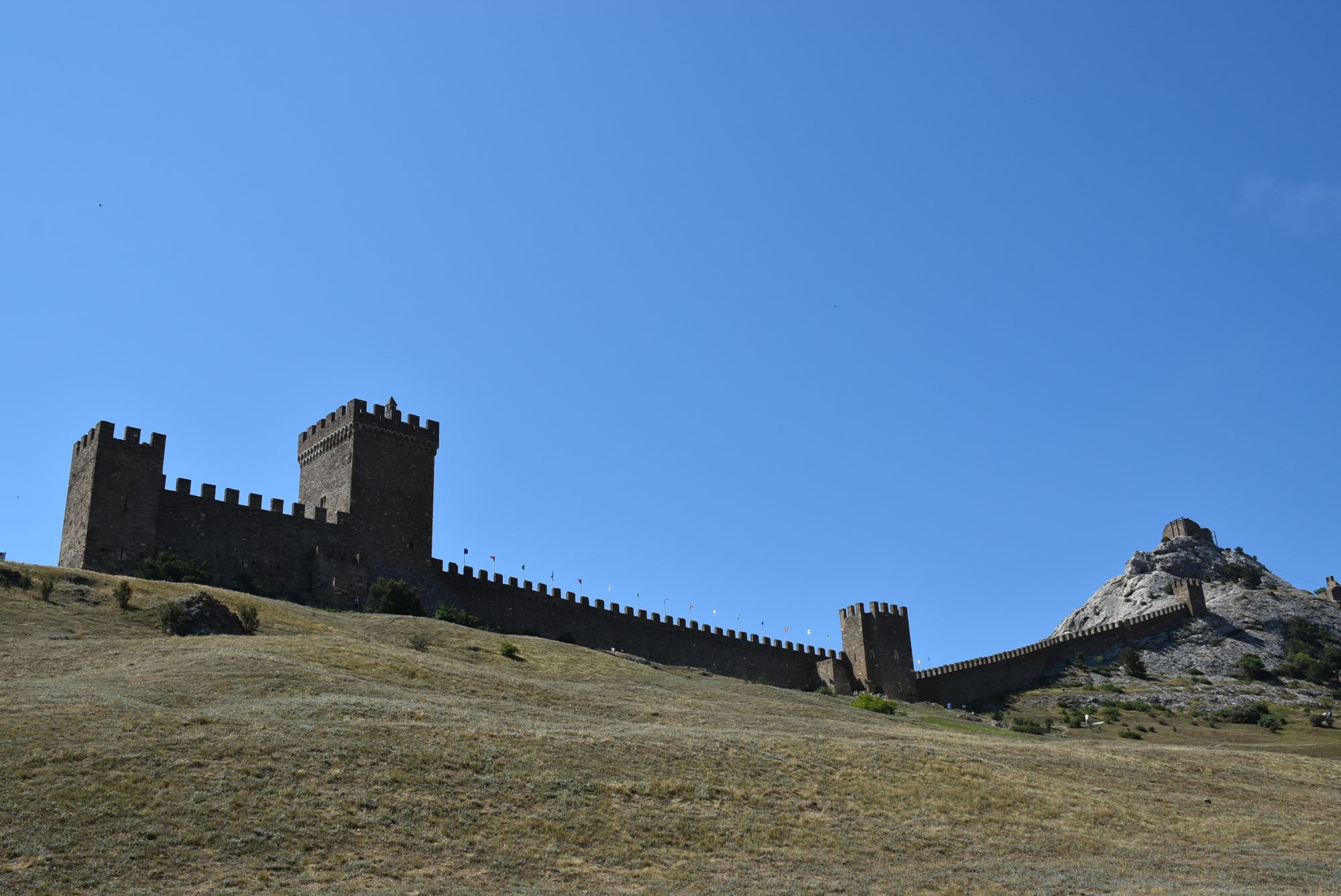 27 июня 2021 Суббота, 12 июня. Генуэзская крепость. Поехали туда с утра пораньше, и народа уже было более чем достаточно... На сегодняшний день нельзя с уверенностью ответить на вопрос о возрасте Генуэзской крепости в Судаке, так как существуют различные версии о первоначальной дате строительства оборонительных построек на этом месте. Существует легенда, что крепость построили аланы (ираноязычные кочевые племена) в 212 году. Высота крепости над уровнем моря - около 160 м. Посмотреть можно следующие постройки: Дозорная башня, Консульский замок, участки крепостных стен, хранилище для воды и еще несколько построек. Все объекты крепости сопровождаются информационными табличками. (конь метра три высотой, очень симпатишный ) Площадь заповедника «Судакская крепость» составляет около 30 гектаров. Музей, посвященный историко-архитектурному наследию крепости, открыт в храме с аркадой - недействующей мечети Падишах-Джами, а в разное время он выполнял роль католического храма, мечети, часовни и армяно-католического храма. Тут я с тихим криком "Цацки!!!" бросилась к витрине Люблю я всякое такое Основные сохранившиеся сооружения относятся ко второй половине XIV века. Это постройки выходцев из Северной Италии - генуэзцев. Почитать подробнее об истории и каждом объекте можно на официальном сайте Судакской крепости: https://sudak-museum.com/eksponaty Виды с крепости очень красивые! (и немножко сдувает ) (напомнило Китайскую стену) Фортификационный комплекс крепости состоит из внешней (14 башен, Главные ворота) и внутренней (цитадель с 4 башнями, замком и Дозорной башней) линий обороны. Очень нам понравилась эта крепость! Я бы с удовольствием ещё раз когда-нибудь побродила там... оленек, росомашка, Ксен40 и 29 других сказали спасибо Поделиться сообщением Ссылка на сообщение