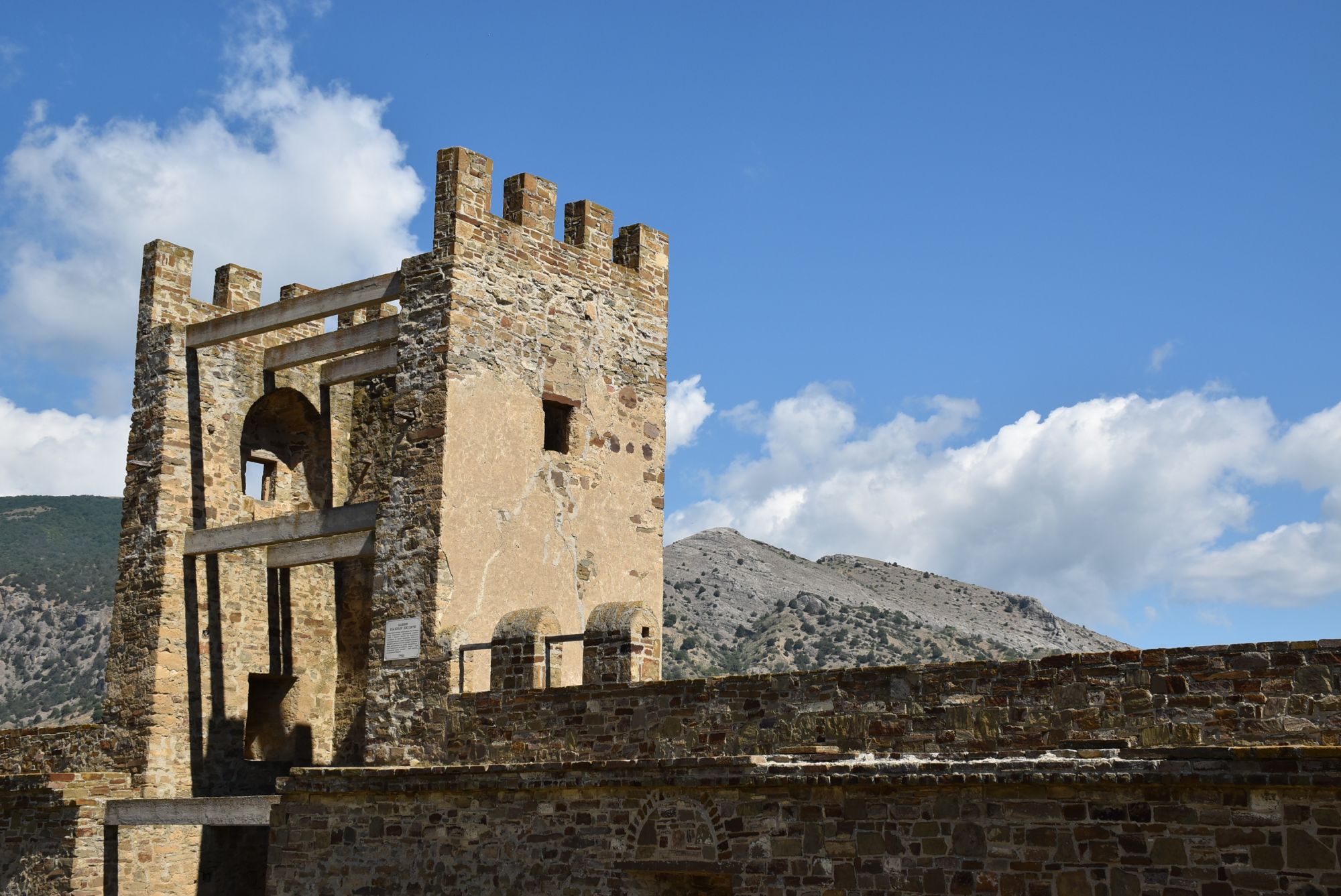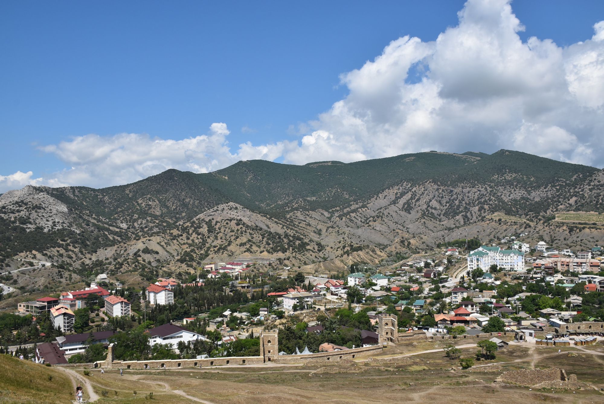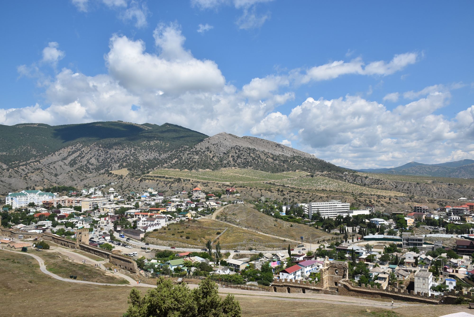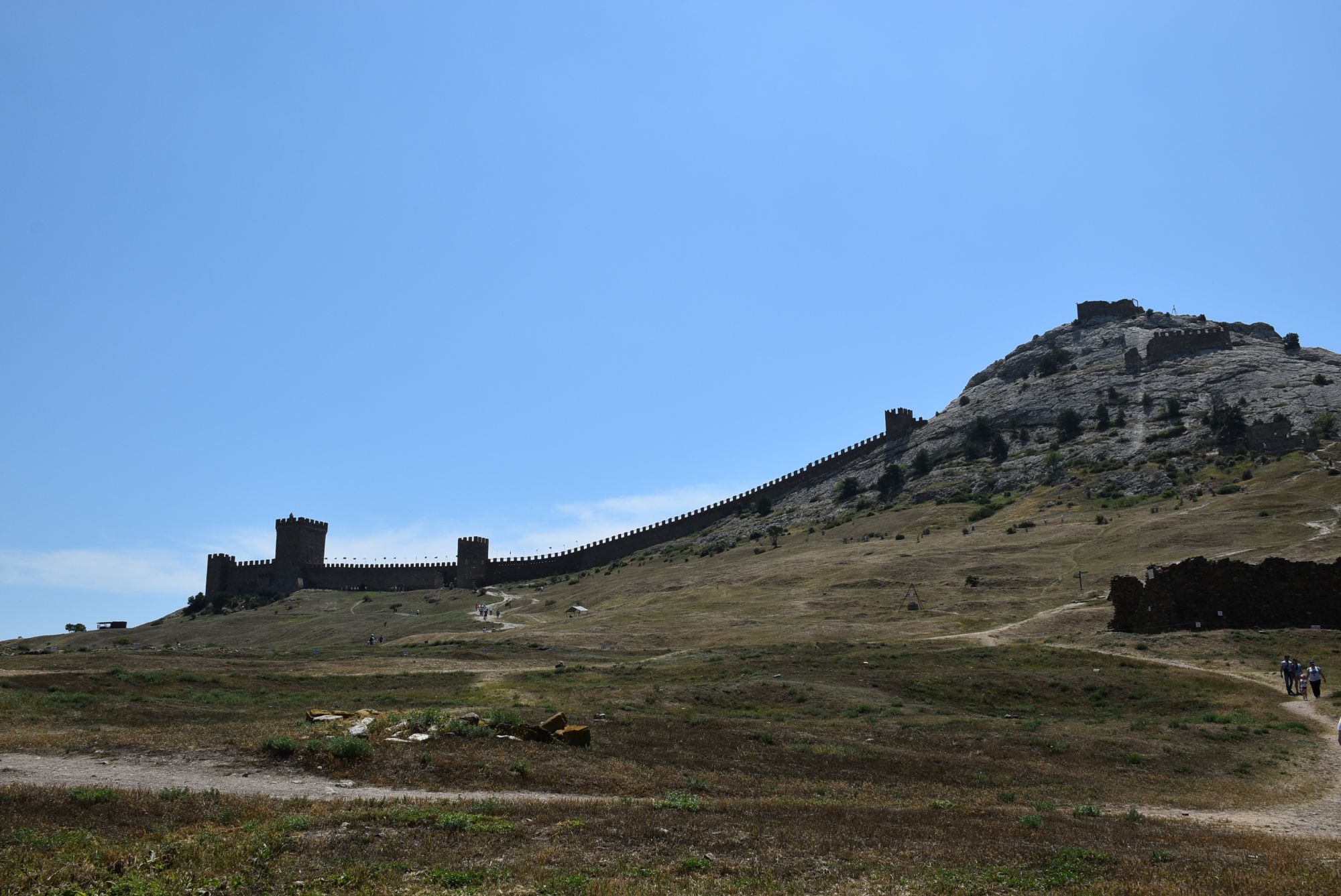 27 июня 2021 Суббота, 12 июня. Генуэзская крепость. Поехали туда с утра пораньше, и народа уже было более чем достаточно... На сегодняшний день нельзя с уверенностью ответить на вопрос о возрасте Генуэзской крепости в Судаке, так как существуют различные версии о первоначальной дате строительства оборонительных построек на этом месте. Существует легенда, что крепость построили аланы (ираноязычные кочевые племена) в 212 году. Высота крепости над уровнем моря - около 160 м. Посмотреть можно следующие постройки: Дозорная башня, Консульский замок, участки крепостных стен, хранилище для воды и еще несколько построек. Все объекты крепости сопровождаются информационными табличками. (конь метра три высотой, очень симпатишный ) Площадь заповедника «Судакская крепость» составляет около 30 гектаров. Музей, посвященный историко-архитектурному наследию крепости, открыт в храме с аркадой - недействующей мечети Падишах-Джами, а в разное время он выполнял роль католического храма, мечети, часовни и армяно-католического храма. Тут я с тихим криком "Цацки!!!" бросилась к витрине Люблю я всякое такое Основные сохранившиеся сооружения относятся ко второй половине XIV века. Это постройки выходцев из Северной Италии - генуэзцев. Почитать подробнее об истории и каждом объекте можно на официальном сайте Судакской крепости: https://sudak-museum.com/eksponaty Виды с крепости очень красивые! (и немножко сдувает ) (напомнило Китайскую стену) Фортификационный комплекс крепости состоит из внешней (14 башен, Главные ворота) и внутренней (цитадель с 4 башнями, замком и Дозорной башней) линий обороны. Очень нам понравилась эта крепость! Я бы с удовольствием ещё раз когда-нибудь побродила там... оленек, росомашка, Ксен40 и 29 других сказали спасибо Поделиться сообщением Ссылка на сообщение