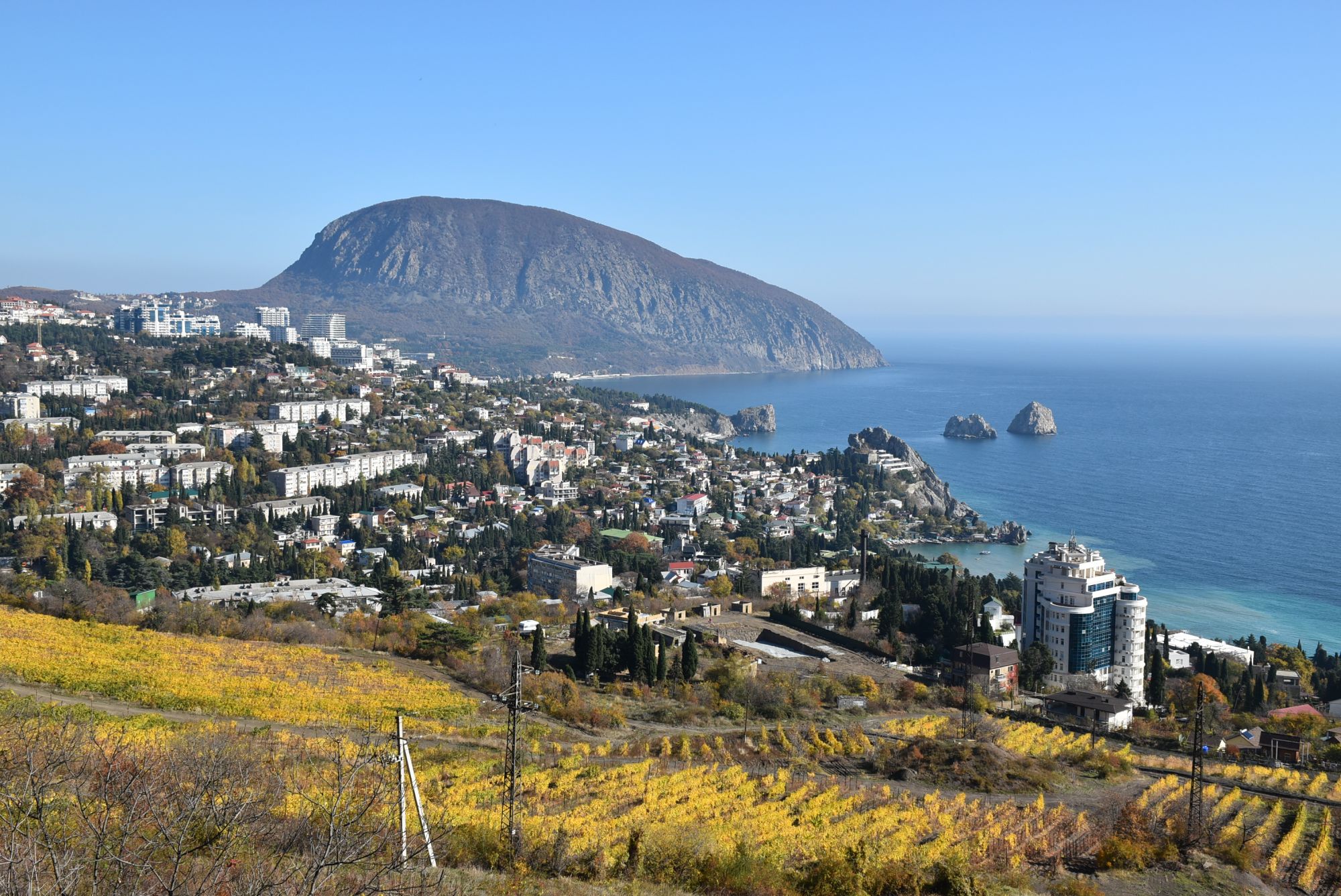 16 ноября 2021 На следующий день поехали в Никитский сад осуществлять мою мечту . Но по дороге сначала прокатились в Гурзуф. Красиво там очень! С большим удовольствием прогулялись по набережной. На солнышке конкретно припекало. Было довольно много загорающих А потом два раза останавливались на "сфотографировать" и не могли налюбоваться красотой! У нас в крае очень много виноградников, но они никогда вот так не желтеют, как в Крыму. Зрелище обалденное. Не хуже Тосканы Tata44, Кисюня, ЛАДОМИРА и 30 других сказали спасибо Поделиться сообщением Ссылка на сообщение