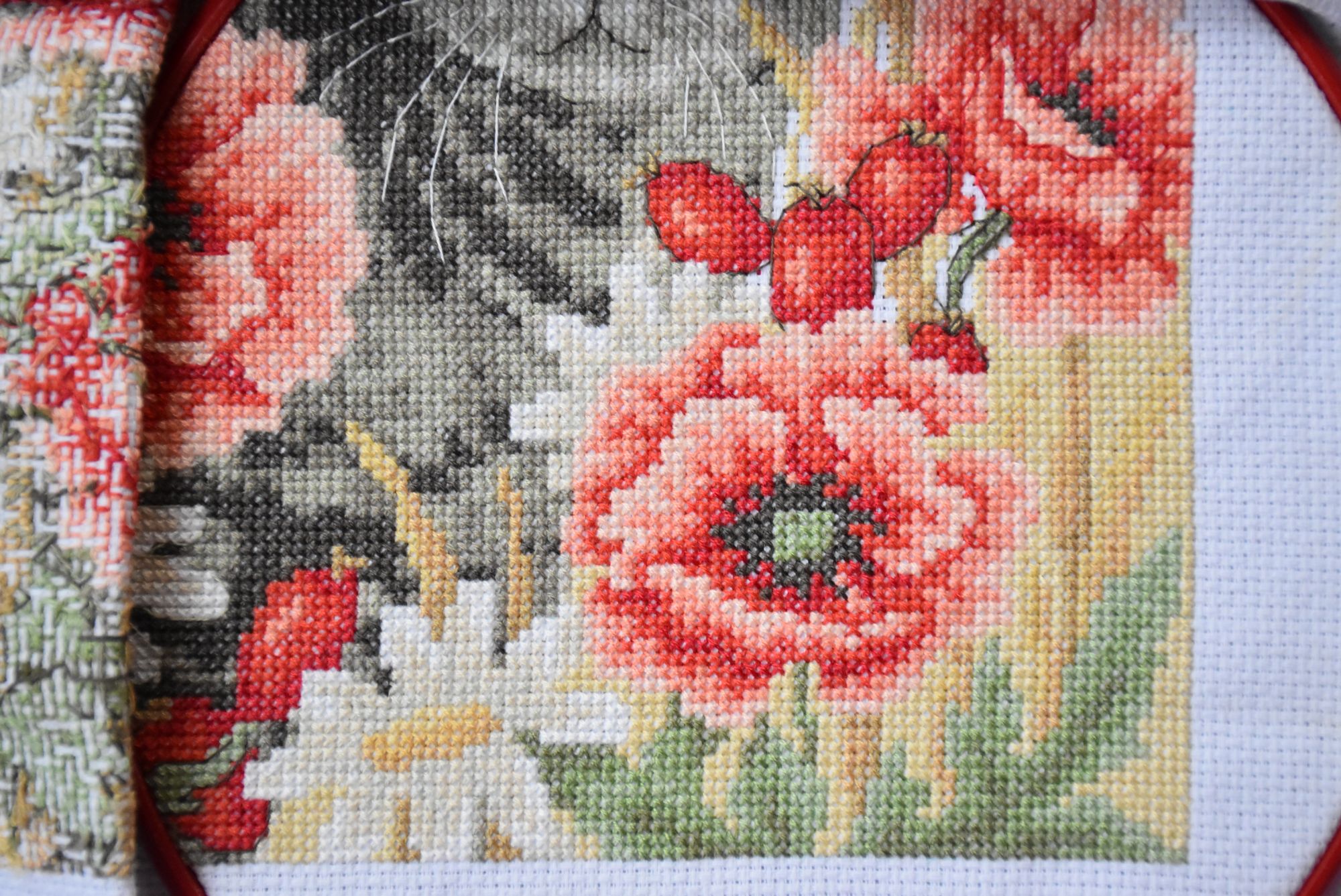 14 сентября 2022 Вышивальная часть. Пополняшки. Прошлась по тематической литературе. Не знаю, почерпну ли что-то новое для себя, но надеюсь, что будет интересно и приятно полистать-почитать. Процессы. Silver Birches / Derwentwater Брала с собой на море. Лопухнулась, что не взяла маркеры или карандаши. Глаза мои поломались, конечно. Это, пожалуй, самый сложный процесс за последнее время. Кроме того, что сплошная шахматка, «слепая» схема (буквально пара значков хорошо вычленяется из всего месива), «слепое» и поле вышивки. Глазу просто не за что зацепиться, потому что цвета очень похожи. Нет никаких ориентиров, каждый раз требуется куча времени, чтобы понять, где находишься и какой значок вообще вышиваешь. Но получается красиво, тут никаких претензий (в гаечку) Запоздалое лето / Panna А вот и экватор! Очень рада. Получается залипательно. Взгляд сложно оторвать – он так и гуляет по этим деревьям, кустам и травам на ветру. (в гаечку) Кот в саду / Белоснежка Как я поняла, изначально это была схема "Пушистый гость" из журнала "Вышитые картины" за 2008 год, но Белоснежка сделала такой набор. Это Амелькин долгострой. Вышивала она этого котика в маках три года с хвостиком (начала 13.06.2019, когда ей было ещё 12 лет , закончила за полторы недели до 16-тилетия ). Хотя стоит сказать, что забывала про него ооочень надолго. Если сложить чисто вышивальные дни, то получится весьма быстро, кстати. (все фото для гаечки) Я очень рада, что Амели дошила котейку. Очень он мне нравится , хотя сама разработка, конечно, с кучей вопросов Когда она принесла мне его со словами "готово!", я сняла пяльцы, развернула, Амелька прям удивилась: "Даже не верится, что это я вышила. Картина, оказывается, немаленькая!" Обещала ещё финиш, но покажу только в следующий раз: сегодня дошила бэк в димовском маяке, а сфотографировать уже не успела. На этом всё. Отличного настроения и тёплой осени! Хозяйка смешных зверей, Marusya1978, росомашка и 28 других сказали спасибо Поделиться сообщением Ссылка на сообщение
