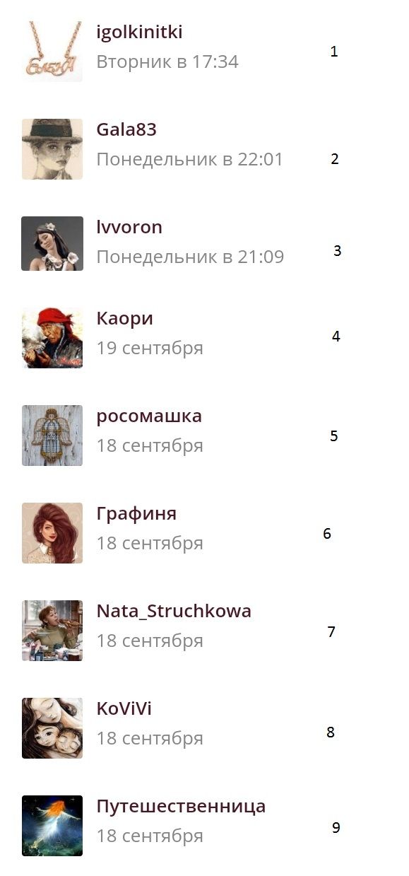 29 сентября 2022 26.09.2022 в 21:14, GreenTea сказал(а): Машенька, с хорошей такой циферкой тебя! Пусть "стаж" растет и приносит моральное удовлетворение, радость, отдых! Спасибо большое, Леночка! 27.09.2022 в 10:00, Nata_Struchkowa сказал(а): Ура! Спасибо тебе за праздник и рандомайзерам И поздравляю с годовщиной! Огромного удовольствия от процессов, покупок и создания схем. Пусть все желания сбудутся Наташенька, спасибо огромное! GreenTea, vasilisa-1977, Nata_Struchkowa и 3 других сказали спасибо Поделиться сообщением Ссылка на сообщение