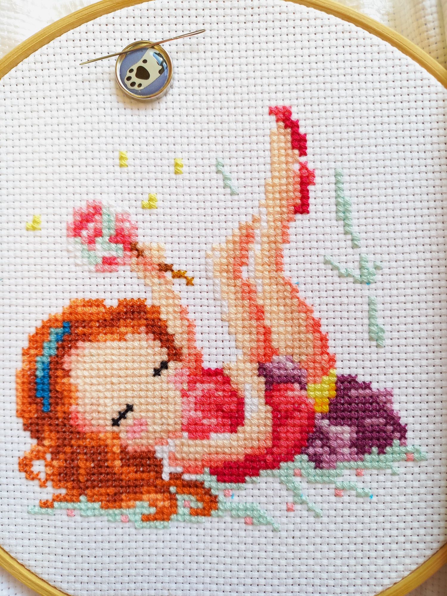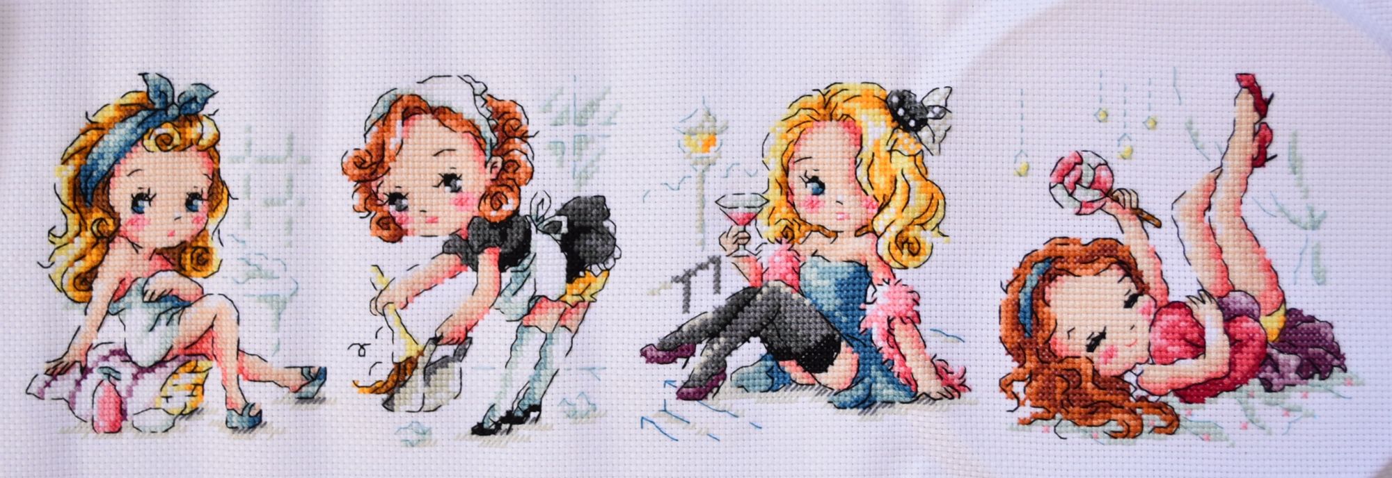 29 сентября 2022 Всем привет! Я прям зашиваюсь. Поэтому отчёт не в среду, а в четверг и поздно вечером. Сегодня исключительно вышивальное, ибо поднакопилось. Рисовашки. Страшно захотелось нарисовать одного из обожаемых персонажей. Многие узнают, я думаю. К цвету ещё не приступала, не успеваю. Кристюха каждый день просит включить этот мультик. Процессы. PoppyField / Bothy Threads Поле закончила очень быстро, за пару дней. Не стала вышивать башню, она мне напоминала здание МГУ и в сельском пейзаже смотрелась странно и чужеродно, на мой взгляд. Напомню, что было в апреле: (не для гаечки) Скрытый текст Схемы этого производителя не для меня явно. Прям вообще и никак. Особенно доставили - / | вперемешку А картинка симпатичная получилась. Много креста в одну нить, а я это дело оченно уважаю (в гаечку, и это финиш) Daisy Shore / Heritage Экватор пройден, отмечу его здесь. И потихоньку начала бэкать. (в гаечку) Брошь. Тигр Эдмунд / Panna Тянет на гладь последнее время, решила воспользоваться этим, взяла в работу тигрика. (в гаечку) Pin Up Girls / Soda Вышита моя любимая из шести красоток – рыженькая. (в гаечку) Две трети позади, все вместе сейчас они выглядят так: (в гаечку) Ловец снов / Волшебная страна Долгостроище. Проблема была в том, что бисер предлагается пришивать мононитью. Я вышила одно перо. Это были такие мучения, просто кошмар. Напоминаю, на чём остановилась аж два года назад (не в гаечку) Я не вижу мононить совсемвообщеникак, при этом она всё время цепляется за края заготовки, скручивается, ведёт себя ужасно. С четверти второго пера решила взять простую белую нить, которой всегда пришиваю бисер. И процесс пошёл! Вышила самое большое перо: (в гаечку) Причём на готовом пёрышке я не вижу эту нить: что леска, что белая нитка – всё выглядит одинаково. Зачем я так мучилась?.. Сейчас уже больше вышито, но фото нет, в следующий раз. Хотела ещё попросить совета. Ввязалась как-то в момент бессонницы в СО по схеме Юлии До. Вообще случайно увидела, делать было нечего сна ни в одном глазу и я записалась. Понравился мне яблочный веночек (хотя периодически мерещится черешня вместо яблок ), а вижу я его салфеткой на стол. Юля предлагает вышивать на 16 каунте. Получится он тогда примерно 29 на 29 см, я же думаю взять 14-й, это 33 на 33 см. В масштабах салфетки на кухонный стол, мне кажется, лучше больше. Плюс глазам легче. Но почему-то сомнения у меня какие-то плохоуловимые… Сам отрез, я так понимаю, надо брать 50 х 50 см. На этом сегодня всё. Хорошей осени - тёплой, уютной и спокойной. Любушка1985, GreenTea, Хозяйка смешных зверей и 34 других сказали спасибо Поделиться сообщением Ссылка на сообщение