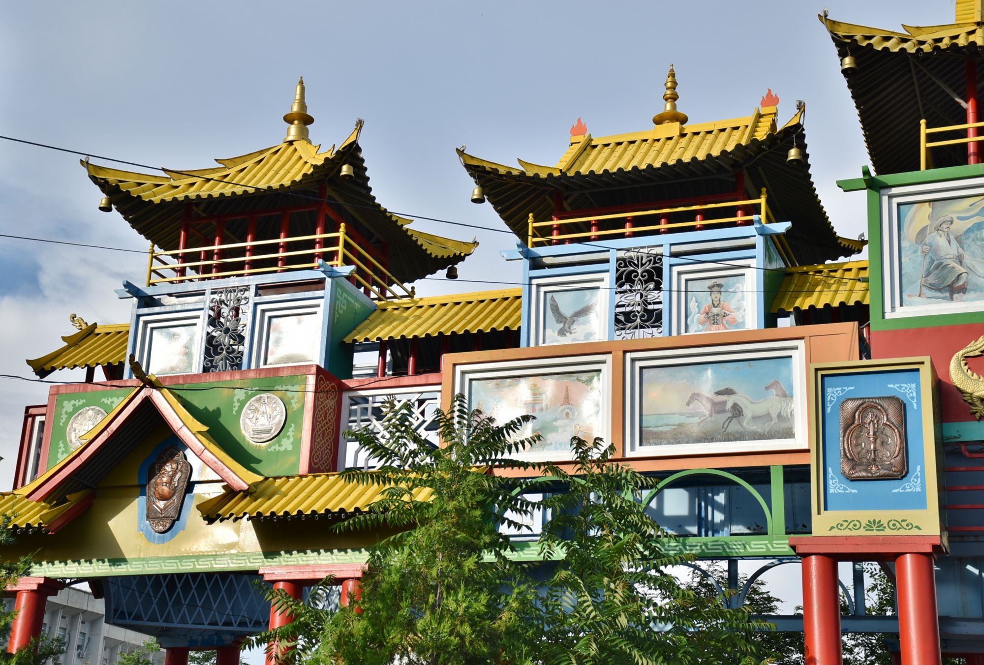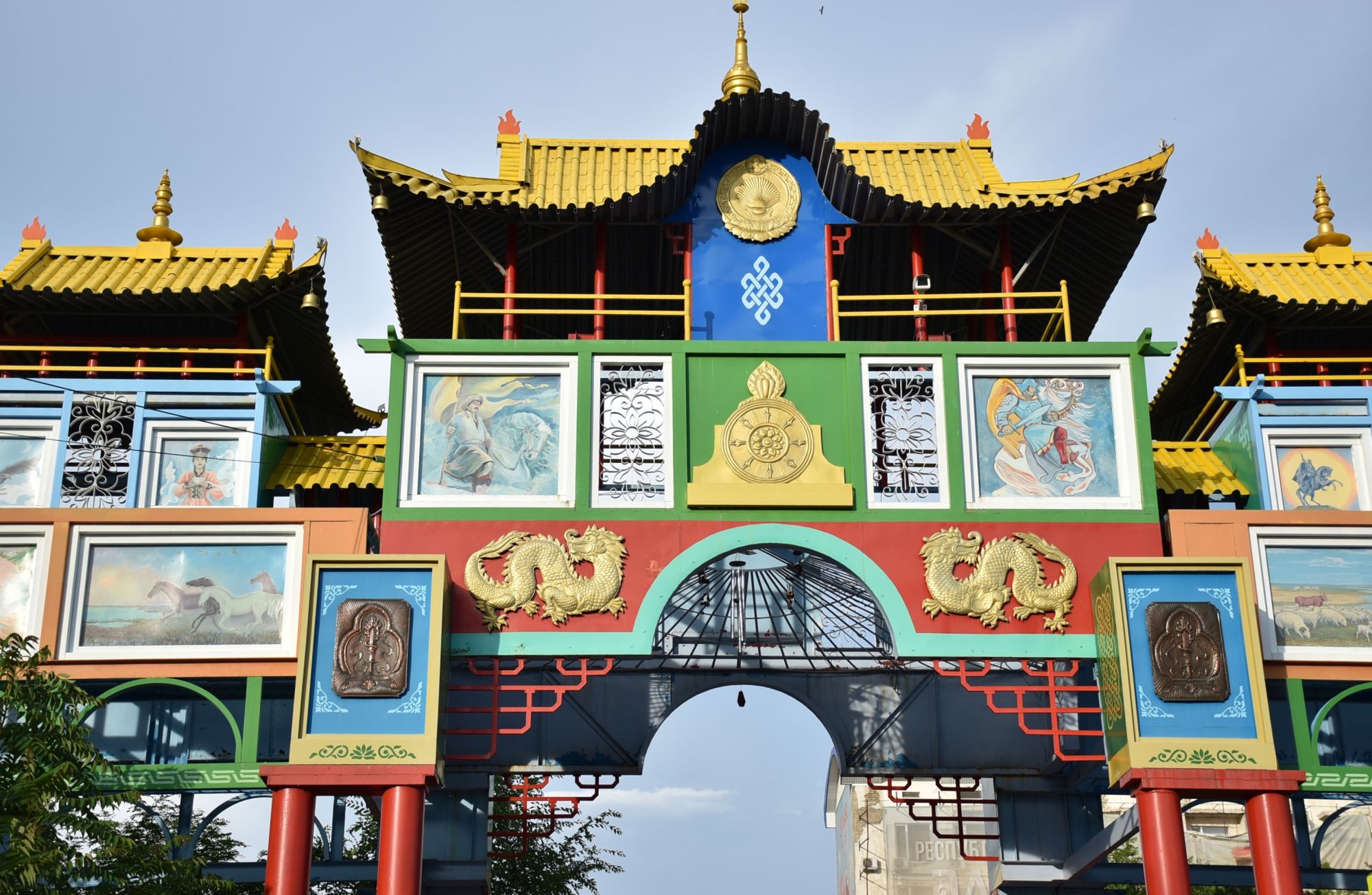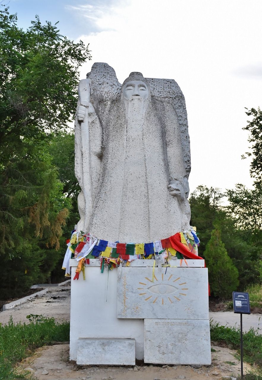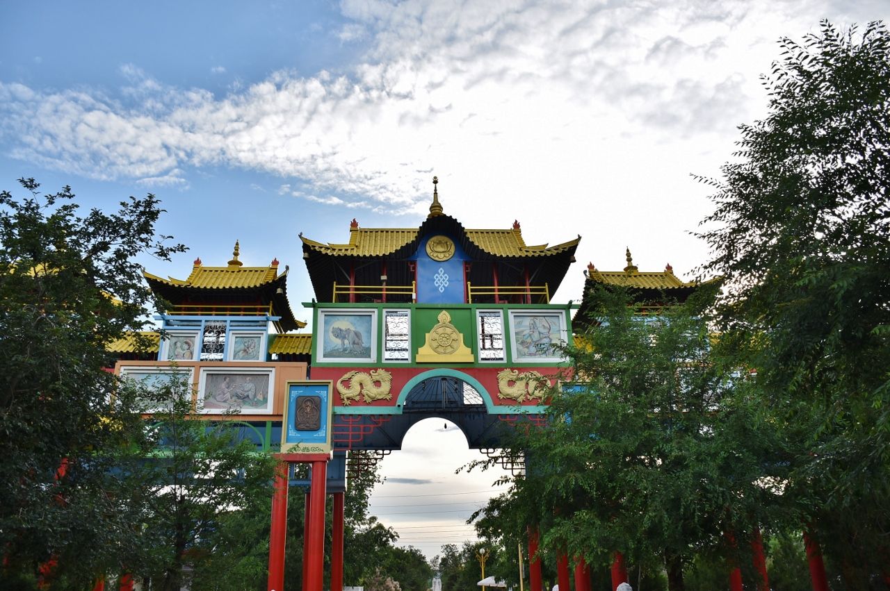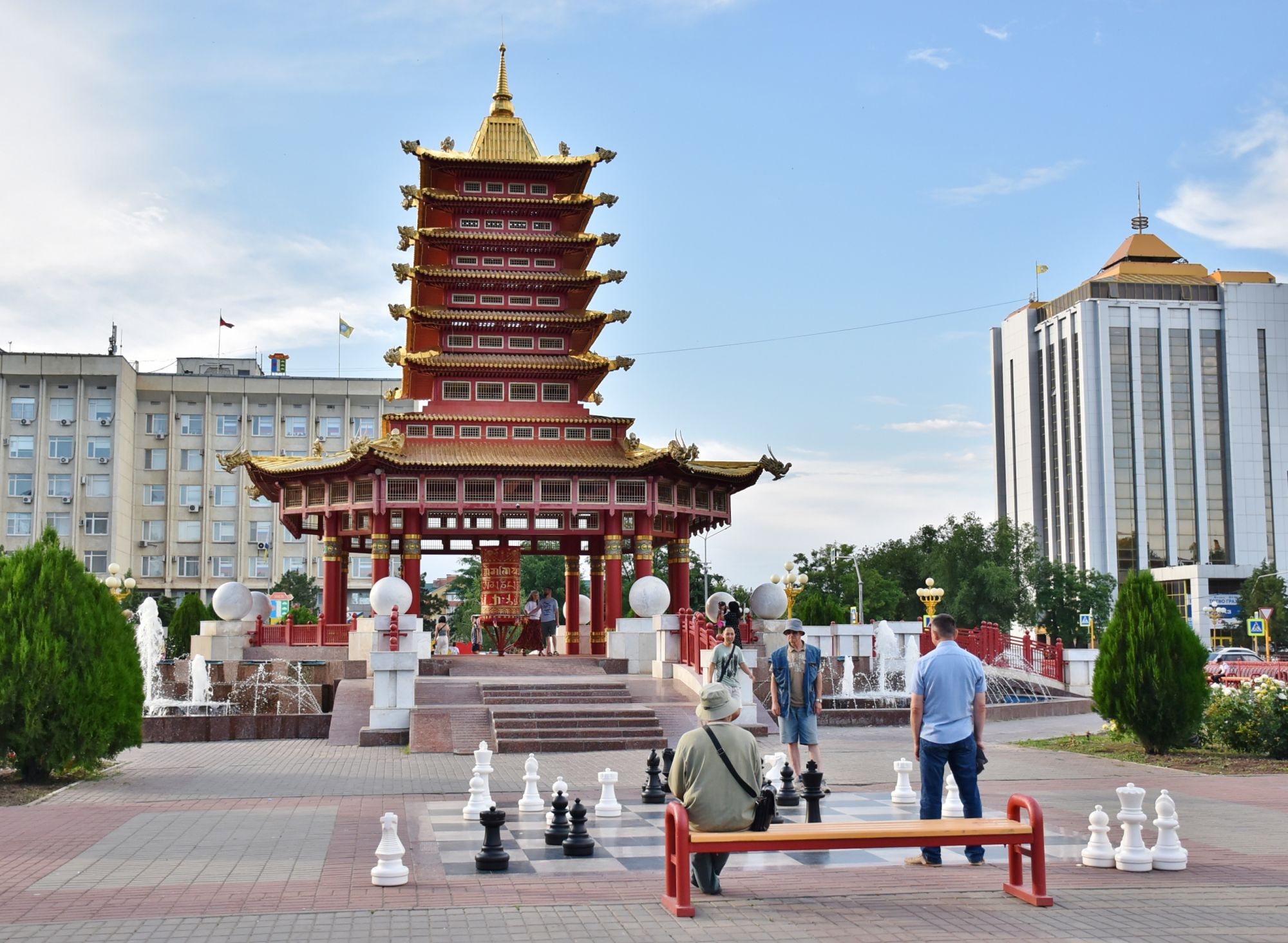 24 июня 2023 Рядом с филармонией находится очаровательная скульптура с изображением героев Восточного календаря. Мне она очень понравилась Золотые ворота Алтн Босх Изящное сооружение, возведенное в конце прошлого столетия, по праву входит в число знаковых достопримечательностей Элисты. Золоченый свод 15-метровой арки опирается на ярко-красные колонны. Фронтоны памятника зодчества, декорированы в буддийском стиле. Их украшают 28 колоритных картин, повествующих о важнейших этапах истории Калмыкии. Шедевр архитектуры имеет еще и огромное сакральное значение. Проходя под сводами арки, человек духовно очищается, обретает душевное равновесие. Если в этот момент звенят колокольчики, можно смело загадывать желание. Буддисты верят, что в этом случае оно сбудется обязательно. Пагода Семи Дней Прекрасная пагода является одной из визитных карточек современной Элисты. Уникальное сооружение, возведенное под руководством лам из индийской обители Гьдмед, возвышается в центре гранитной площадки, окруженной чашей фонтана. Пятнадцатиметровое здание имеет семь ярусов колоритных буддийских куполов, декорированных скульптурами и позолотой. Основной свод опирается на 16 спаренных колонн. Под ним установлен молитвенный барабан, покрытый позолотой. В основание кюрде замурованы свитки с текстом более 30 млн мантр. С наступлением темноты, когда включается подсветка, пагода выглядит особенно эффектно. Фонтан «Три лотоса» Подлинным украшением площади Ленина и популярным местом для свиданий является замечательный фонтан, открытый в 2006 г. Уникальная композиция состоит из чаши, облицованной полированным гранитом и аристократичным мрамором, а также оригинальной скульптурной группой. Из центра бассейна как бы прорастают три лотоса, к подножию которых гейзеры извергают воду. Стебли и листики растений выполнены из нержавеющей стали, а раскрывшиеся соцветия покрыты позолотой. Было бы интересно посмотреть на него в действии, но когда мы там были, фонтан не работал. Скульптура «Белый старец» Скульптура представляет собой стоящую в полный рост фигуру старца с посохом в руках. На самом верху посоха находится голова дракона, который издавна считается повелителем водной стихии. Рядом расположились традиционные обитатели калмыцких степей — волк, сайгак, орел. Одна рука старца лежит на голове волка (символ неподкупности). Вся скульптурная композиция располагается на высоком постаменте. На его передней части выгравирован традиционный калмыцкий орнамент, символизирующий бесконечность Вселенной. Скульптура носит на себе религиозный оттенок и является предметом поклонения калмыцких буддистов. За скульптурой находится парк "Дружба", но туда мы уже не пошли. По отзывам и внешнему виду, особо делать там нечего... А у нас были ещё обязательные пункты плана, и мы поехали в сторону Города шахмат. Мимо собора Кирилла и Мефодия, строительство которого ещё не завершено. Но, судя по тому, что можно видеть сейчас, Кирилло-Мефодиевский храмовый комплекс будет очень красивым. В него, кроме собора, также будут включены трёхъярусная колокольня и Часовня Сергия Радонежского. Ступа Просветления Удивительный храм Монлам Тамчед Друпа, является не только сакральным местом, но и входит в число главных достопримечательностей Элисты. Его название переводится как «Исполняющ