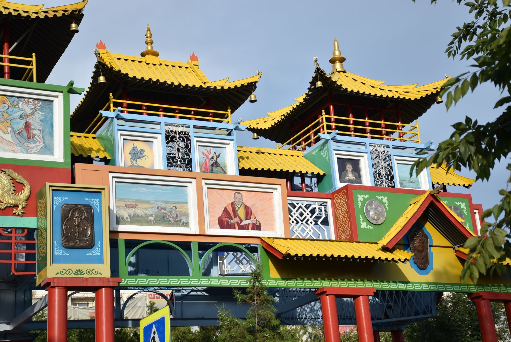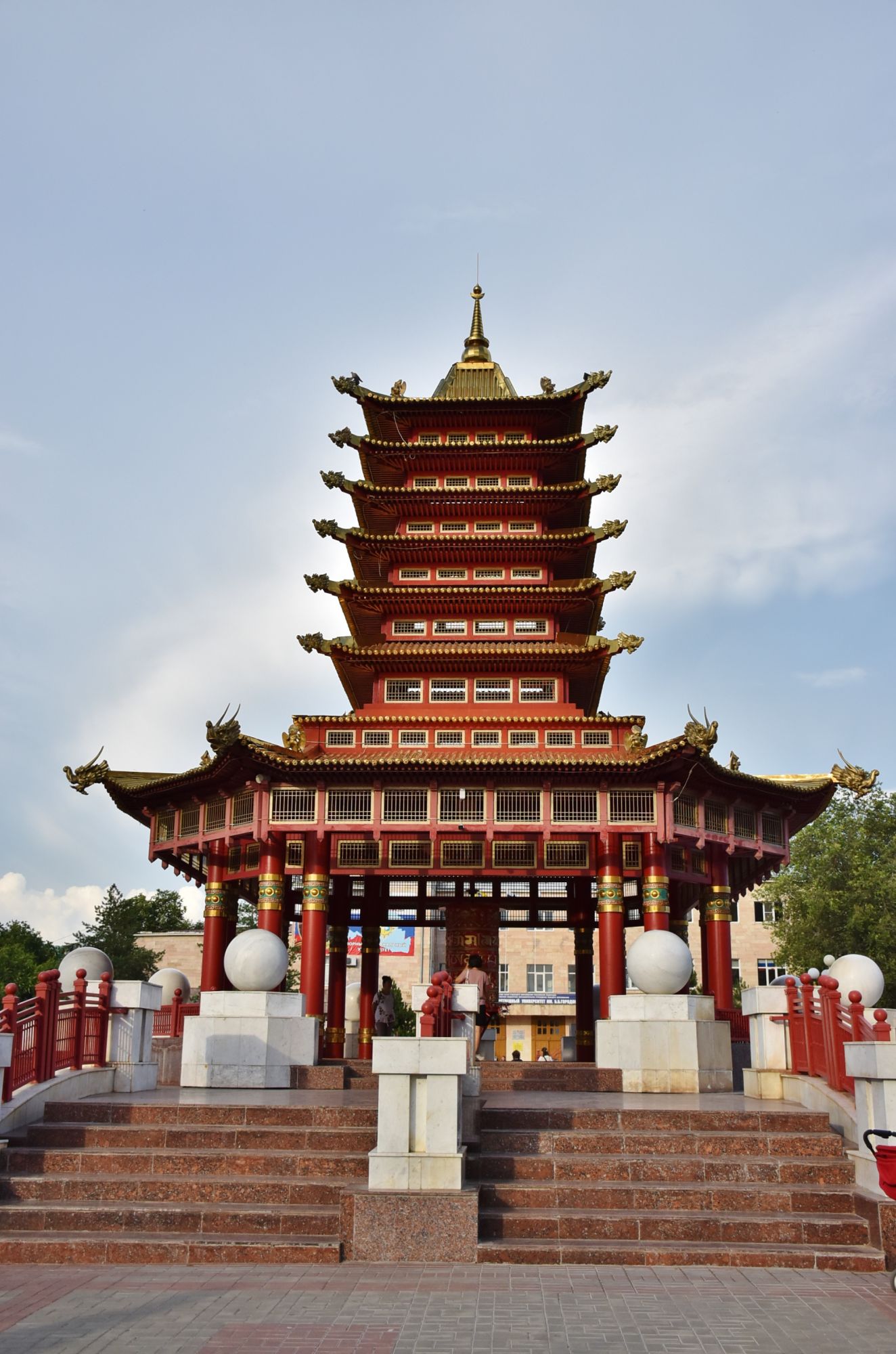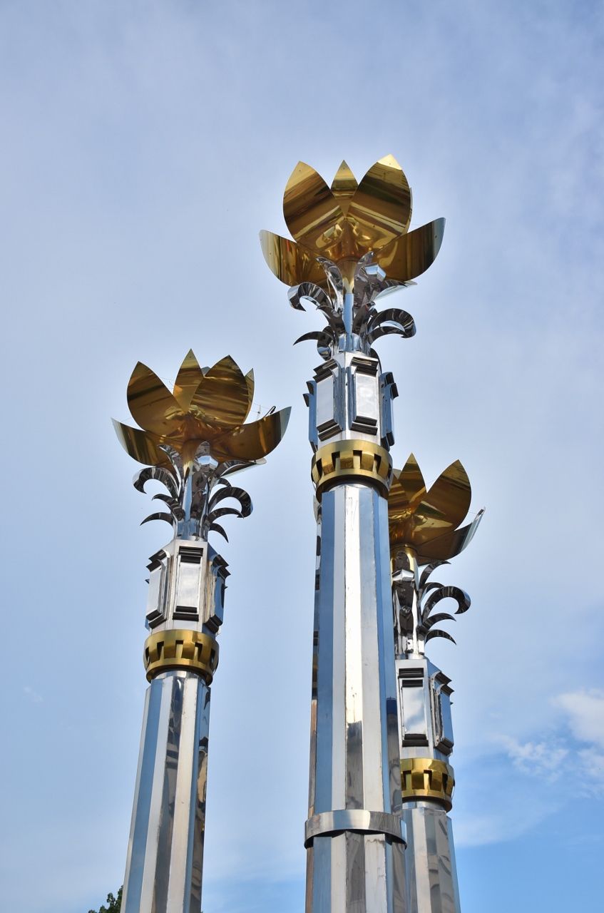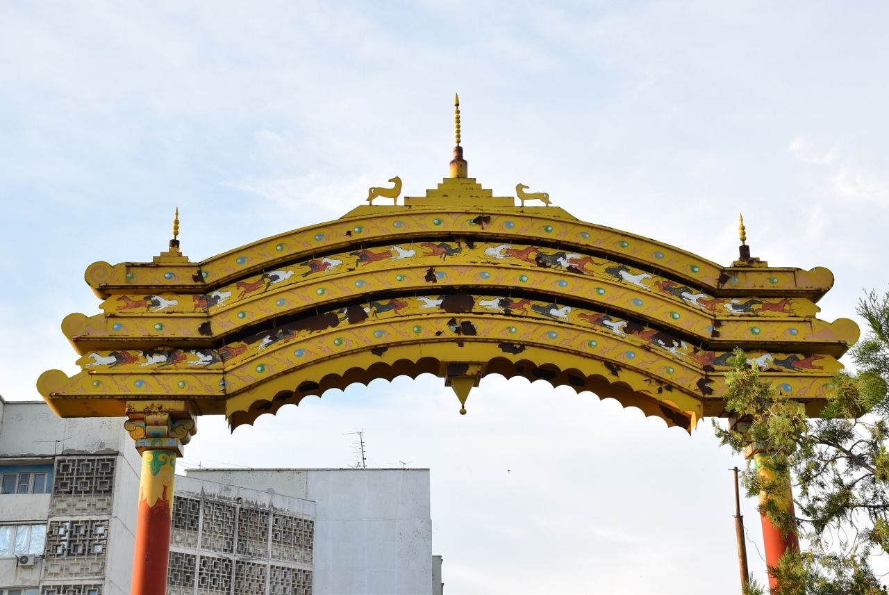 24 июня 2023 Рядом с филармонией находится очаровательная скульптура с изображением героев Восточного календаря. Мне она очень понравилась Золотые ворота Алтн Босх Изящное сооружение, возведенное в конце прошлого столетия, по праву входит в число знаковых достопримечательностей Элисты. Золоченый свод 15-метровой арки опирается на ярко-красные колонны. Фронтоны памятника зодчества, декорированы в буддийском стиле. Их украшают 28 колоритных картин, повествующих о важнейших этапах истории Калмыкии. Шедевр архитектуры имеет еще и огромное сакральное значение. Проходя под сводами арки, человек духовно очищается, обретает душевное равновесие. Если в этот момент звенят колокольчики, можно смело загадывать желание. Буддисты верят, что в этом случае оно сбудется обязательно. Пагода Семи Дней Прекрасная пагода является одной из визитных карточек современной Элисты. Уникальное сооружение, возведенное под руководством лам из индийской обители Гьдмед, возвышается в центре гранитной площадки, окруженной чашей фонтана. Пятнадцатиметровое здание имеет семь ярусов колоритных буддийских куполов, декорированных скульптурами и позолотой. Основной свод опирается на 16 спаренных колонн. Под ним установлен молитвенный барабан, покрытый позолотой. В основание кюрде замурованы свитки с текстом более 30 млн мантр. С наступлением темноты, когда включается подсветка, пагода выглядит особенно эффектно. Фонтан «Три лотоса» Подлинным украшением площади Ленина и популярным местом для свиданий является замечательный фонтан, открытый в 2006 г. Уникальная композиция состоит из чаши, облицованной полированным гранитом и аристократичным мрамором, а также оригинальной скульптурной группой. Из центра бассейна как бы прорастают три лотоса, к подножию которых гейзеры извергают воду. Стебли и листики растений выполнены из нержавеющей стали, а раскрывшиеся соцветия покрыты позолотой. Было бы интересно посмотреть на него в действии, но когда мы там были, фонтан не работал. Скульптура «Белый старец» Скульптура представляет собой стоящую в полный рост фигуру старца с посохом в руках. На самом верху посоха находится голова дракона, который издавна считается повелителем водной стихии. Рядом расположились традиционные обитатели калмыцких степей — волк, сайгак, орел. Одна рука старца лежит на голове волка (символ неподкупности). Вся скульптурная композиция располагается на высоком постаменте. На его передней части выгравирован традиционный калмыцкий орнамент, символизирующий бесконечность Вселенной. Скульптура носит на себе религиозный оттенок и является предметом поклонения калмыцких буддистов. За скульптурой находится парк "Дружба", но туда мы уже не пошли. По отзывам и внешнему виду, особо делать там нечего... А у нас были ещё обязательные пункты плана, и мы поехали в сторону Города шахмат. Мимо собора Кирилла и Мефодия, строительство которого ещё не завершено. Но, судя по тому, что можно видеть сейчас, Кирилло-Мефодиевский храмовый комплекс будет очень красивым. В него, кроме собора, также будут включены трёхъярусная колокольня и Часовня Сергия Радонежского. Ступа Просветления Удивительный храм Монлам Тамчед Друпа, является не только сакральным местом, но и входит в число главных достопримечательностей Элисты. Его название переводится как «Исполняющ