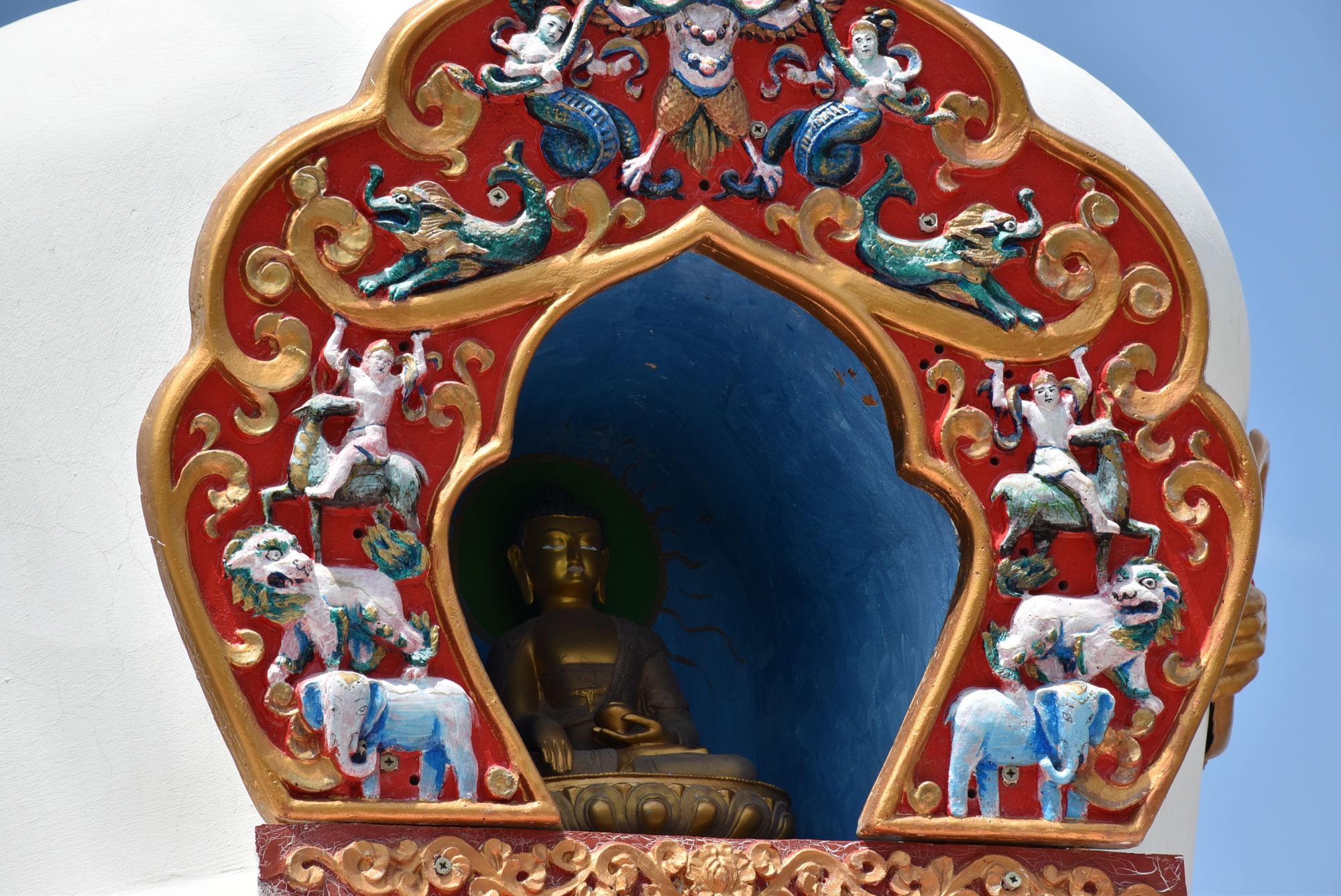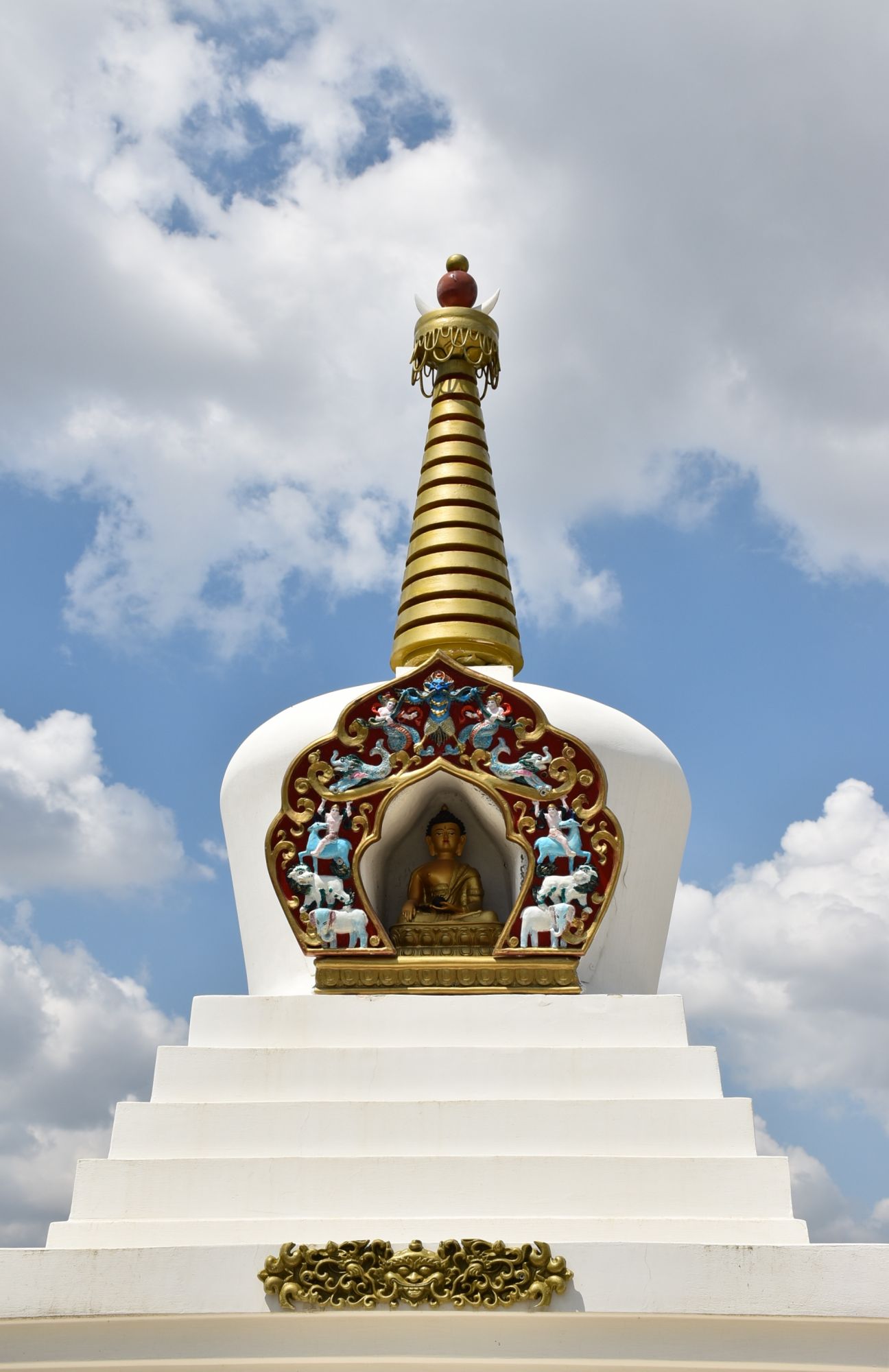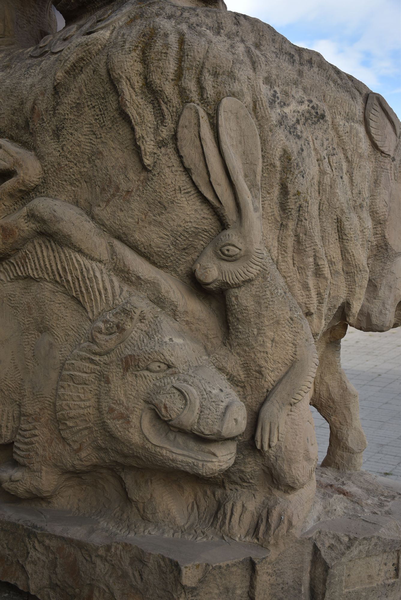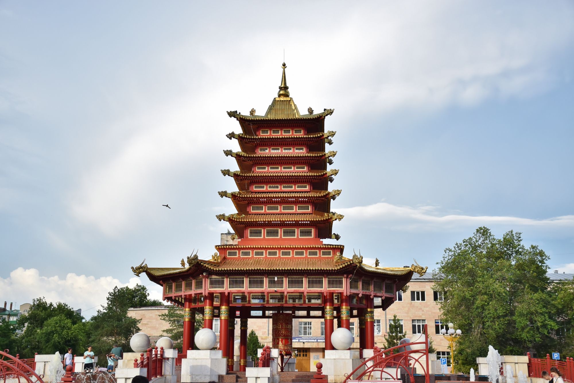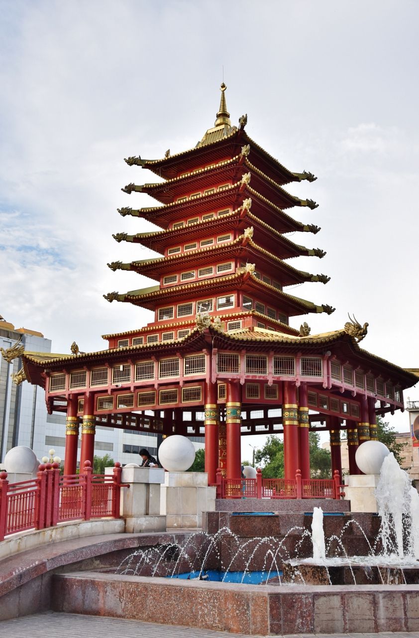 24 июня 2023 Рядом с филармонией находится очаровательная скульптура с изображением героев Восточного календаря. Мне она очень понравилась Золотые ворота Алтн Босх Изящное сооружение, возведенное в конце прошлого столетия, по праву входит в число знаковых достопримечательностей Элисты. Золоченый свод 15-метровой арки опирается на ярко-красные колонны. Фронтоны памятника зодчества, декорированы в буддийском стиле. Их украшают 28 колоритных картин, повествующих о важнейших этапах истории Калмыкии. Шедевр архитектуры имеет еще и огромное сакральное значение. Проходя под сводами арки, человек духовно очищается, обретает душевное равновесие. Если в этот момент звенят колокольчики, можно смело загадывать желание. Буддисты верят, что в этом случае оно сбудется обязательно. Пагода Семи Дней Прекрасная пагода является одной из визитных карточек современной Элисты. Уникальное сооружение, возведенное под руководством лам из индийской обители Гьдмед, возвышается в центре гранитной площадки, окруженной чашей фонтана. Пятнадцатиметровое здание имеет семь ярусов колоритных буддийских куполов, декорированных скульптурами и позолотой. Основной свод опирается на 16 спаренных колонн. Под ним установлен молитвенный барабан, покрытый позолотой. В основание кюрде замурованы свитки с текстом более 30 млн мантр. С наступлением темноты, когда включается подсветка, пагода выглядит особенно эффектно. Фонтан «Три лотоса» Подлинным украшением площади Ленина и популярным местом для свиданий является замечательный фонтан, открытый в 2006 г. Уникальная композиция состоит из чаши, облицованной полированным гранитом и аристократичным мрамором, а также оригинальной скульптурной группой. Из центра бассейна как бы прорастают три лотоса, к подножию которых гейзеры извергают воду. Стебли и листики растений выполнены из нержавеющей стали, а раскрывшиеся соцветия покрыты позолотой. Было бы интересно посмотреть на него в действии, но когда мы там были, фонтан не работал. Скульптура «Белый старец» Скульптура представляет собой стоящую в полный рост фигуру старца с посохом в руках. На самом верху посоха находится голова дракона, который издавна считается повелителем водной стихии. Рядом расположились традиционные обитатели калмыцких степей — волк, сайгак, орел. Одна рука старца лежит на голове волка (символ неподкупности). Вся скульптурная композиция располагается на высоком постаменте. На его передней части выгравирован традиционный калмыцкий орнамент, символизирующий бесконечность Вселенной. Скульптура носит на себе религиозный оттенок и является предметом поклонения калмыцких буддистов. За скульптурой находится парк "Дружба", но туда мы уже не пошли. По отзывам и внешнему виду, особо делать там нечего... А у нас были ещё обязательные пункты плана, и мы поехали в сторону Города шахмат. Мимо собора Кирилла и Мефодия, строительство которого ещё не завершено. Но, судя по тому, что можно видеть сейчас, Кирилло-Мефодиевский храмовый комплекс будет очень красивым. В него, кроме собора, также будут включены трёхъярусная колокольня и Часовня Сергия Радонежского. Ступа Просветления Удивительный храм Монлам Тамчед Друпа, является не только сакральным местом, но и входит в число главных достопримечательностей Элисты. Его название переводится как «Исполняющ