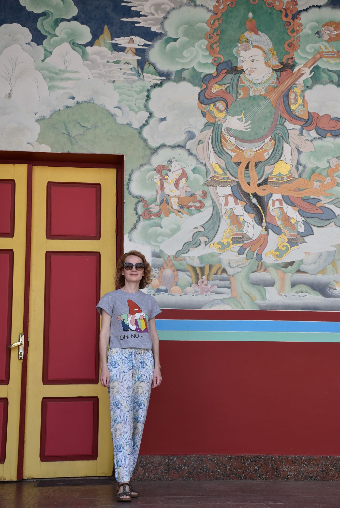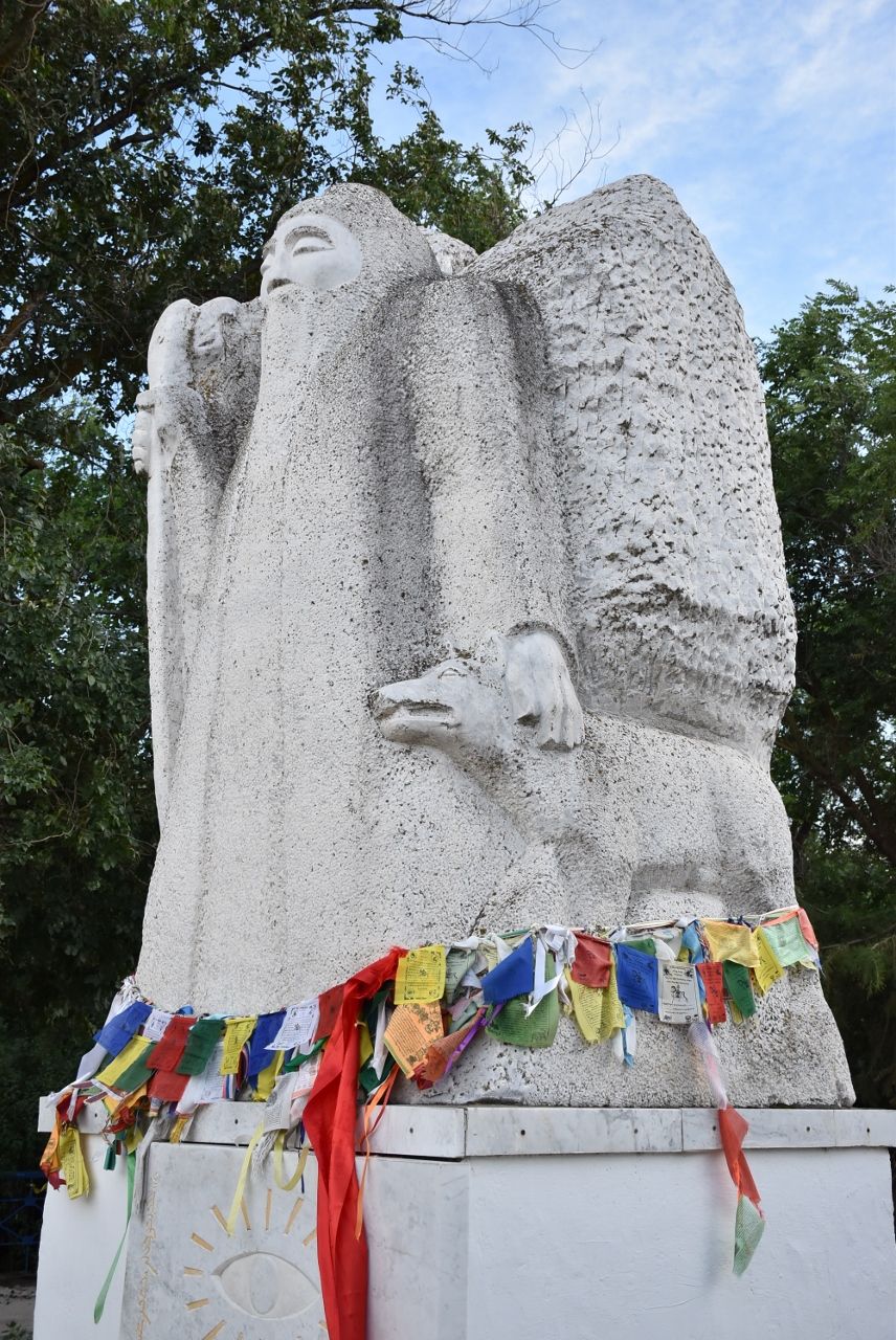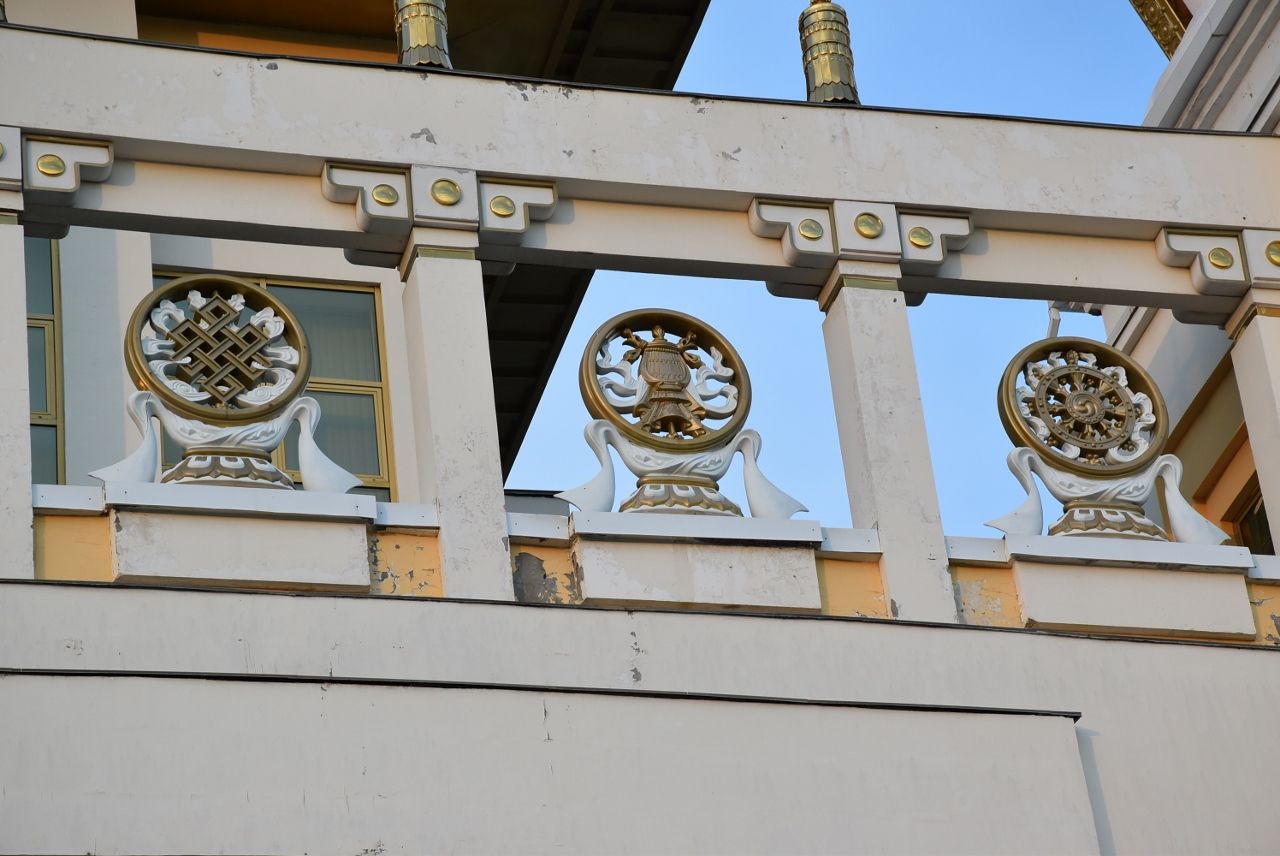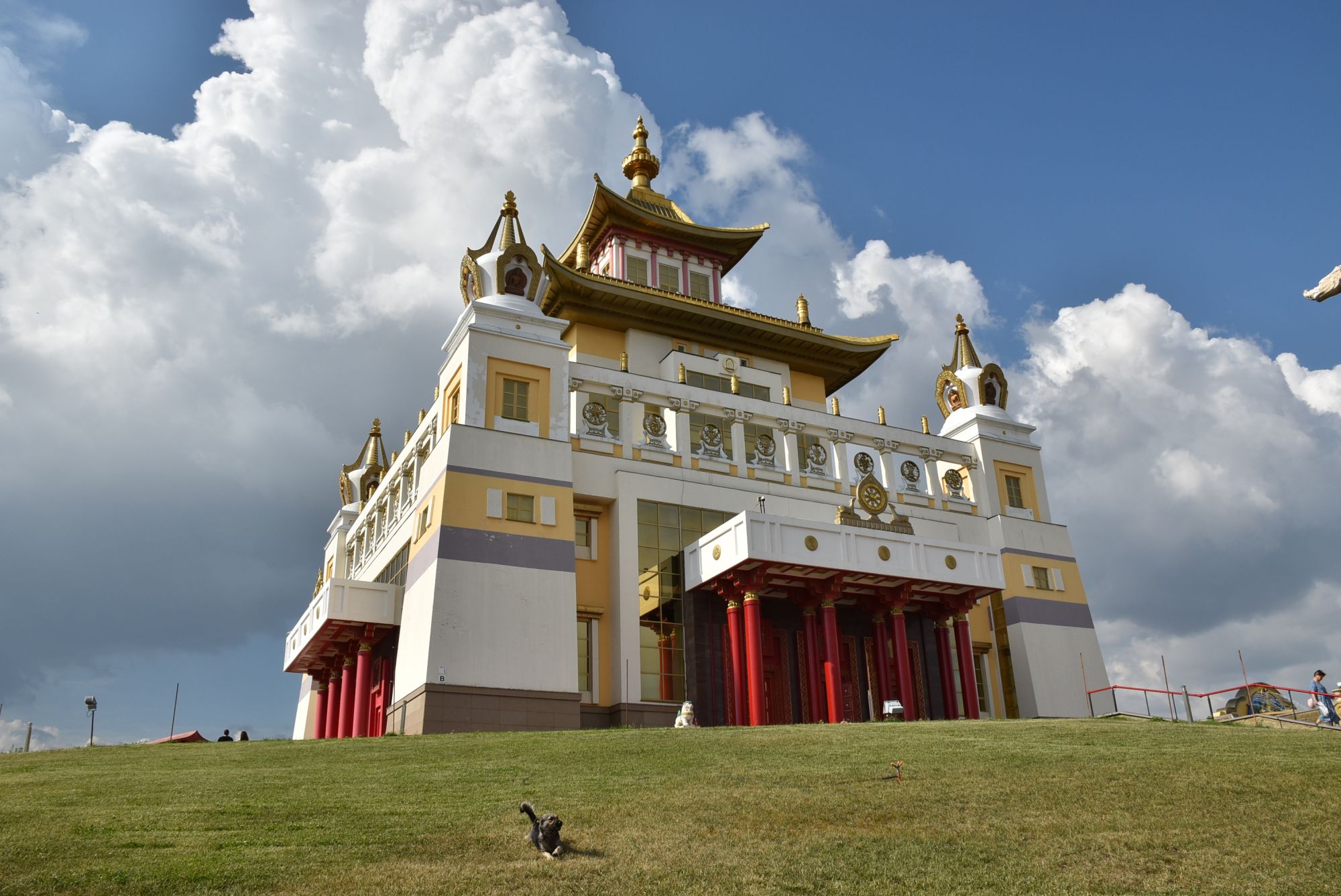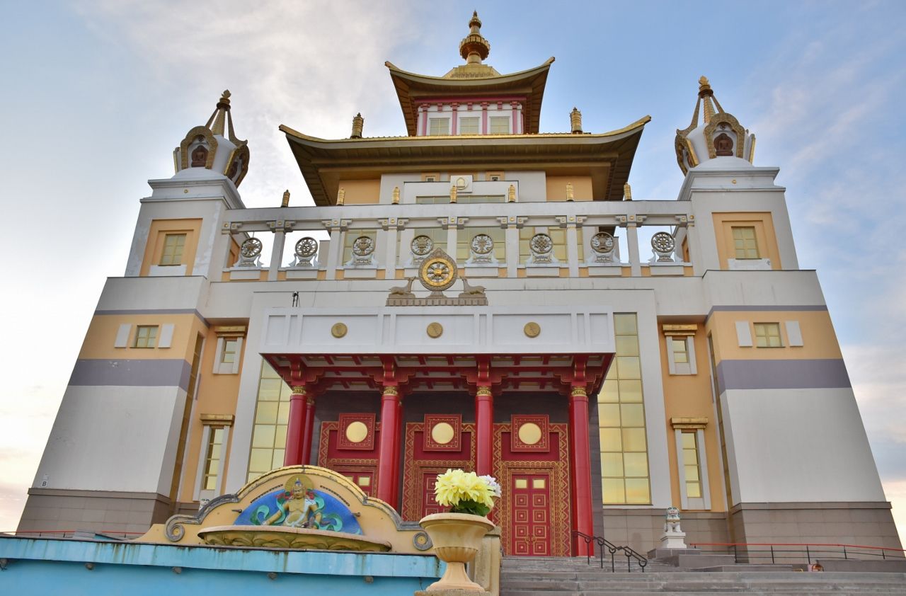 23 июня 2023 При въезде в Элисту сразу в глаза бросается Золотая обитель Будды Шакьямуни Мы Заехали в квартиру, и каково же было наше удивление, когда оказалось, что этот хурул виден с балкона, мы жили буквально в паре кварталов от него. (я для масштаба, кюрде тут есть огромные!) Он по праву считается главной достопримечательностью не только столицы Калмыкии, но и всей республики. Этот грандиозный комплекс входит в перечень «Россия — 10», десятку новых архитектурных шедевров нашей страны. Он действительно великолепен: огромное здание храма, крупнейшее в России и Европе, красивая ухоженная территория, множество статуй и монументов. Гостей встречают четверо ворот, направленных в разные стороны света, и главные из них — южные. Радуют глаз 17 ярких пагод с молитвенными барабанами, и 108 белоснежных ступ. Обойдя территорию по часовой стрелке, попадаем к центральному входу в храм. Здесь нас встречает длинная лестница вверх и скульптура Белого старца из калмыцкого эпоса. Внутреннее убранство хурула не менее примечательно - тут находится одна из самых крупных статуй Будды в России и Европе, ее высота 9 метров. А ещё мы успели попасть в небольшой музей при храме. Очень интересно, но фотографировать тоже нельзя, увы. На последнем фото обратите внимание на собаченьку, валяющуюся на газоне. Эта счастливая пёся покорила меня. Она с таким кайфом и радостью валялась и крутилась под струями поливалки, что невозможно было не улыбаться Мне это место очень понравилось. GreenTea, relax_cross_stitch, Ксен40 и 25 других сказали спасибо Поделиться сообщением Ссылка на сообщение