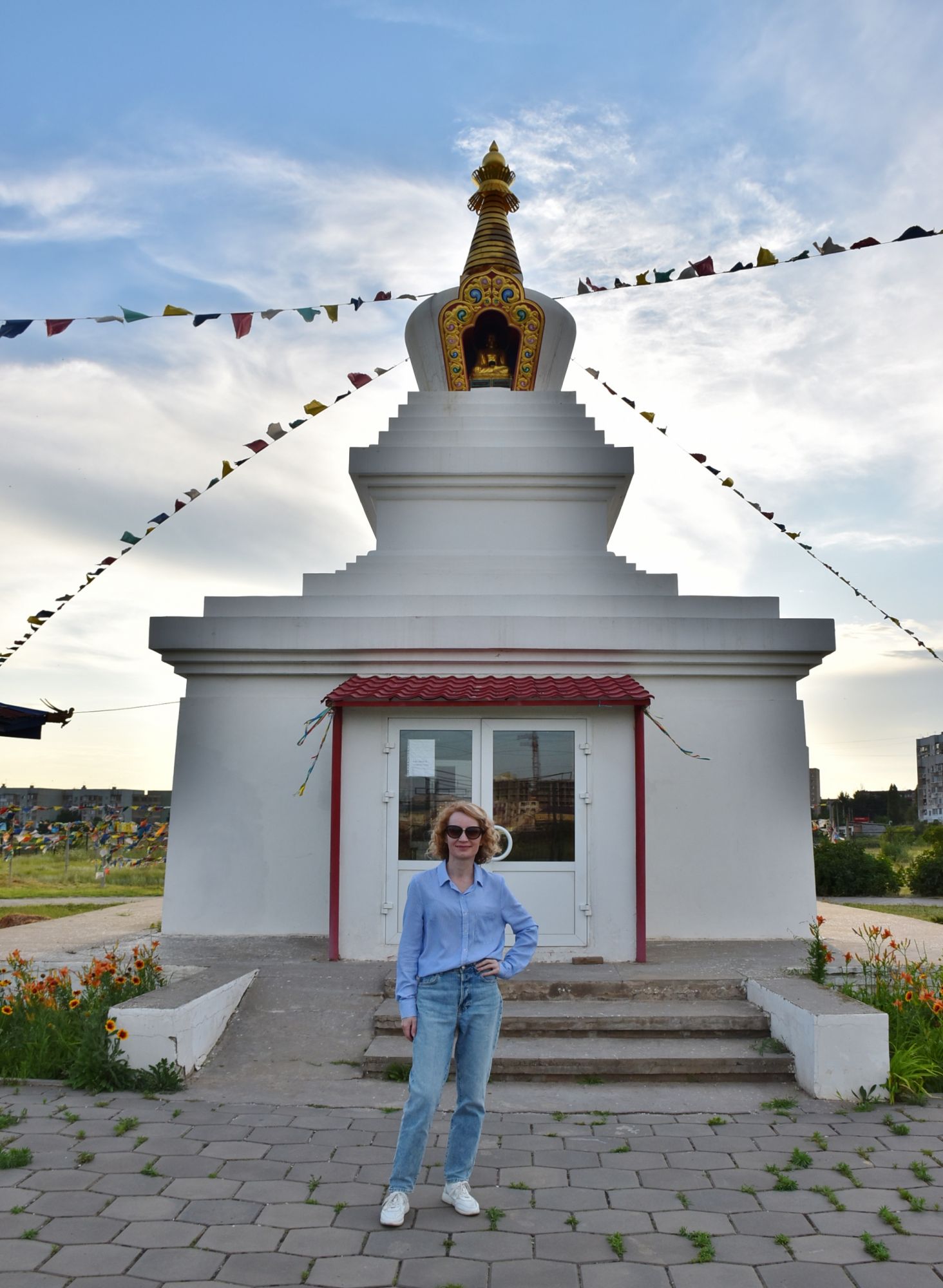 23 июня 2023 Внезапно дали интернет на ночь глядя, аж дышать страшно. Хочу хотя бы начать про Калмыкию, а то я себя знаю - потом ленюсь, ничего о поездках не рассказываю и быстро всё забываю Выехали рано утром в субботу 17-го июня. Дорога очень красивая - золотые и зелёные поля, сердце радовалось Люблю ветряки, потому что они у меня ассоциируются с чем-то фантастическим. Дорога хорошая, пустая! Это такой кайф, оказывается. Из-за отсутствия пробок было ощущение, что на дорогу ушло часа три, а не семь. Мы были бодры и веселы Озеро Маныч Перед Элистой заехали в Сякюсн-Сюме — традиционный буддистский храм. С калмыцкого языка название переводится как «Святая обитель просвещенных монахов». Храм выстроен в классической тибетском стиле, дополнен живописными полотнами, скульптурными изображениями, резьбой и культовыми символическими предметами. Верхняя часть храма представляет обычную двухъярусную восточную пагоду. На фасаде находятся скульптуры Колеса учения и двух ланей, которые по легенде являлись первыми слушательницами Будды. Высота храма составляет 20 м, ширина — 19 м, длина — 24 м. Внутри фотографировать нельзя, заходить в храм (в Калмыкии они называются хурулами) нужно без обуви, женщинам нельзя быть в шортах/брюках или откровенных нарядах (у входа есть юбки). Внутри интересно и красиво расписаны стены. Двигаться всегда надо по часовой стрелке. Рядом находятся ступы - культовые буддийские сооружения. Хочу сразу отметить, что калмыки (взрослая часть населения) - очень приветливые и доброжелательные люди. Это было очень приятно. Из Сякюсн-Сюме мы поехали уже в Элисту, она находится совсем рядом. mag, TheSunniestDay, Nata_Struchkowa и 22 других сказали спасибо Поделиться сообщением Ссылка на сообщение