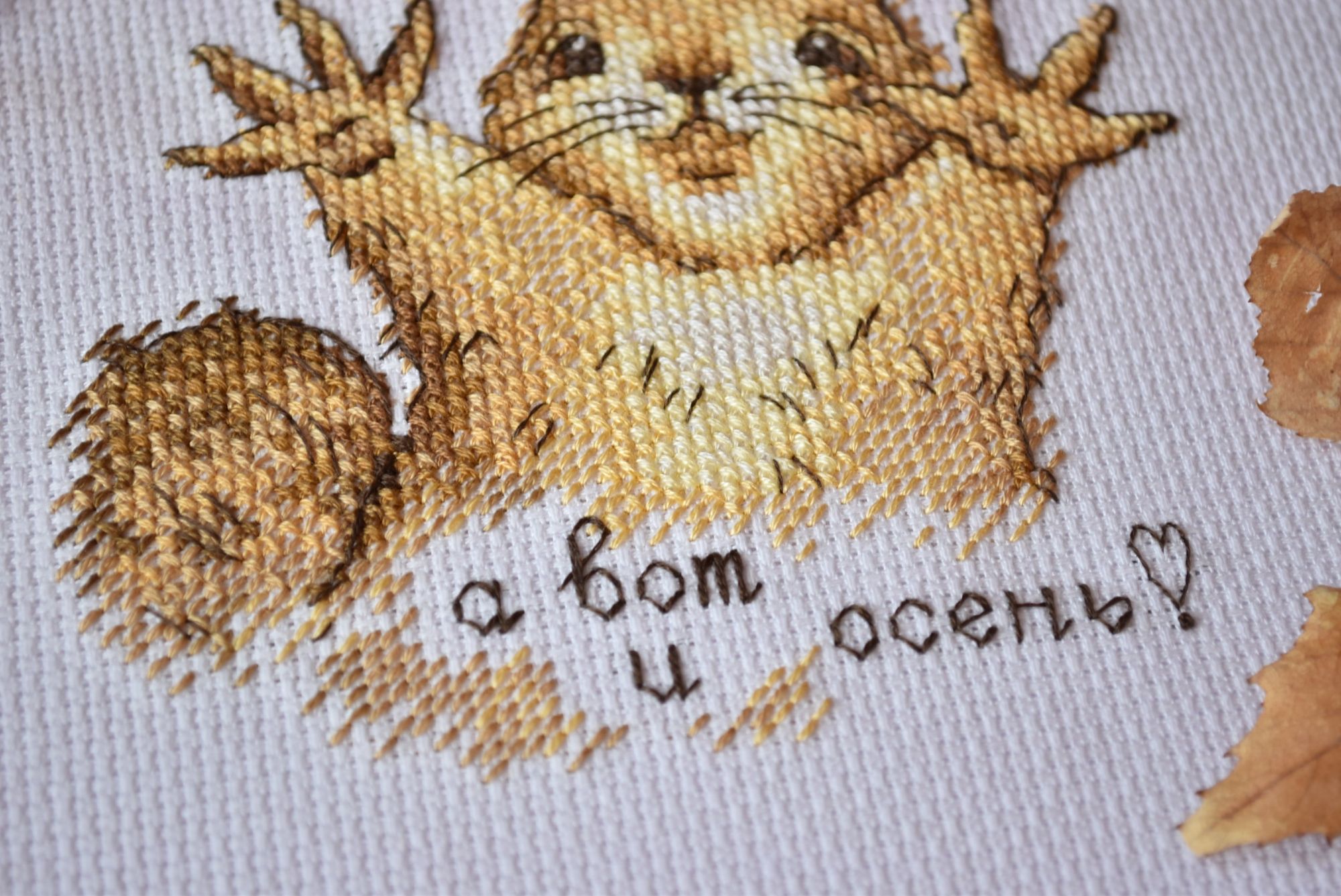 30 августа 2023 Вышивальная часть. Пополняшки. У меня классные обновки – сервальчик-путешественник от подруги из Штатов и чудесная залипательная книжечка. Процессы. Ведьма / Ксения Новикова Тут немного смешная история. Увидела эту тыковку в местном чате. Сначала вообще не поняла, что это такое изображено. Потом увидела кота на бревне. Потом девочки написали, что это ведьма. Тогда я с трудом, но увидела-таки ведьму. В шарфе/шали. Ещё думаю: «Зачем шарф такими же цветами как и листья?». И только в процессе я поняла, что это волосы (немного поменяла бэк, чтобы больше на них было похоже). (фото в гаечку и это финиш!) В общем, ведьмочка мне очень нравится, кота больше увидеть не могу. Хлебные поля / Золотые Ручки Продолжение. Вышиваю каждый день по одной ниточке (это примерно 140-160 бисеринок), периодически помогает Кристи (диктует), но иногда приходится распускать, потому что кое-кто отвлекается. Так что пока я решила сама справляться. Сейчас море зелени, жду смены палитры, но ещё не скоро. Схема на 6-ти листах А3, я сделала себе копии на А4, так что у меня будет 12 листов. Сейчас вышит один лист и 1/3 второго. (в гаечку) Фото не передаёт всей красоты. Получается просто АХ! Хочу на ручки / Анна Петунова Не знаю, что это меня дёрнуло вписаться в СО с этой белкой. На первый взгляд она показалась мне прикольной. И ещё я была уверена, что она очень понравится Кристи (и была права). Изначально хотела на футболке её вышить, но таковой по размеру не нашлось. Так что в ход пошла Аида светло-сиреневого цвета. Как тягомотно тянулся этот процесс даже передать сложно. Просто заставляла себя каждый раз. И мозг, закипающий от крестиков и полукрестиков вперемешку, сопротивлялся всеми силами. В общем, я стала немного ненавидеть эту белку. Бэк неделю собиралась сделать, заставила себя вчера вечером, чтобы в отчёте сегодня показать, а так бы ещё лежала она долго, наверное. Изначально хотели надпись «обнимашки!», но она не особо вписывалась в пустое пространство. Так что вчера внезапно про осень родилось. И это примирило меня с белкой. Кстати, левый глаз был каким-то заплывшим, так что бэк я поменяла: чуть приподняла веко и бровь. (фото в гаечку и это финиш!) А ещё Аня увела у меня на аукционе офигенскую иллюстрацию, которая была любовью с первого взгляда. Ужасно обидно, но я в это время ездила за своими девочками и была без интернета. Так что я закусила. Ладно, шучу, не закусила, но осадочек остался. Сегодня исполнилось 17 лет моему ребёнку. Даже не верится... Всем отличного настроения и прекрасной осени! Nadinka-Blondinka, OlkaY, irchick2308 и 31 других сказали спасибо Поделиться сообщением Ссылка на сообщение