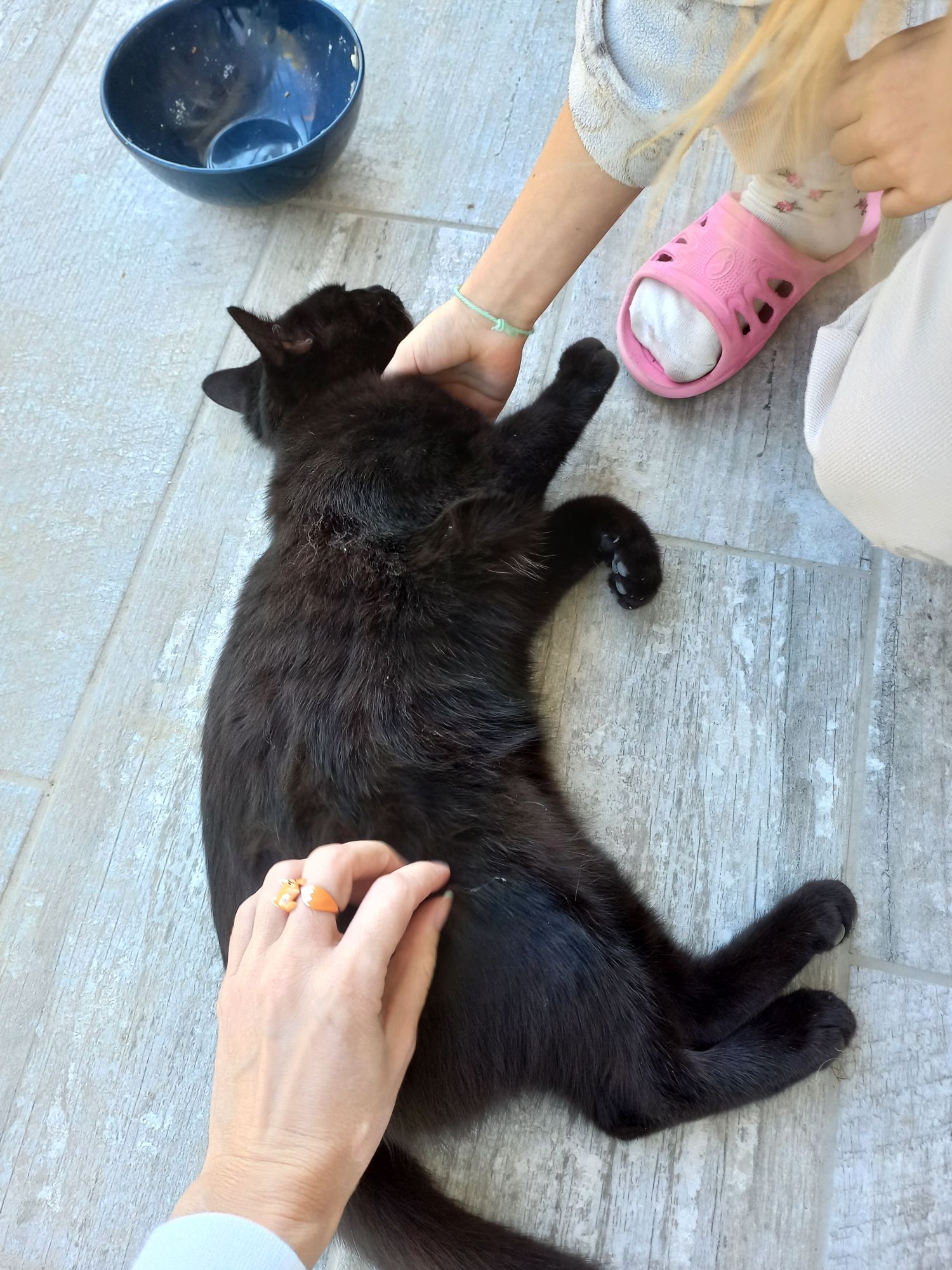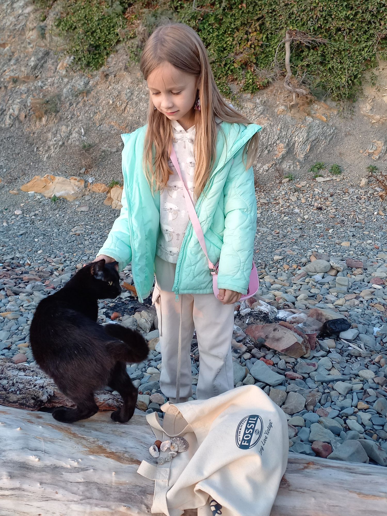 4 ноября 2023 А это уже конец октября. На фотоаппарат сделано всего четыре фото, потом он сказал, что сели батарейки и отказался работать. Хотела взять свой Nikon, но не взяла. Почти все фото на телефон, а я это не очень... Любимое Мы пообедали, и остался вкусный бульон (мне ваапче нельзя, а Дима и Кристи отказались). Мне было так жалко его выливать, и тут совершенно внезапно на веранде появился кот! Вообще чудеса. Ещё и чёрный. Я детям не так давно говорила, что хотела бы чёрного кота (Но не сейчас, конечно! Нет-нет-нет! Бандитов хватает ). Я тут же помчалась к коту с вкусняшкой. Он тарахтел как трактор и без конца ластился, сшибая всё в этом порыве ласки. Пытался проникнуть в жилище Но я - кремень (а то меня из дома выгонят скоро ). К закату спустились к морю. Пока любовались, к нам снова пришёл этот мегаласковый котик А потом оказалось, что их там три. Два чёрных и один камышовый. Явно братья-сёстры. Это, мне кажется, девочка. росомашка, Любушка1985, Беладонна и 23 других сказали спасибо Поделиться сообщением Ссылка на сообщение