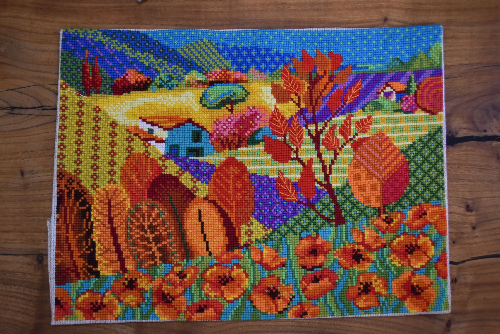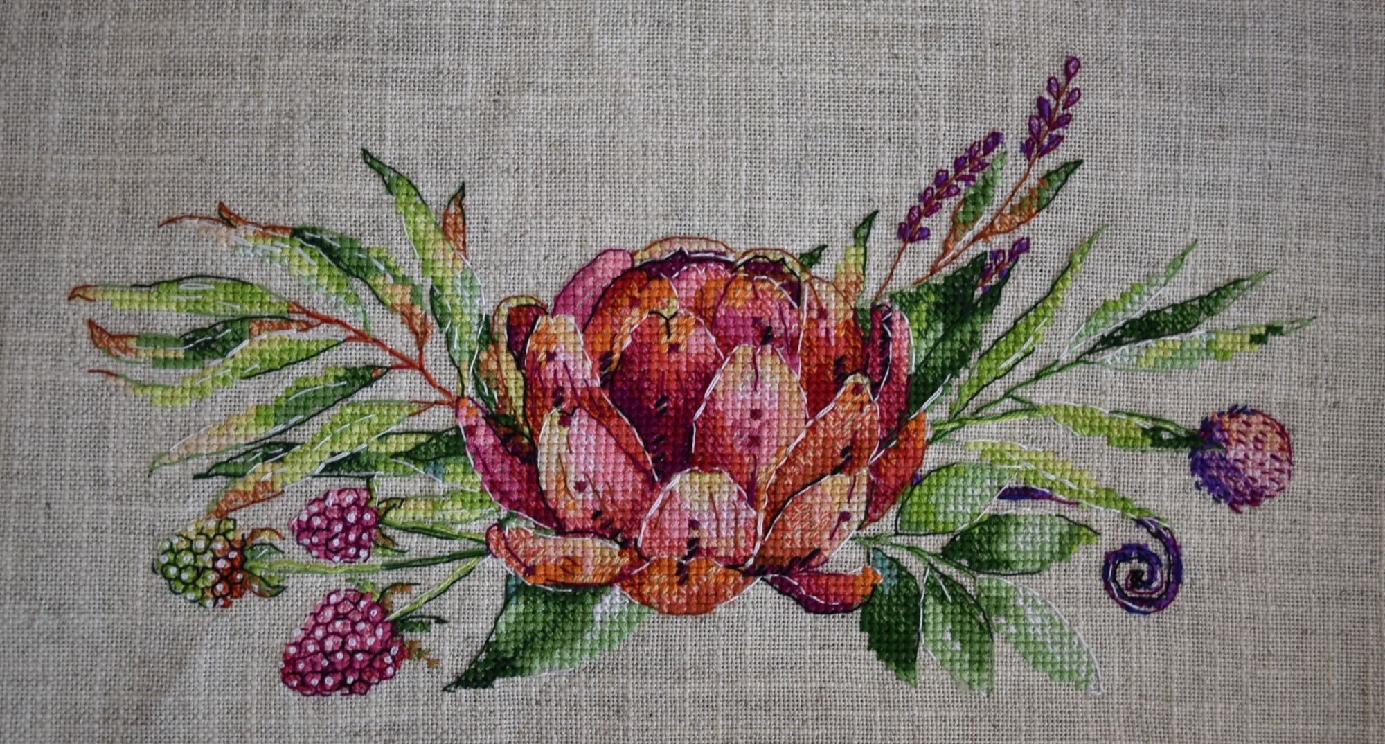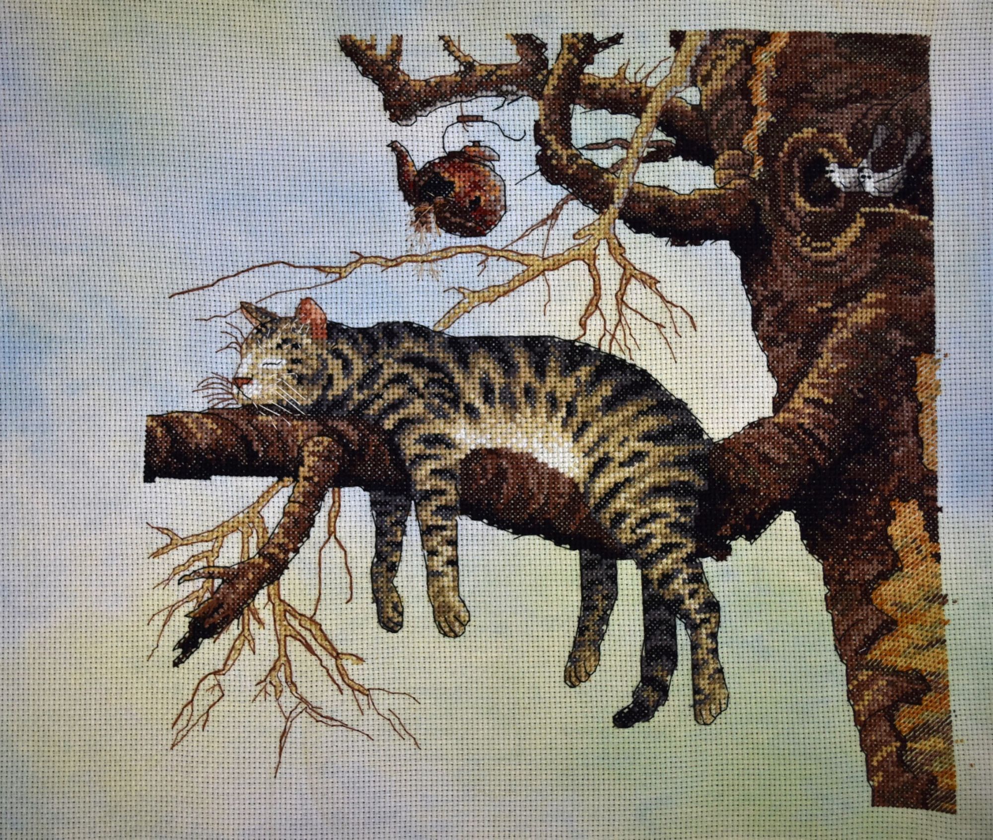 2 ноября 2023 Всем привет! Пока налажен интернет, спешу отчитаться. Оформляшки. Продолжение эпопеи. Итак, в воскресенье, 22-го, стало известно, что можно аж цельных пять работ на конкурс отправить. Ну, - думаю,- прям закон подлости: две оформила, а можно больше. В понедельник багетка не работала, во вторник утром поскакала практически к открытию. Упросила мастера оформить ещё две работы до обеда 26-го. Он явно прифигел от такой срочности, но сказал, что очень постарается. Для Запоздалого лета оформление подобрала относительно быстро. Сначала смотрела другие варианты, а потом приложила а-ля драненький деревянный и поняла, что тут попадание и в цвет, и в «природу», и в настроение, и во всё остальное. Довольна на все 100%. А вот с Солнечной террасой было много сомнений. С одной стороны, хотелось немного подчеркнуть звенящий воздух, а с другой – формы тут довольно простые и завитушки в багете могли «поссориться» с сюжетом. Относительно тёмные рамы сразу диссонировали с вышивкой. Остановилась в итоге на чисто белой довольно широкой фигурной раме. Но без приключений никуда. Притопала в обед за работами, посмотрела на Лето – всё отлично. Вижу Террасу, а там на меня смотрят тёмные дырки канвы. Я настолько привыкла, что в моей прежней багетке по умолчанию на неполную зашивку на светлой канве выписывали белую подложку, что тут это не озвучила, просто забыла. Глядя на моё почти обморочное состояние, мастер пообещал исправить поскорее. В общем, Террасу я забрала ещё через два часа. По закону подлости это был единственный день на неделе, когда шёл дождь и было пасмурно. Фотографировала я работы практически в сумерках. Помочь было некому: дети в школе. Убила два часа в основном на то, чтобы избежать большого количества бликов. В итоге на конкурс отправились второе фото Лета и предпоследнее Террасы. Но это всё суета сует. Самое главное – я оформила аж четыре работы из вышитых за последнее время. Это такое классное чувство! Просто кайф. Теперь я хотя бы вижу, чем занималась в этом году. А ещё поближе сфотографировала багет тигра. Прям тащусь от него Рисовашки. Добралась до своих «недобитых» в плане экспорта схем, начала с «Осеннего листа», он есть в бесплатниках в группе, если что. Теперь надо взять себя в руки и доделать остальных брошенок. Вязаное. Лисик, которого связала для Маруси Амелька, немножко попозировал мне перед отправкой к хозяйке. Процессы. Хлебные поля / Золотые Ручки Треть работы не за горами, а пока уже можно полюбоваться «катышками» из сена. (в гаечку) На солнышке просто восторг! Чертополоховый берег / Heritage Процесс стартанул ещё 10-го августа, но довольно быстро заглох, потому что хотелось скорее дошить основные три Херитажика. А потом мне всё хотелось нашить побольше для показа, а тут уже и финиш не за горами, можно сказать. Потому что этот процесс и олени - два основных сейчас. (в гаечку) Это, наверное, самый простой Херитаж в моей жизни (ну, пока бэк не начался, по крайней мере ). Просто суперотдыхалочка: ни одного узкокрестика, всего четыре бленда и даже шахматки нет. Вышивается как песня. Хотела Колобка ещё принести, но не успела с бэком, уже третий день его вышиваю . Но через неделю точно будет мущщина во всей красе. На этом, пожалуй, отчёт закончу. Отличного настроения! ПС. Всем участницам удачи в конкурсе! Кисюня, lvvoron, Дикая белочка и 26 других сказали спас