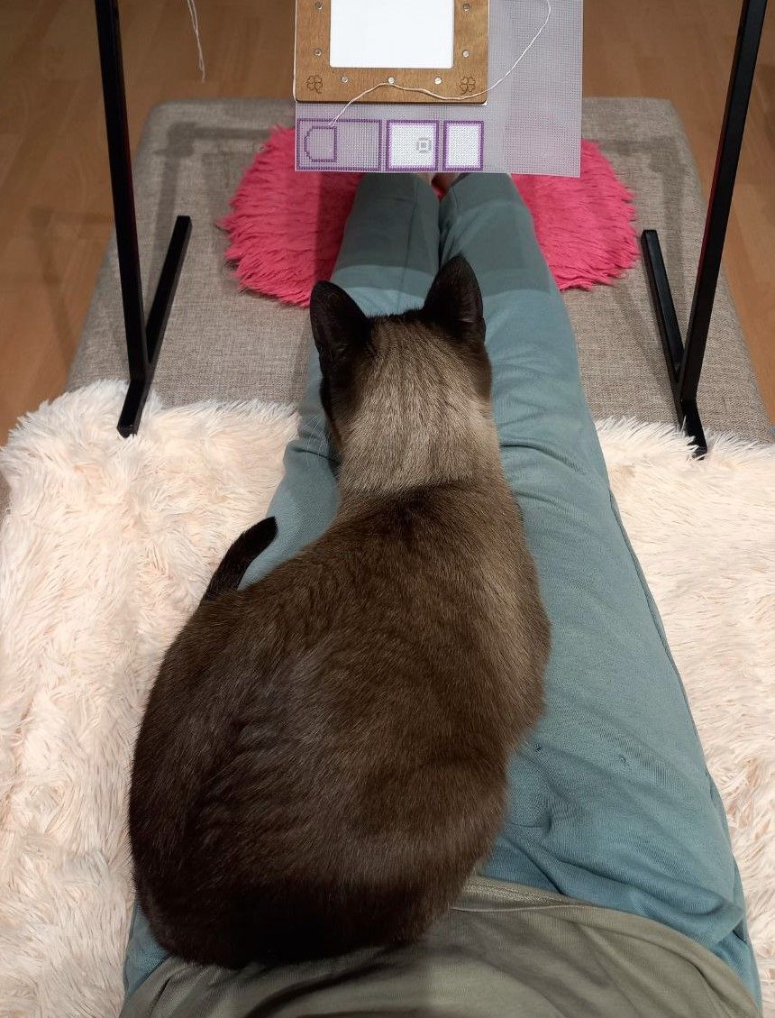 7 декабря 2023 Всем привет! Вчера не успела с отчётом, исправляюсь. В двух частях. На выходных было +22, показывали шикарные закаты. В саду пока не всё облетело. Львиный зев цветёт как не в себя... А в ночь на вторник выпал первый снег. Ну как выпал, припорошил и очень быстро растаял. Утром удалось полюбоваться. Я на зиму застелила диван мохнатым пледом. Все зверятки очень его любят и с удовольствием дрыхнут на нём. Кроме нашего дикаря. Тоясик играет в "лаву". По своей воле ни за что не наступает на плед, а если его поставить, он растопыривает все пальчики и скачет как козлик в сторону "выхода", пытаясь избежать соприкосновения с поверхностью. А спит в этой комнате он только на диване. В первый день ходил он кругами, маялся, придумал. Я вышивала на диванном станке, но наглая тушка на это начхала, естественно. Запрыгнул на немохнатый подлокотник, а с него на меня. Устроился и всё тут. Станок пришлось отодвинуть. Поскольку яжекотомать и сгонять котика жалко, дотянулась до другого процесса. Сидели/лежали вышивали. Ногами не пошевелить. Тушка 5 кг уже прям конкретно отдавила всё. И тут пришла Кристи. Я взмолилась срочно найти какую-нибудь подстилку, и Тойя наконец смог спокойно спать на диване. А я потом ещё долго разминала затёкшие ноги Заодно спойлер процесса Вышивальное продолжение следует... Гало4ка, Raduga777, Хозяйка смешных зверей и 27 других сказали спасибо Поделиться сообщением Ссылка на сообщение