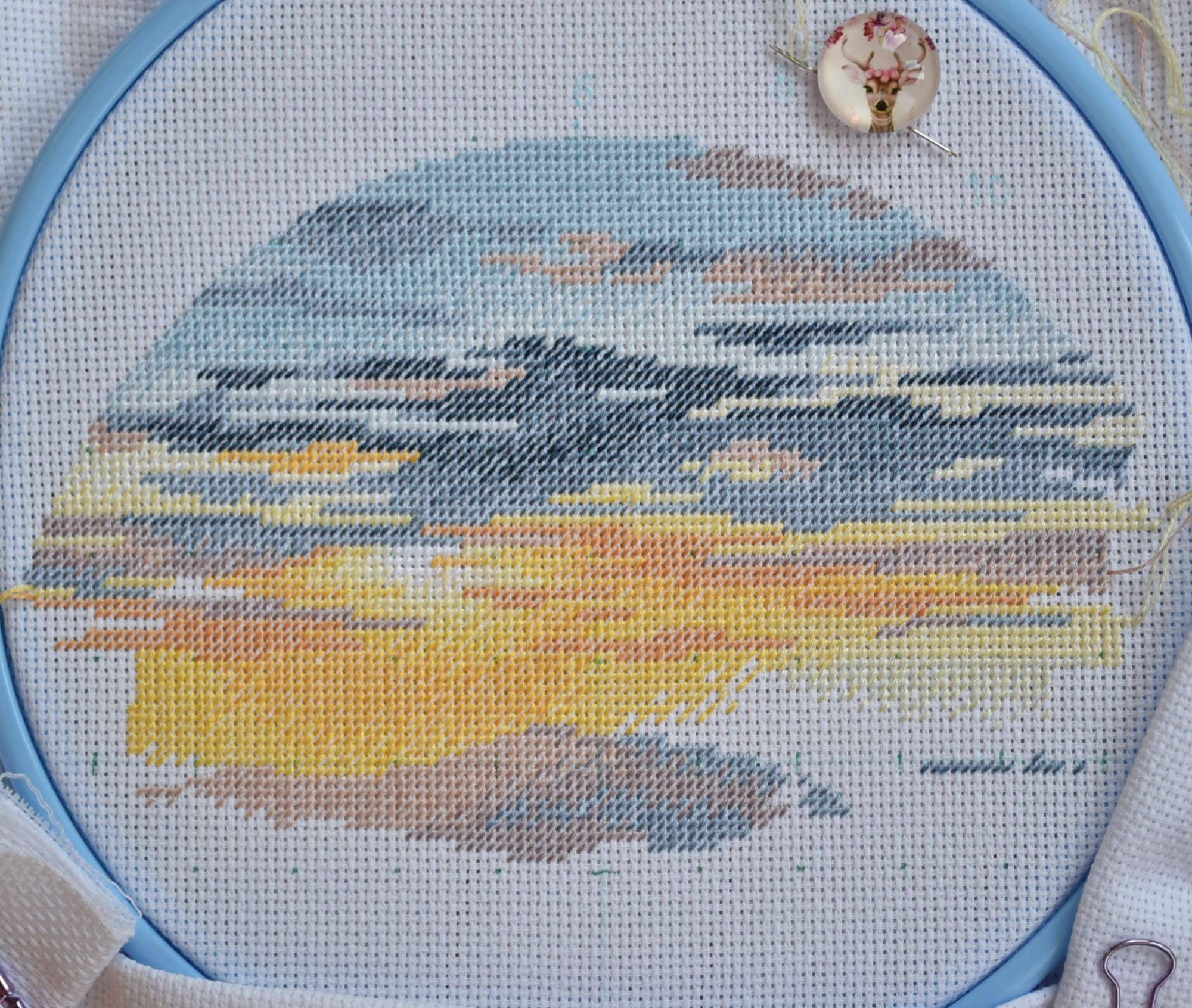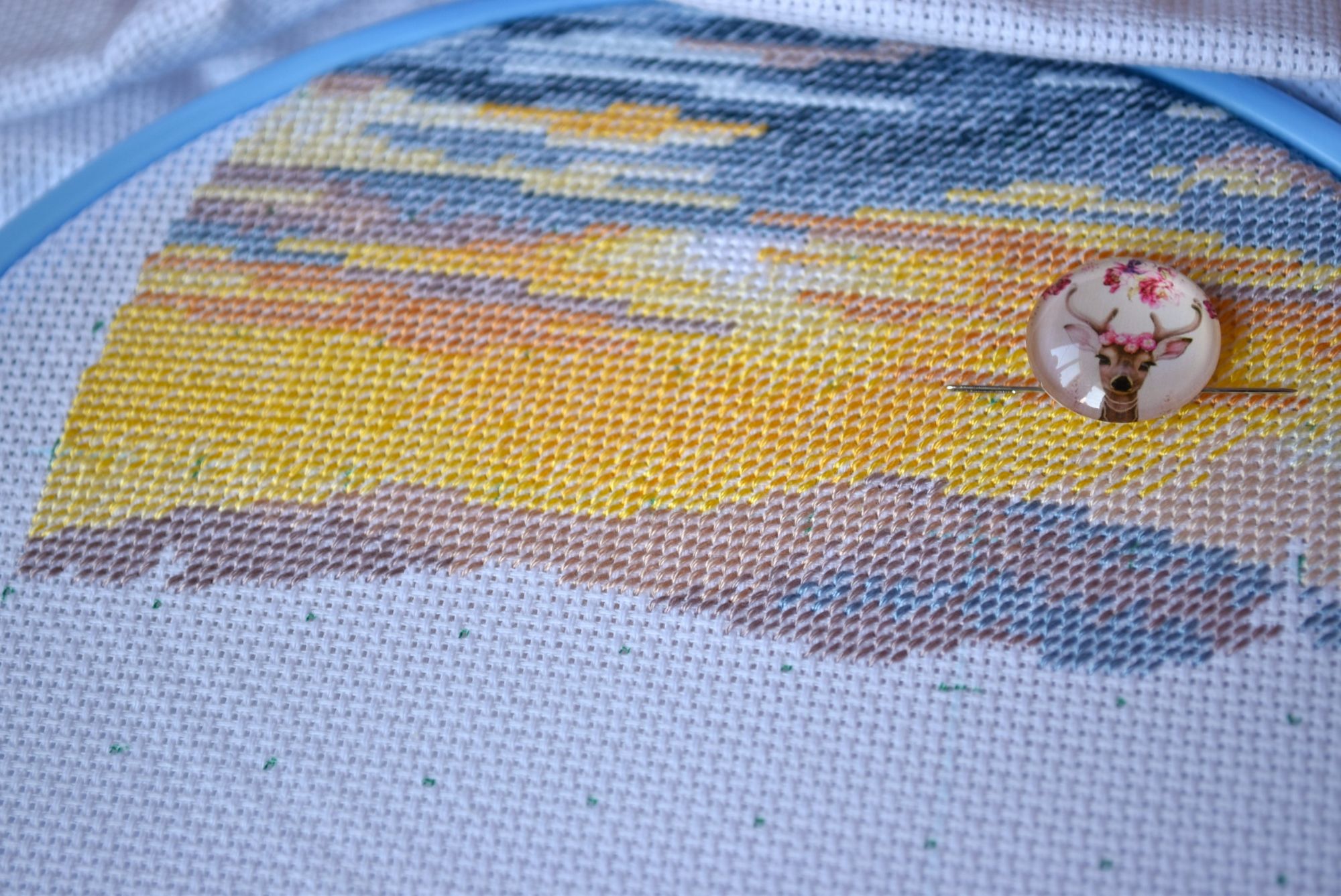 3 марта 2024 Всем привет! Совершенно незаметно подкралось воскресенье (а уже и понедельник вот-вот наступит, собственно ). Я замоталась в делах. Немножко белка в колесе. И если раньше было «ну вот на выходных отдохну», то сейчас на выходных я наконец добираюсь до тех дел, которые из-за нехватки времени откладываются в будни. А учитывая то, что я снова студентка , не совсем понятно, когда отдыхать. Тем не менее... Вышивальный отчёт! Оформляшки. Гортензию не хотелось долго томить в рулоне, так что теперь она меня радует на каминной полочке. Драненький багет, паспарту в оттенках фона и багета. Сначала подумала, что перебор с этим цветом получился, но смотрю на картину и очень она мне нравится. Рисовашки. Мартовский заяц по иллюстрации Маргариты Соловьёвой наконец приведён в порядок, осталось вывести графику. Хочется полноценно вернуться к схемам... Много идей и задумок, но пока я немного ленивка в этом направлении. Пополняшки. Я с декабря на хомякодиете, наборы не покупаю и чувствую себя совершенно приятно по этому поводу Однако аксессуаров это не касается, так что тут я позволяю себе всё, что хочется, в рамках разумного. У Лены приобрела такой нитевдеватель с ручной росписью. Это была любоф с первого взгляда, так что уже на следующий день я поехала его забирать (повезло ещё, что живёт Лена недалеко). Пользуюсь с большим удовольствием: в деревяшечках свой кайф, люблю это тепло. Процессы. Закат в горах / Овен Внезапно очень захотелось вышивать этот кругленький пейзаж, который некоторое время был совсем лишён моего внимания. Красотища получается! (в гаечку) Очень он умиротворяющий, а у меня такой период, когда хочется спокойствия и замедления. (Не в тему вышивки, но в тему состояния. Вышел новый альбом у нашего с Амели любимчика. Обсуждаем с ней, какие песни зашли больше: Амельке как на подбор все панк-роковые, а мне мелодичные и лиричные. Значит, сейчас так надо ). Ангел мой / Ирина Кириллова (Fairy Embroidery) Ещё одна работа из марафона по глади. Думала, что кое-что исправлю (забыла в процессе, вспомнила уже после натяжки), но мне стало леньки. Так что показываю, как есть. (все фото в гаечку и это финиш!) Цвета все подбирала сама, не по ключу, но получилось вполне близко. Использовала Гамму Клауд для крыльев и снега (в разное сложение и крылья особо не начёсывала). Блестит всё приятственно, мне нравится. Буквально сегодня убрала к другим зимним/новогодним украшениям. Синицы и вишня / Чудесная Игла Синицы тоже неплохо продвигаются. Канва так и не стала мягче, но нитки теперь не так сильно перетираются (вроде бы). (в гаечку) Недавно очень конкретно лопухнулась: вышивала тёмно-зелёным цветом (в этом дизайне это единственный цвет в три нити). Часть вышила ночером, дошивала уже следующим вечером. Когда цепляла остаток нити на органайзер, до меня дошло, что она по цвету немного отличается: теплее оттенком, чем было. К своему ужасу я вышила больше половины этих крестиков нитками из набора «Закат в горах» (у меня они были приготовлены типа заранее, но в итоге первыми в руки попали синицы, я сняла мулине из набора и положила рядом с «закатной» пасмой). Немного попаниковала, что не хватит потом на отшив того, для чего она предназначалась, но всё обошлось, слава всем (длина у Овна достаточная). Я, конечно, вижу разницу оттенков при нормальном освещении, но перешивать точно не буду: и так о