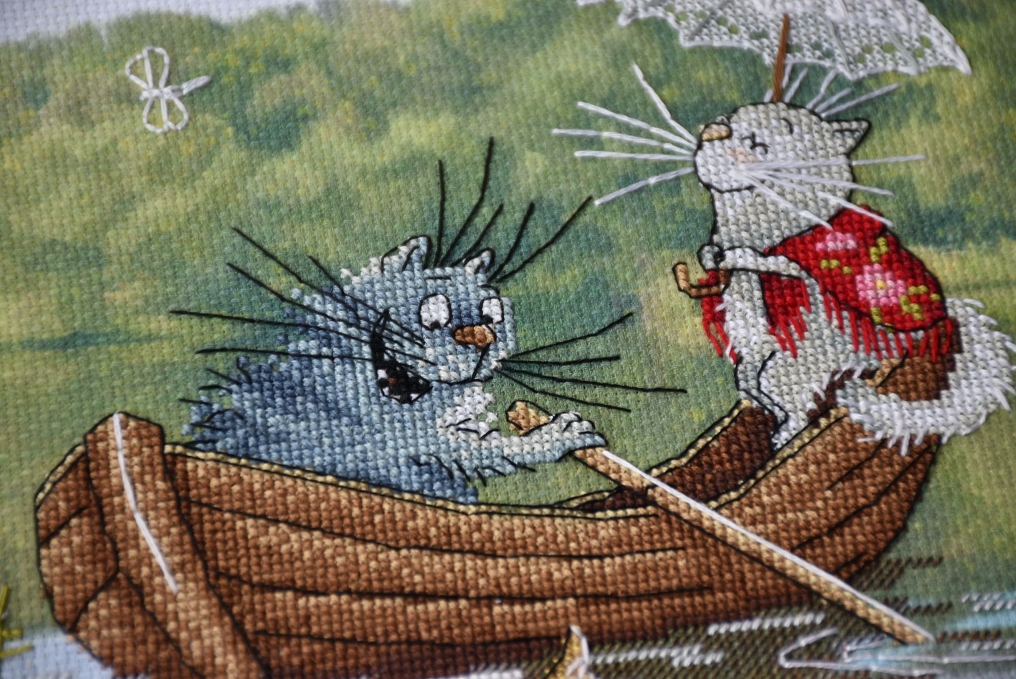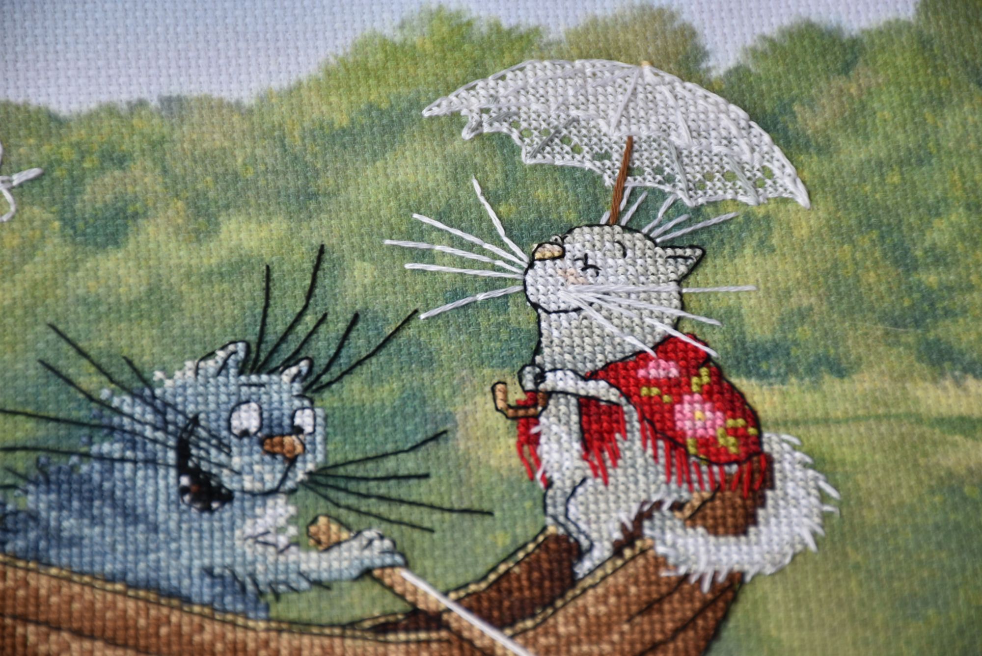 30 мая 2024 Всем привет! Совсем я закрутилась с репетиторами, последним звонком, экзаменами, занятиями и т.п. Хотела ещё в субботу отчитаться, потом думала в воскресенье, но у нас два дня не было интернета из-за атак на серверы провайдера. В общем, дошла до форума только сейчас. Пока только вышивальное. Надо гаечки новые заводить. И хоть я и говорила, что не будет финишей, но тут внезапно он случился. Правда, не у меня Процессы. Мы на лодочке катались / МП Студия Амелька после завершения портрета Тоясика попросила у меня ещё чего-нибудь для снятия стресса , ну я на радостях и подсунула котиков от МП Студии. Тяжко мне было их вышивать: 18 каунт всё сложнее и сложнее даётся. А тут ещё и принт на канве. Я пока разметку мононитью сделала, чуть с ума не сошла. Пришлось, правда, перенабор ещё делать, ибо ребёнок тоже познал прелести вышивания по Саге и набором с бумагой её уже не соблазнить на процесс. (После котов, впрочем, она решила снимать стресс иначе - теперь вяжет как не в себя. Мне офигенную чайку делает, потом покажу) В общем, моих крестиков там было не больше 50-ти, остальное всё деть. Коты очень-очень офигенные! Прям тащусь! (все фото в гаечку и это финиш!) Солнце в городе / Мария Синицына Покажу продвижение. Пока вышиваю шоколадными оттенками. Медитативно. (в гаечку) Люсик и Гусик / Виктория Ивченко Это аж новогодний старт, первоянварский. Идёт очень медленно, потому что мои глаза и равномерка решили совсем развестись, видимо. Но сейчас я взяла себя в руки и полна решимости всё-таки дошить эту милую парочку, которую девочки в ВК уже окрестили «Марусик и Гусик». Ну а что, правда ведь: рыжая и с кудряшками – это на меня (в прошлом) очень похоже. Парочка, конечно, огонёк! Очень они мне нравятся! (все фото для гаечки) О впечатлениях. Я наслышана о схемах Ивченко, но сама вышиваю впервые. Ладно ¾, одиночные полукресты и море несчётного бэка. Но нафига море этого бэка ещё и совершенно невидного? Вот на этом фото (не для гаечки) много стежков бэка в волосах. Вы его видите? Я нет. Ни на фото, ни в жизни… Очень много бэка поверх крестиков такого же цвета. Эээ… ??? Насчёт набора ещё. Номера ниток в Саге не соответствуют номерам на органайзере (впрочем, номеров там нет в принципе, но я считала с одной и с другой стороны - не, так не работает). Надо смотреть только на значок. Но когда случается бленд и бэкстич, надо смотреть в бумажную схему, иначе совершенно непонятно, какие цвета брать. Лежит ещё один набор по схеме Вики, но желания теперь ещё долго не будет, мне кажется. Впрочем, надо сначала этот вышить. А осталось не так и много. Надеюсь, до конца июня получится завершить. На сегодня это всё. Процессов очень много, но прибавляется в них не очень много , поэтому особо показать и нечего. Но через недельку надеюсь всё же принести что-нибудь интересненькое Всем отличного настроения и здоровья! Гало4ка, Raduga777, Ксен40 и 33 других сказали спасибо Поделиться сообщением Ссылка на сообщение