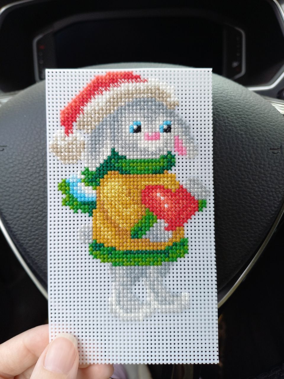 10 июня 2024 Всем привет! Наконец отчёт. Решила на лето сделать обычный для этого сезона график - 10-ое, 20-ое и 30-ое, но вот уже вылезла немного за границы... (Ибо ухайдокалась за день). Хотела показать оформляшки, которые всё время забываются, но не нашла фото. Мистика какая-то Буду искать. Зато внезапно есть Пополняшки Ну что ж, я ничего не покупала целых полгода. Мне не хотелось, и я была совершенно спокойна. Но тут Панна объявила о распродаже, и я раскодировалась уже не могла пройти мимо. Забрала в воскресенье три давно желанных набора. (Девушка-кассир в Леонардо очень сильно удивилась стоимости наборов Сказала, что год назад только домик покупала себе за сумму, превышающую стоимость этих трёх вместе взятых. Так вот и я о том же! ) Процессы Зайка / МП Студия Ох, многострадальная она… Набор этот подарила мне МП Студия, отметив в одном из конкурсов в ВК. Не могу сказать, что этот дизайн мне нравился и я хотела его вышить, но дарёному зайцу в зубы не смотрят как-то стало её жалко, поэтому решила, что всё же надо. Никакой логики, понимаю. Я начала вышивать полтора года назад и поняла, что не могу. Прям не нравится её глуповатый вид, анатомия и нелепые складочки на одежде. Отложила больше чем на год и вот в апреле решила за неё взяться. После "спа-процедур" в Pattern Maker, она схуднула всем телом, исправила косоглазие и погладила наряд. Было большое желание ещё кучу всего поменять, в том числе и нитки , но я благоразумно остановилась на не самых кардинальных изменениях. Первый вариант - МП Студия, второй мой: И дело пошло! Правда, зайка стала исключительно походным процессом. Вышивала её в поездке и когда ждала Кристи с танцев и Амели от репетитора. Под прекрасные славянские мифы! Очень приятные ассоциации теперь будут. Наконец готова моя зая. Нелепую лужу под ней вышивать не стала, конечно. А задники я не вышиваю принципиально, некому их видеть, так что это финиш. (все фото в гаечку и это финиш!) И ещё такое более наглядное сравнение: Ласточка / У Аннушки Не очень собиралась, но, когда набор наконец вышел в свет, всё-таки не удержалась, возжелала его вышить. Нарисовала я эту ласточку ещё в феврале, три месяца она пыталась вылететь из гнезда, видимо. Изначально Анна попросила что-то на весеннюю тему, конкретно птичек мы не планировали делать, но так получилось, что она стала первой в серии бисерных пернатых. Скрытый текст На данный момент отрисовано и отшито 6 (или 7), одна птичка у деревянщика, одна в программе (надо было её закончить ещё вчера, как водится) и у меня ещё большой список в заметках телефона. Надо новогодние игрушки рисовать, а я не могу от птичек уйти. Если интересно, как-нибудь расскажу и покажу процесс разработки бисерных дизайнов. У меня он очень странный, мне кажется По процессу есть пара ремарок. Ниток Титан целая катушка, но я ими не могу вышивать, заменила на свои привычные Safira Prima. И ещё очень интересный факт: светлый синий бисер вообще никак не проходил через иголку 28-го размера, которую я всегда использую для бисера, поэтому взяла бисерную из набора, ей было вполне комфортно вышивать. А сейчас просто фото. (все фото в гаечку и это финиш!) Бисер под определенным углом начинает сиять, прикольный эффект. Синицы и вишня / Чудесная Игла Надо бы показать прибавки и перестановки пялец, потихоньку двигаюсь к финишу. Не буду вышивать нижнюю бабочку, так что осталось не