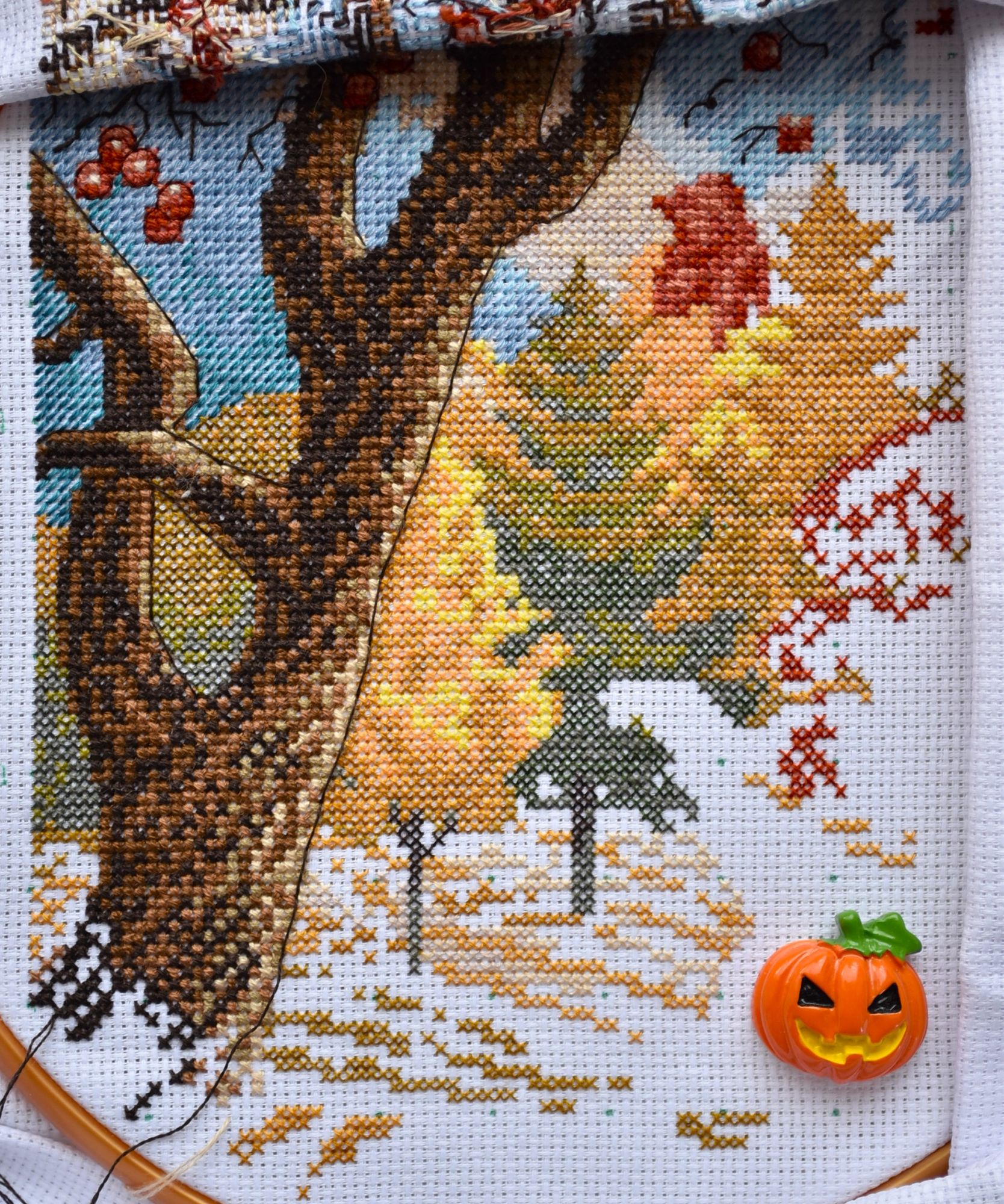3 ноября 2024 Всем привет! Я совсем закопалась в учёбе. Неделя академического рисунка. Это просто вынос мозга, глаз и кисти руки (наштриховалась и назанималась построением надолго вперёд). Ещё сдала практикум по психосоматике. А по работе нарисовала классную птицу. Заценят не только любители птиц Очень надеюсь, что бисер хорошо ляжет. Я ей так вдохновилась, что вообще всё отбросила и пустила вне очереди. Бисер вчера подобрала, осталось сделать схему и сверстать для типографии. А ещё у меня и конь не валялся в процессе создание схемы с ёлками для конкурса. Я даже исходник ещё не выбрала… Не знаю, что можно за 10 дней успеть (с учётом дел по всем фронтам). В общем, я как всегда – загружаю себя кучей всего, а потом офигеваю в попытках всё успеть. Немного нашего осеннего декора и тематического развлечения. Кристи косплеила тушканчика Чили из книг про общество животных-призраков. Вчера показывали роскошный закат, каждую минуту краски менялись. Так красиво, душа радуется. Ещё покажу оформления, сфотографировать которые у меня получилось аккурат к конкурсу. Сервальчик приоделся в ненавязчивый багет, который мне очень нравится. Не знаю, можно ли его назвать строгим, но он весьма сдержанный на мой взгляд. Олени мне нравятся очень в этом багете! Однако сфотографировать так, чтобы цвета были приближены к реальности, оказалось делом практически невыполнимым. Особенно сложно поймать цвет паспарту. Теперь процессы. Солнце в городе / Мария Синицына Это, наверное, предпоследний показ. Тут осталось меньше 2-х тысяч крестиков. Идёт хорошо, с удовольствием. (в гаечку) Тыквенный джем / Мир Вышивки и Ксения Новикова Взяла себя в руки и наконец отбэкала котиков! Они милашки. Очень позитивный сюжет. Вместо надписи handmade под названием джема написала месяц и год. (все фото в гаечку и это финиш!) Когда вышила все крестики, сполоснула вышивку… и канва стала очень мягкой! Я так мучилась в процессе из-за её жёсткости. Кто же знал, что это можно было решить так просто? Во всех наборах, в которых меня не устраивал этот момент, ни ополаскивание, ни стирка не помогали... Хлебные поля / Золотые Ручки Финиш! Ура-ура! Как же мне нравится результат! А от процесса я получила массу удовольствия. (все фото в гаечку и это финиш!) Бисерный рулончик-батончик мне особенно понравился Хочу следующий бисерный набор начать 1-го января. С оформлением пока на стопе, ибо понимаю, что мне уже некуда вешать работы, это провал. Халапенья / Золотые Ручки Я тут вышила кусочек с деревьями и пребываю в таком восторге, что мне не терпится вам показать! Очень нравится! (в гаечку) На сегодня это всё. Не буду загадывать, но всё же надеюсь на неделе показать свои "долги" по фото и поездке. Всем отличного настроения и хорошего ноября! Гало4ка, Aleksacha , Океан и 21 других сказали спасибо Поделиться сообщением Ссылка на сообщение