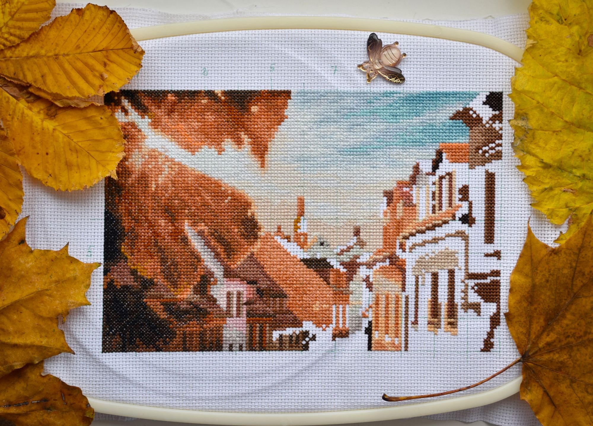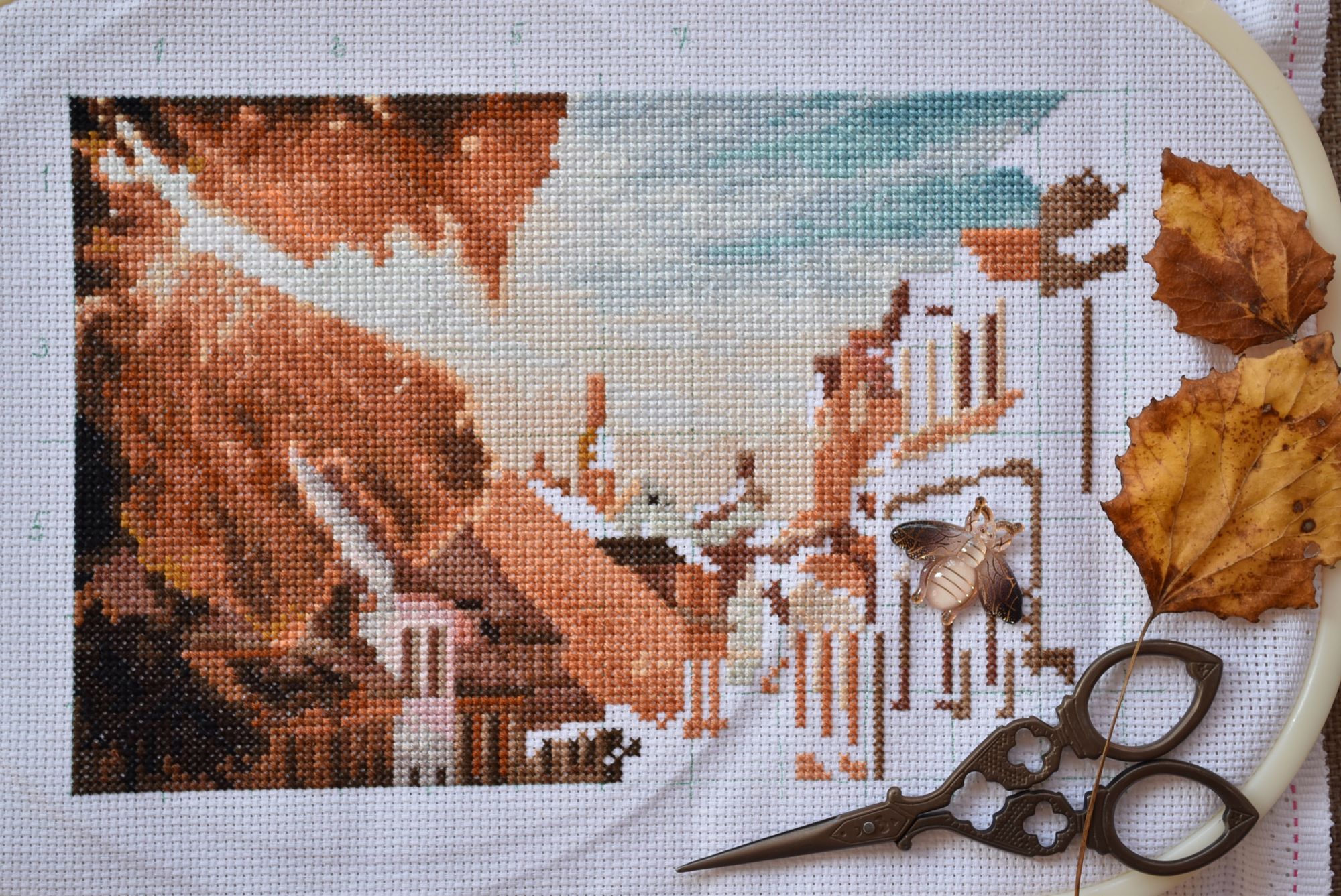 14 ноября 2024 Всем привет! Думала, что сяду ещё 11-го и чинно-благородно напишу отчёт. Но вписалась в очередной дизайнерский движ, поэтому снова с языком на плече. И ещё же конкурс "Ёлки-иголки" у Оли Ланкевич. На него бросила все силы. Чтобы было понятно, о конкурсе узнала в начале октября , выбрала исходник 7-го ноября и тогда же села рисовать. Вот почему так всегда? Или уже забить и смириться? Вчера чистила схему, раскрашивала бэк... и опачки! "А не изменить ли мне этот элемент?" Ещё не доделала, в общем. Сегодня - последний день сдачи работы. Буду в ужасе проверять цвета и допиливать схему. А у нас как специально очень пасмурно (для сверки цветов по живым мулине совсем неудобно). В два часа ночи, когда чистила зубы, внезапно пришла идея, как можно один из цветов заменить блендом... Но я же этим не ограничусь. В общем, будет весело! Всех поздравляю с нашим праздником! На карандашном курсе рисовали натюрморты, я придумала тематический и закончила его как раз 10-го Преподаватель сказала, что его надо бы в рамочку. Надеюсь, и у вас в этот день было много приятных моментов! Мне даже достались подарочки. Теперь в моём арсенале имеется классная вместительная сумка для процессов! Не ожидала, что она будет такой большой и с таким количеством разных отделений. Мне очень понравилась. И пара очень желанных наборчиков Пока ещё осень, оформила душевный димовский пейзаж. В багетке меня уговорили на двойную раму для создания эффекта присутствия. И я очень довольна результатом! Ощущение, что смотришь в окно на этот пейзаж. Процессы Очень скромно. Вроде вышиваю-вышиваю... В неделю в среднем получается 2500 крестиков, но они разбросаны по разным работам, поэтому особо впечатляющих продвижений и нет. Солнце в городе / Мария Синицына А вот это уже точно предпоследний показ. Все крестики вышиты, остался только бэк. (в гаечку) Овечья тропа / Heritage Ура! Закончилась самая муторная часть! Очень я устала от этого домика. Если бы не всё в блендах, возможно, было бы пошустрее и полегче. Правда, с такой дикой шахматкой это вряд ли, но всё же… Переставляю пяльцы, тут уже вышито больше четверти. (в гаечку) Змеюшка-веселушка / У Аннушки Вторая змейка на ёлку. (все фото в гаечку и это финиш) Купила приставную тумбу для своего вышивального места отдыха. Пока не поставила книги на нижнюю полочку, там лежала Миюша с сиротским видом На этом сегодня всё, бегу готовить Кристи к контрольной по математике и потом работать (на другом ноуте и в другом кресле, но за тем же столом ). Но я прям побегу, да-да Всем отличного настроения! Забава_, GreenTea, Lorans и 24 других сказали спасибо Поделиться сообщением Ссылка на сообщение