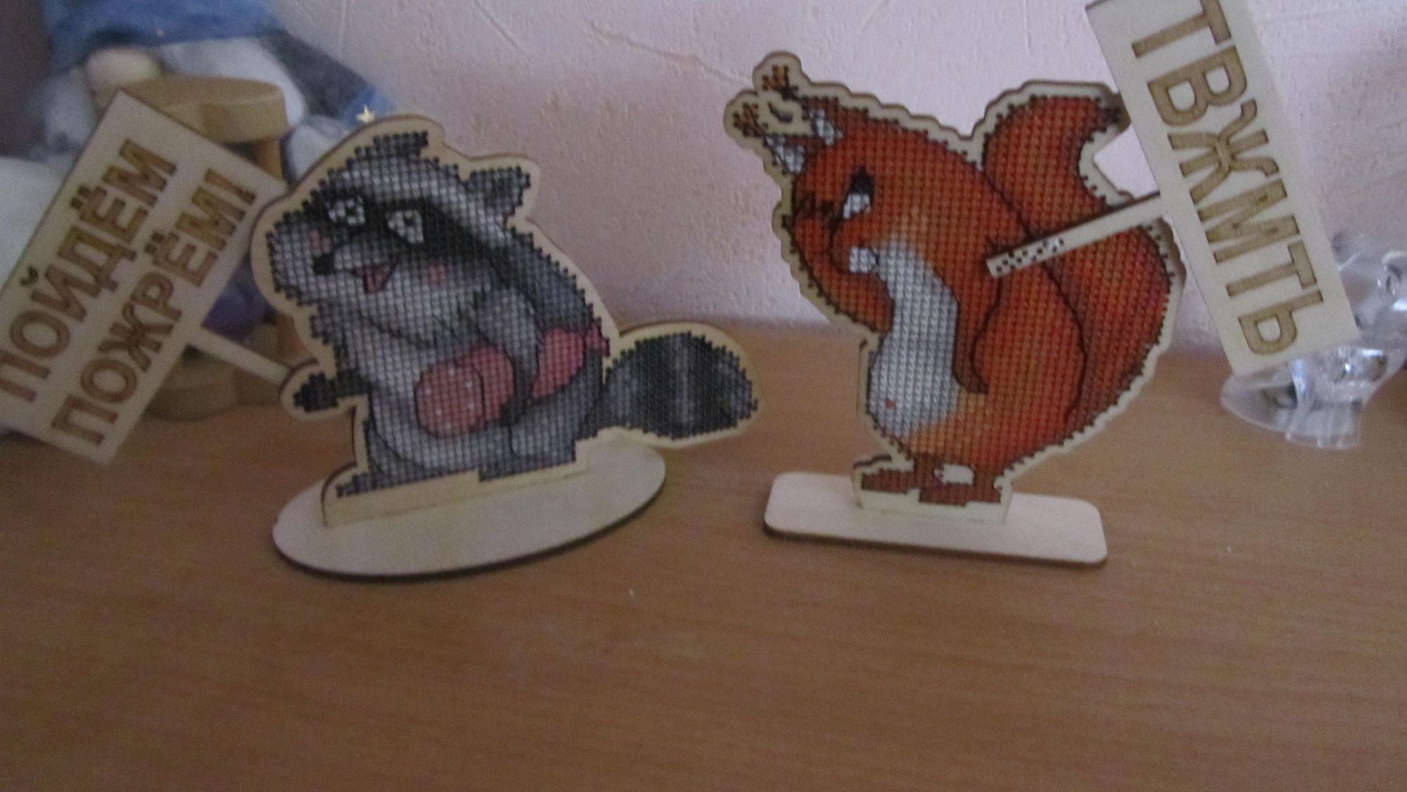 1 апреля 2023 Всем привет! Я с небольшим квартальным отчетом. 1. Дошились укуренные зайцы от РТО. Было Стало И готово Татуся, гаечку пока не зелени. У меня еще жива надежда, что непосредственный заказчик этих зайцев наконец-то доплюхает до ателье, и из них получится подушка. Главное ведь, зайцы в наличии, задник для подушки приобретен у нашей Саши, подушка куплена. А до ателье дойти чтобы сшить это дело - все никак. 2. Дошились собаки от ЗР. Было Стало И готово . Татусь, позелени гайку пожалуйста. Черные песики мне очень нравятся. А вот рыжий какой-то безобразнейше пятнистый. Другие отшивы смотрю - ни у кого такой пятнистости нет. Только у меня. Вероятно мне так шикарно "повезло" с нитками. Впервые в жизни кстати болтала с вышивкой. Как только черный песик (который слева) обзавелся глазками, сразу фигня стала происходить всякая. То нитки порвутся, то я в схеме ошибку сделаю. Уговарила бандита не мешать мне, потерпеть, пока я ему рыбку "поймаю", и тогда ему будет с кем играть. Кстати, уговоры помогли. Дальше все ровно пошло. 3. Насмотрелась у Монстрика на деревяшки, и не устояла. Соблазнилась. Татусь, тут пожалуйста новую и сразу зеленую гаечку сделай. И на следующий процесс тоже. "У Аннушки". "Дюкан" Это постоянное состояние моей собаки . 4. "У Аннушки". "Зинаида". Блин, она неподражаема и абсолютно прекрасна! Дюкан и Зинок вместе 5. Начала новый процесс. Татусик, прикрути новую гаечку. РТО. "В моменте". арт. М961. Первые крестики. Ягодка практически готова. Хотя без бека смотрится как пятно ржавчины на советской "копейке". Больше продвижений за три месяца, увы, не случилось . Lusha73, Аринесса , Забава_ и 36 других сказали спасибо Поделиться сообщением Ссылка на сообщение